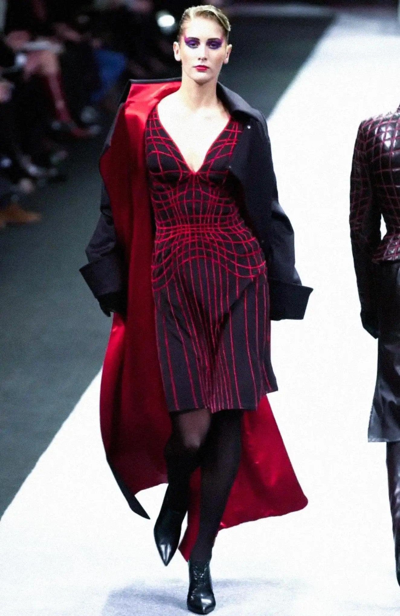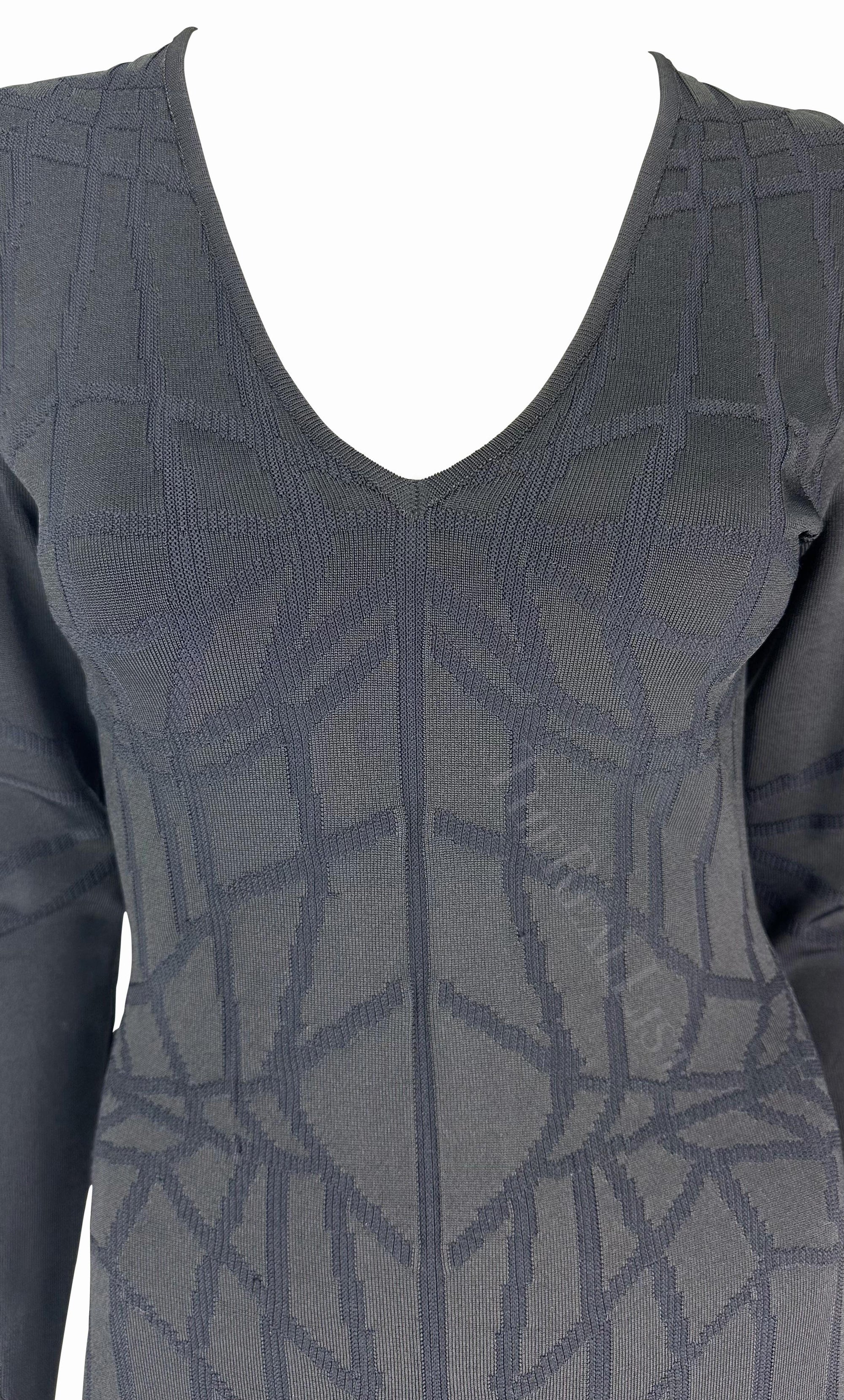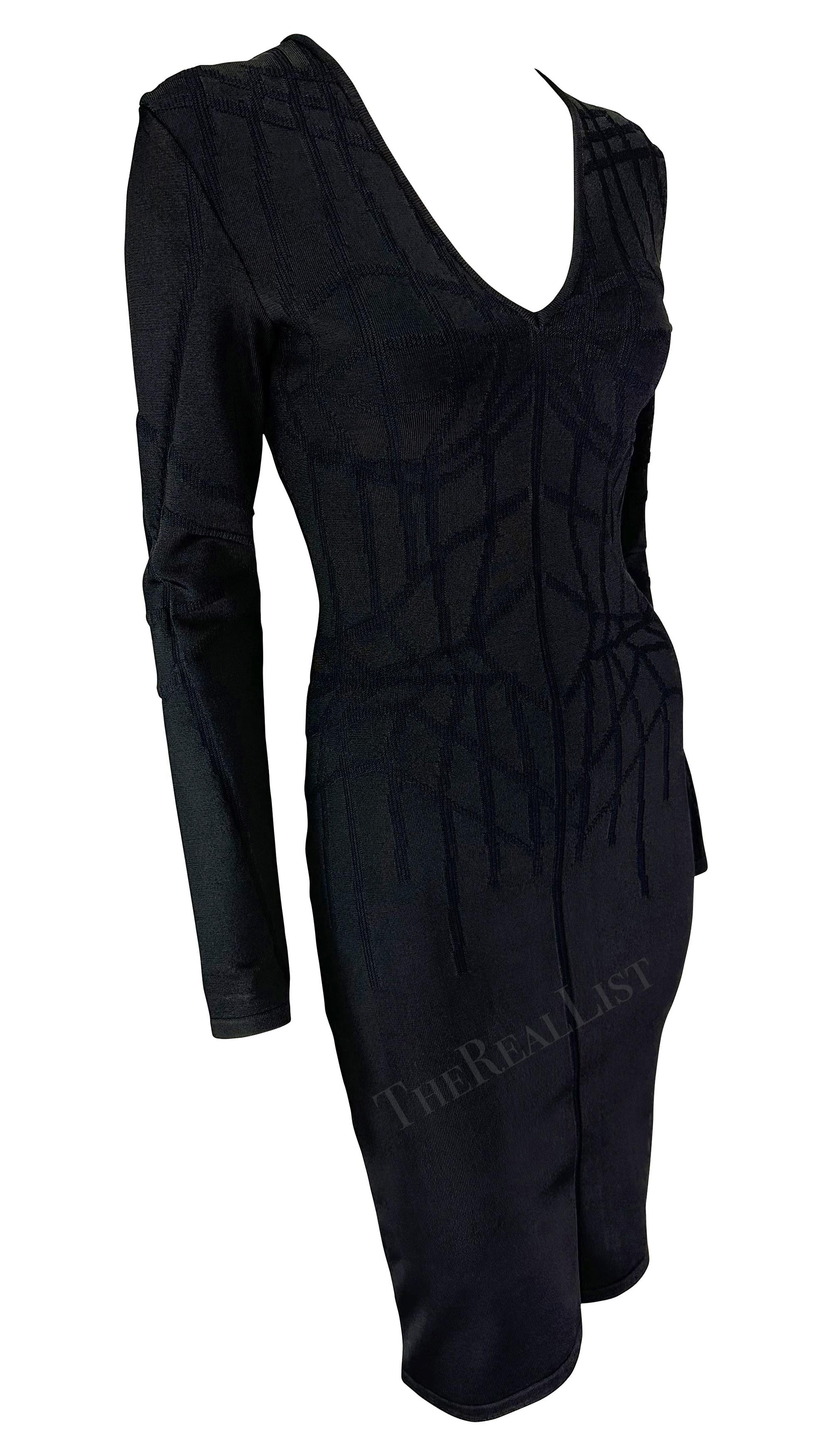 F/W 2001 Thierry Mugler Contour Outline Black Knit Bodycon Dress