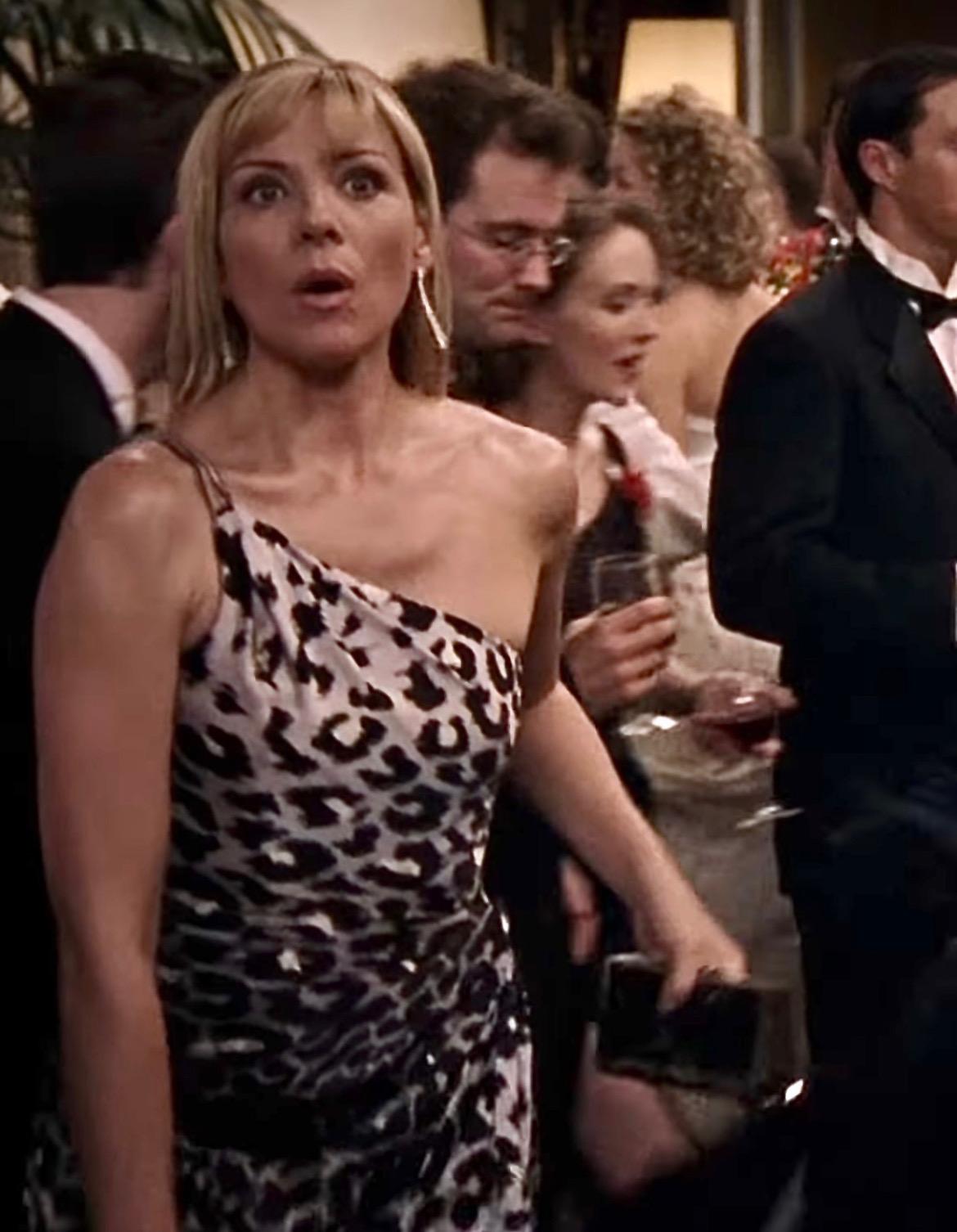 F/W 2001 Thierry Mugler Couture Runway SATC Silver Leopard Silk Chain Dress