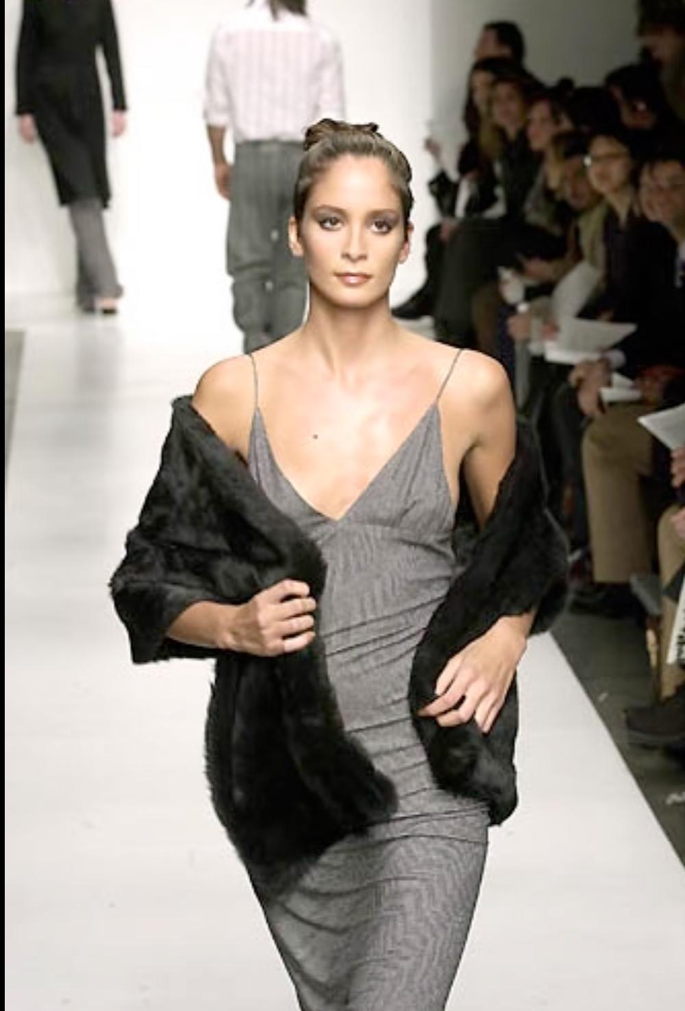 F/W 2001 Yigal Azrouël Runway Backless Bodycon Grey Herringbone Slit Dress