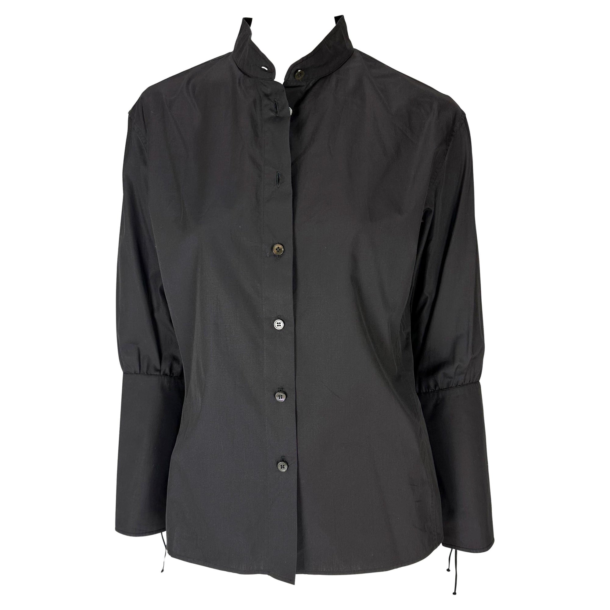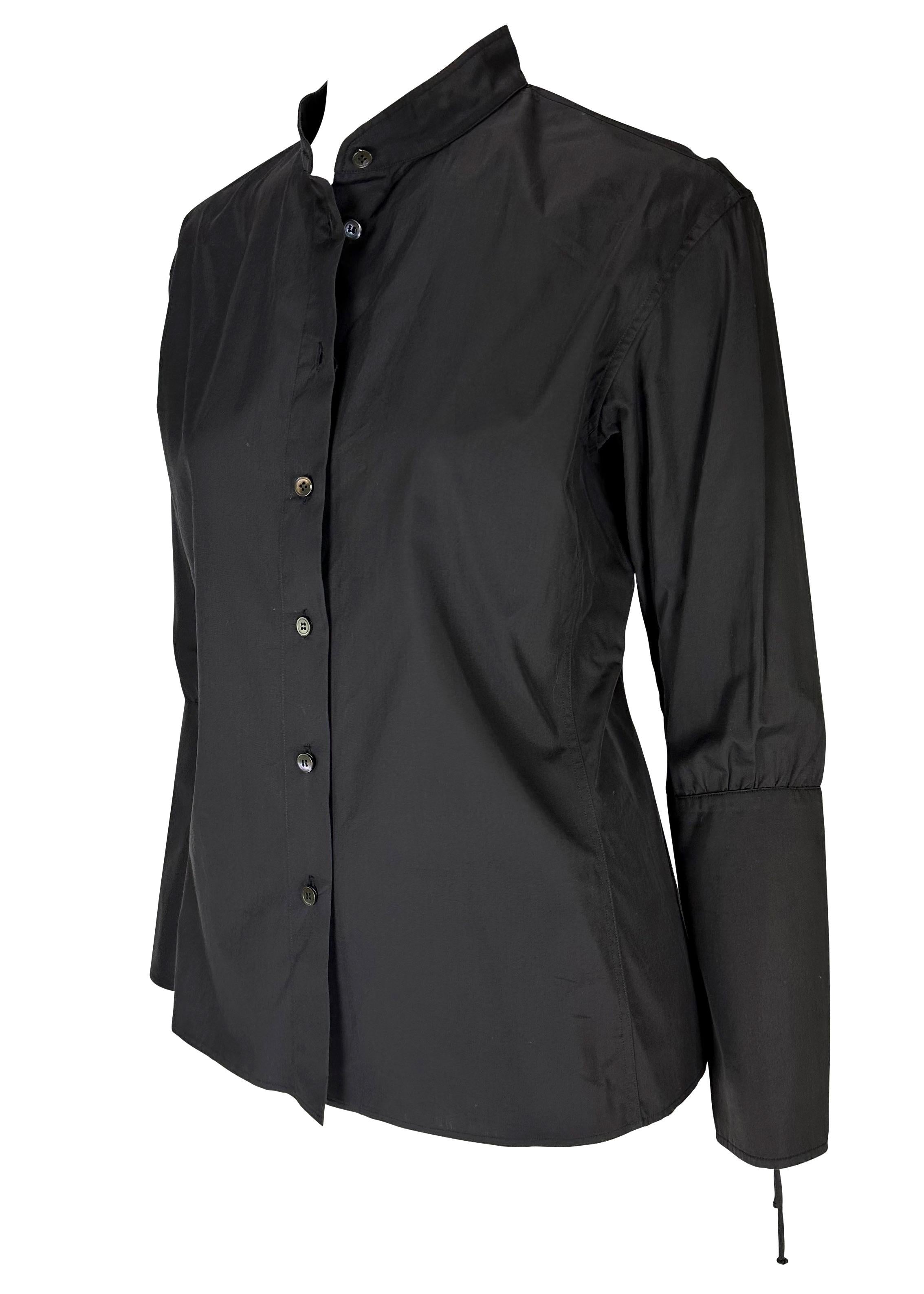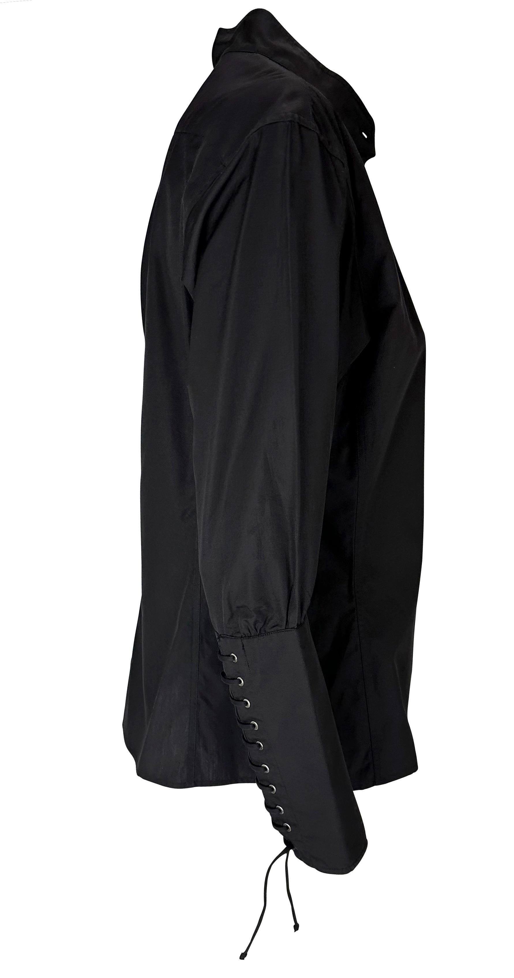 F/W 2001 Yves Saint Laurent by Tom Ford Lace-Up Cuff Black Button-Up Blouse