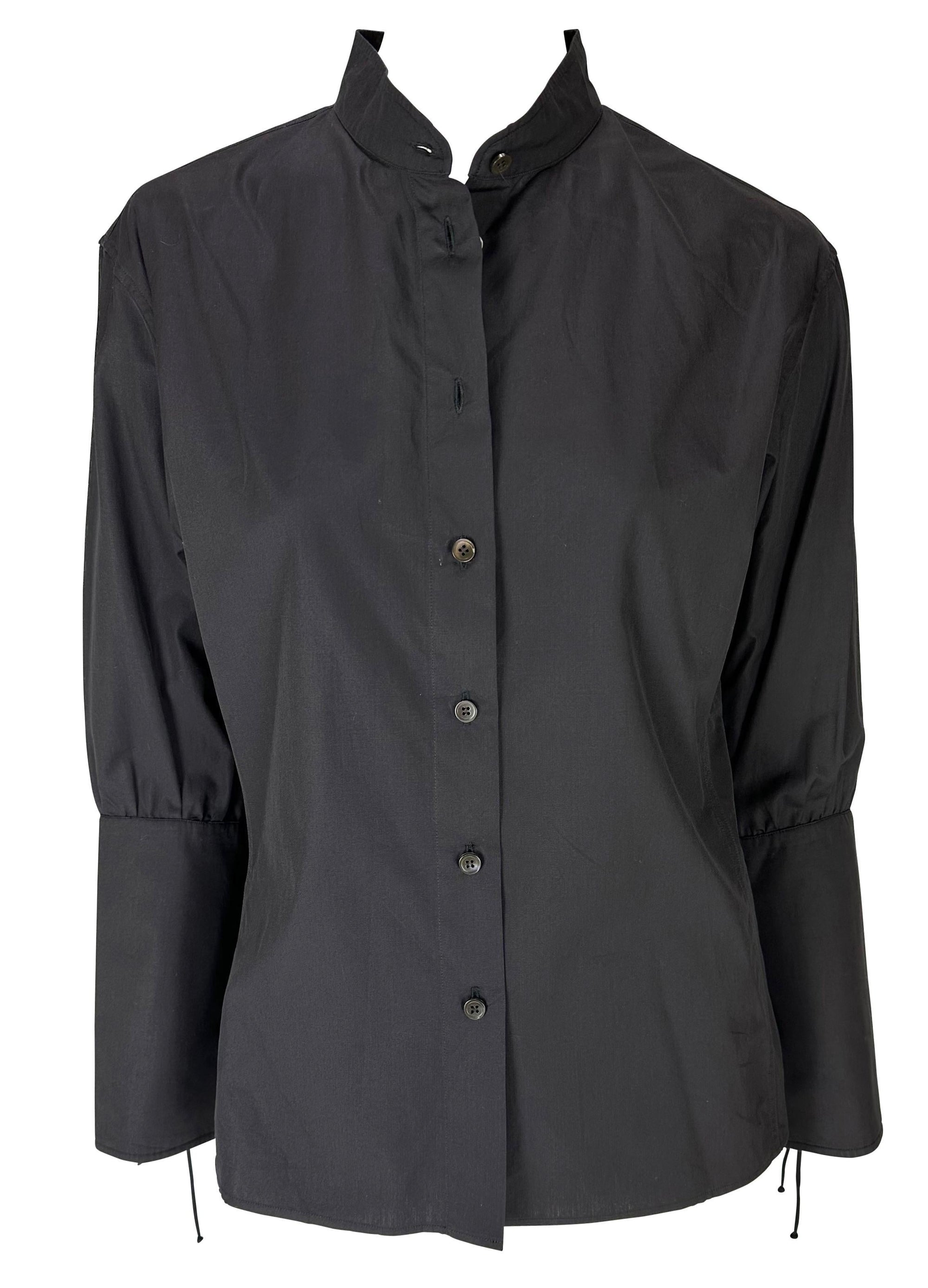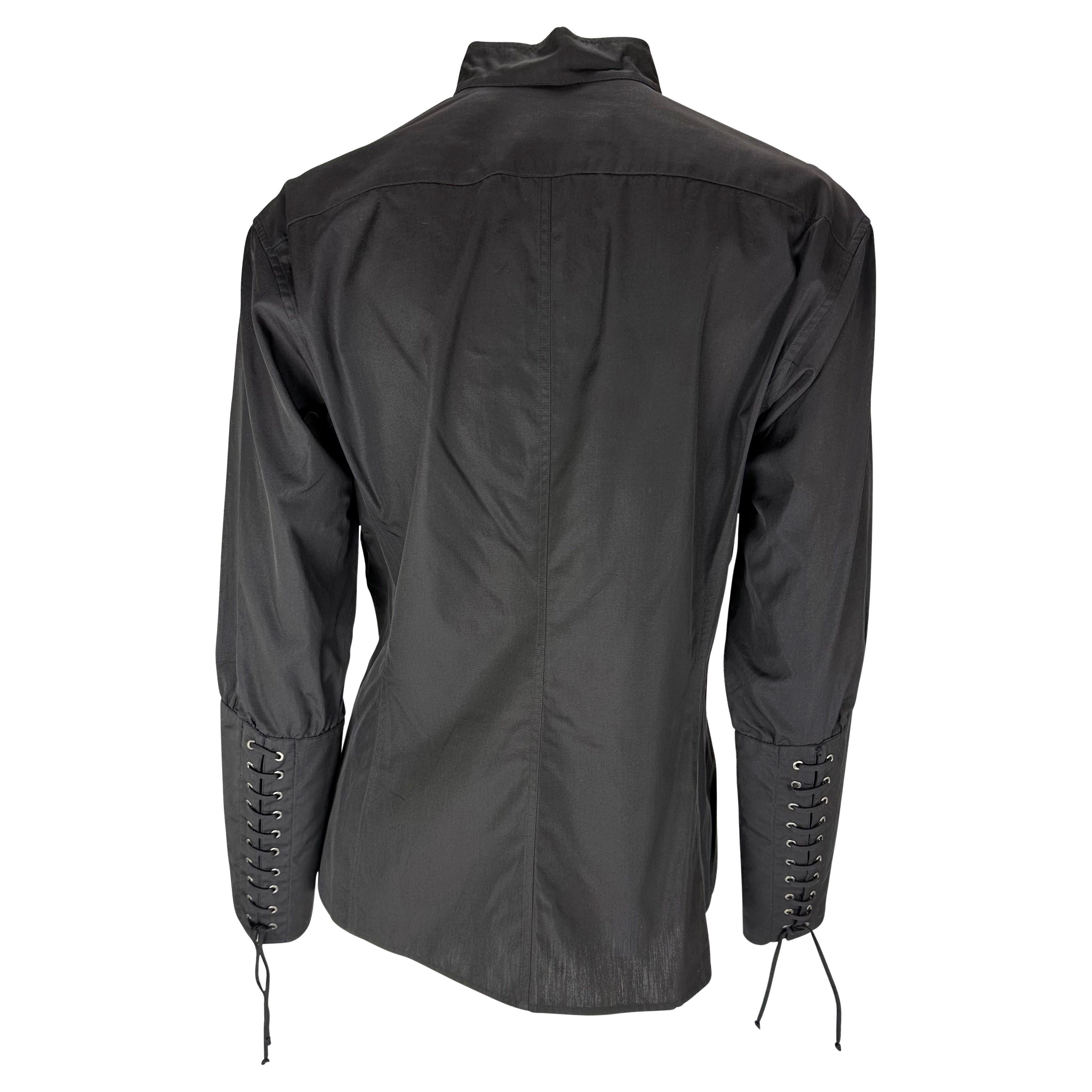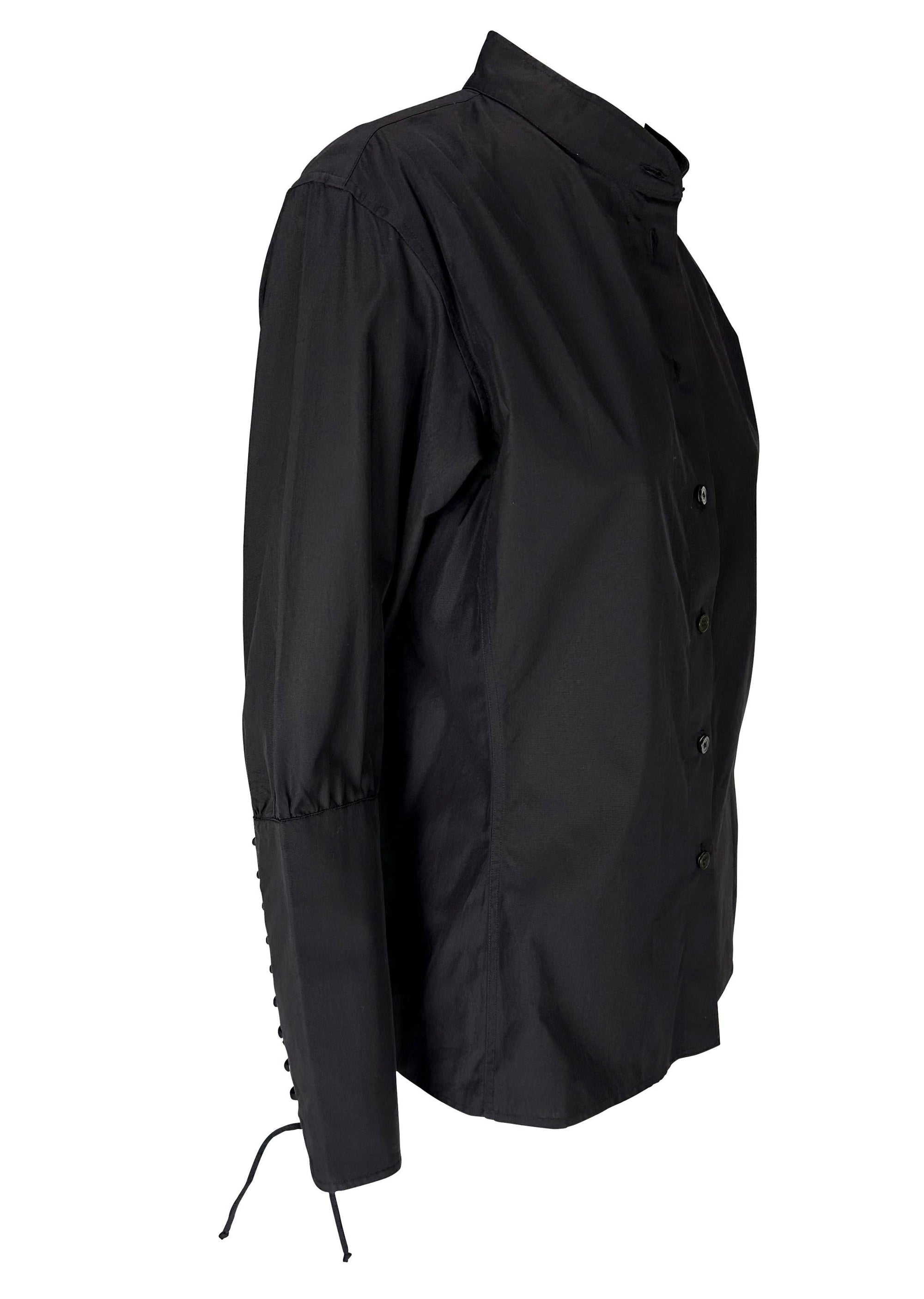 F/W 2001 Yves Saint Laurent by Tom Ford Lace-Up Cuff Black Button-Up Blouse