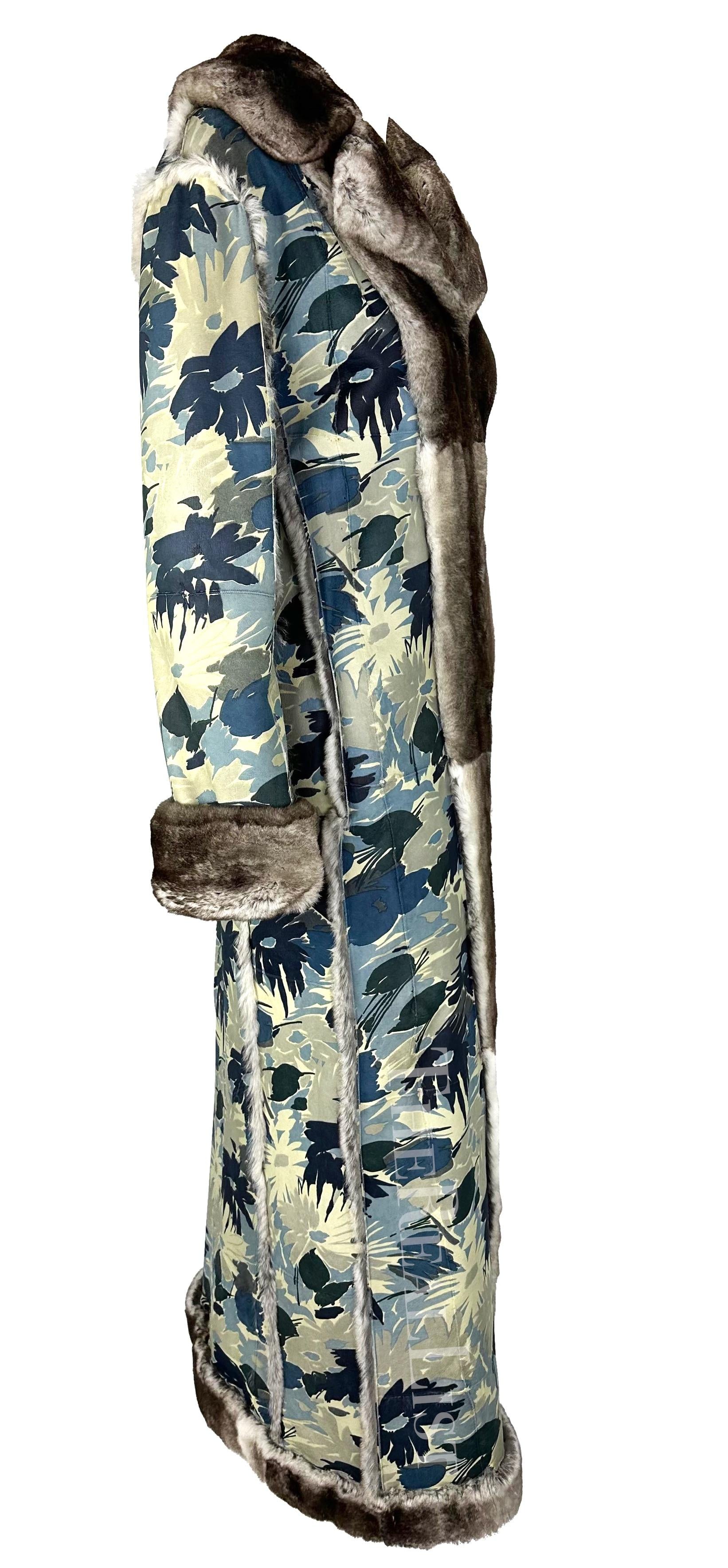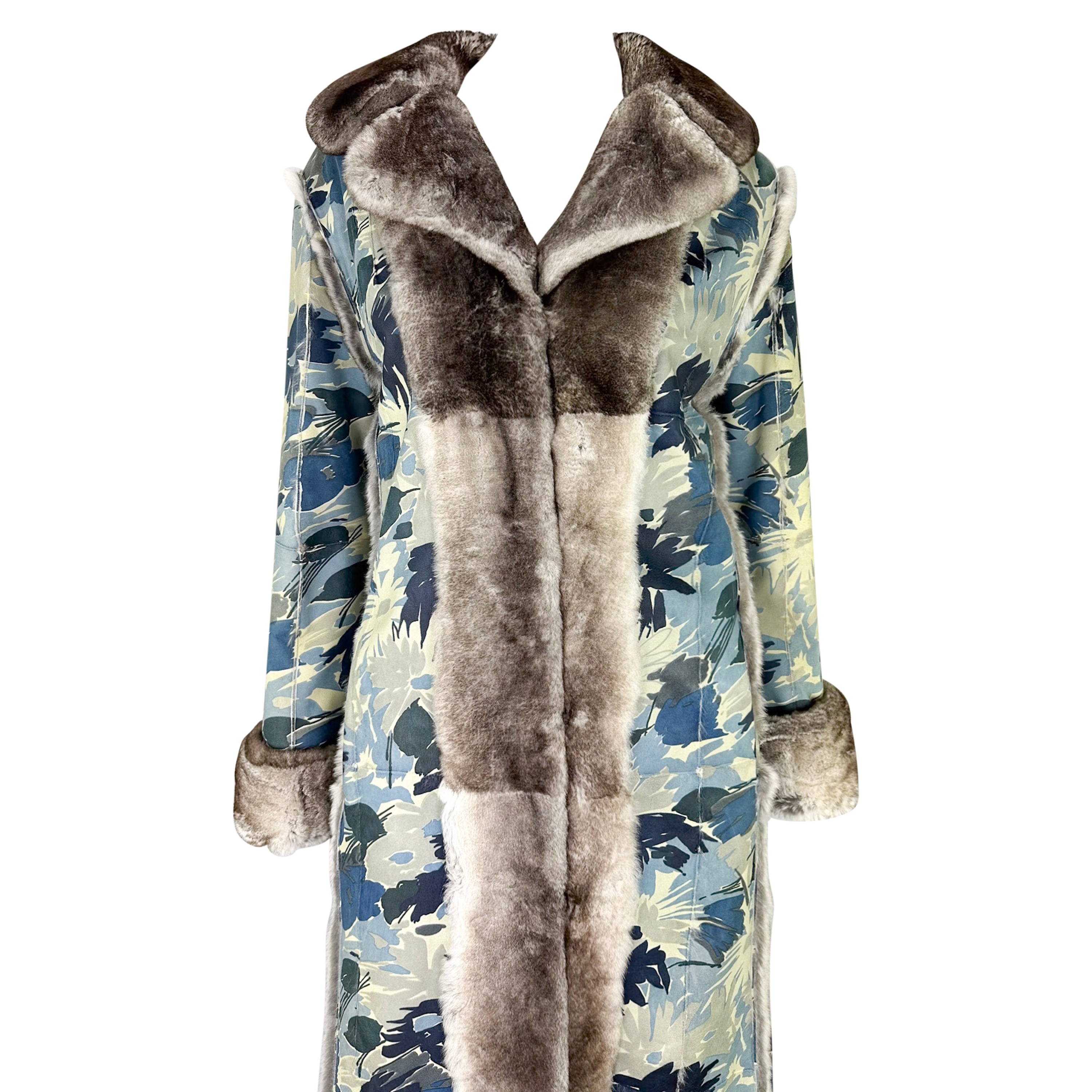 F/W 2002 Christian Dior by John Galliano Blue Floral Orylag Fur Trench Coat