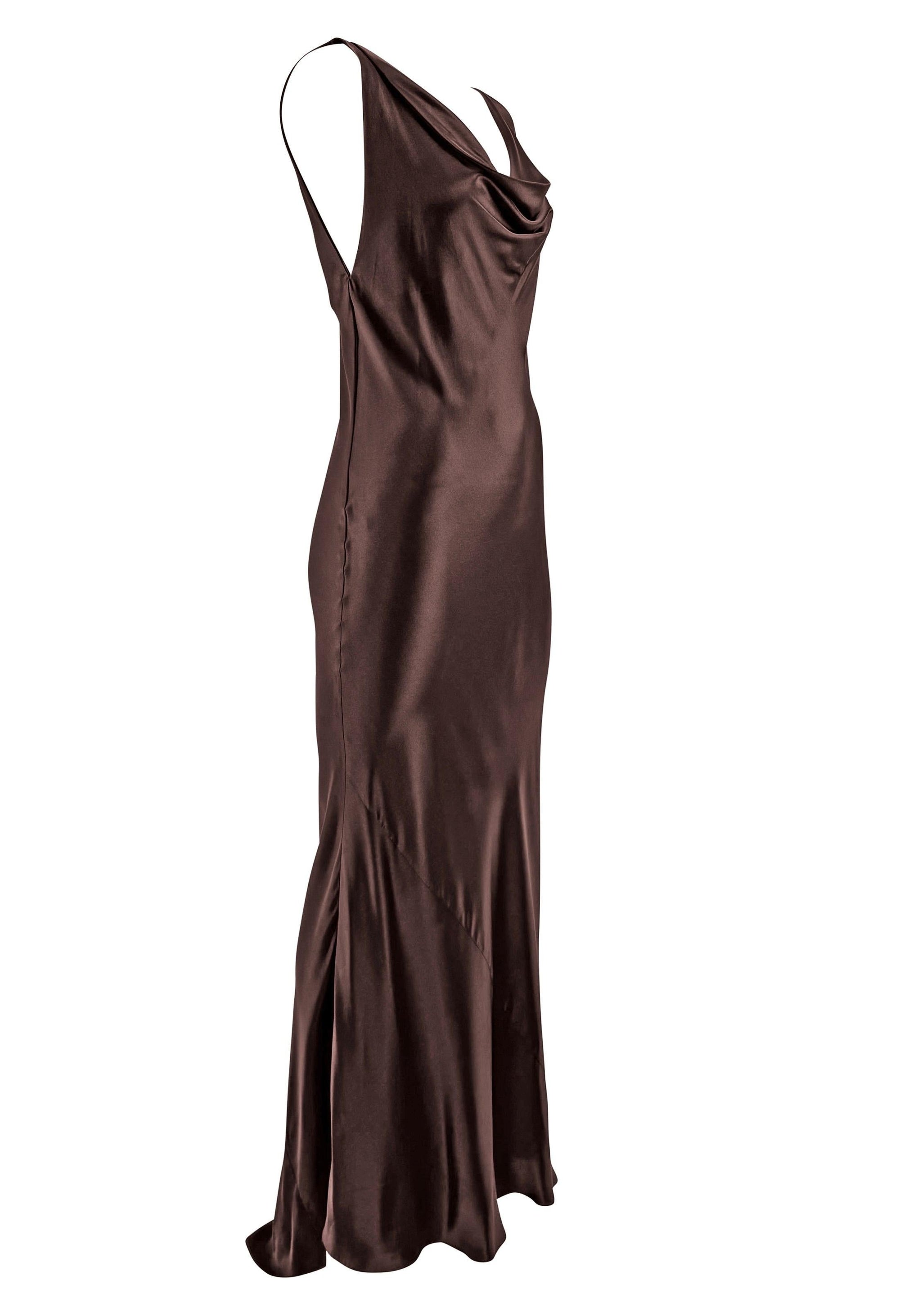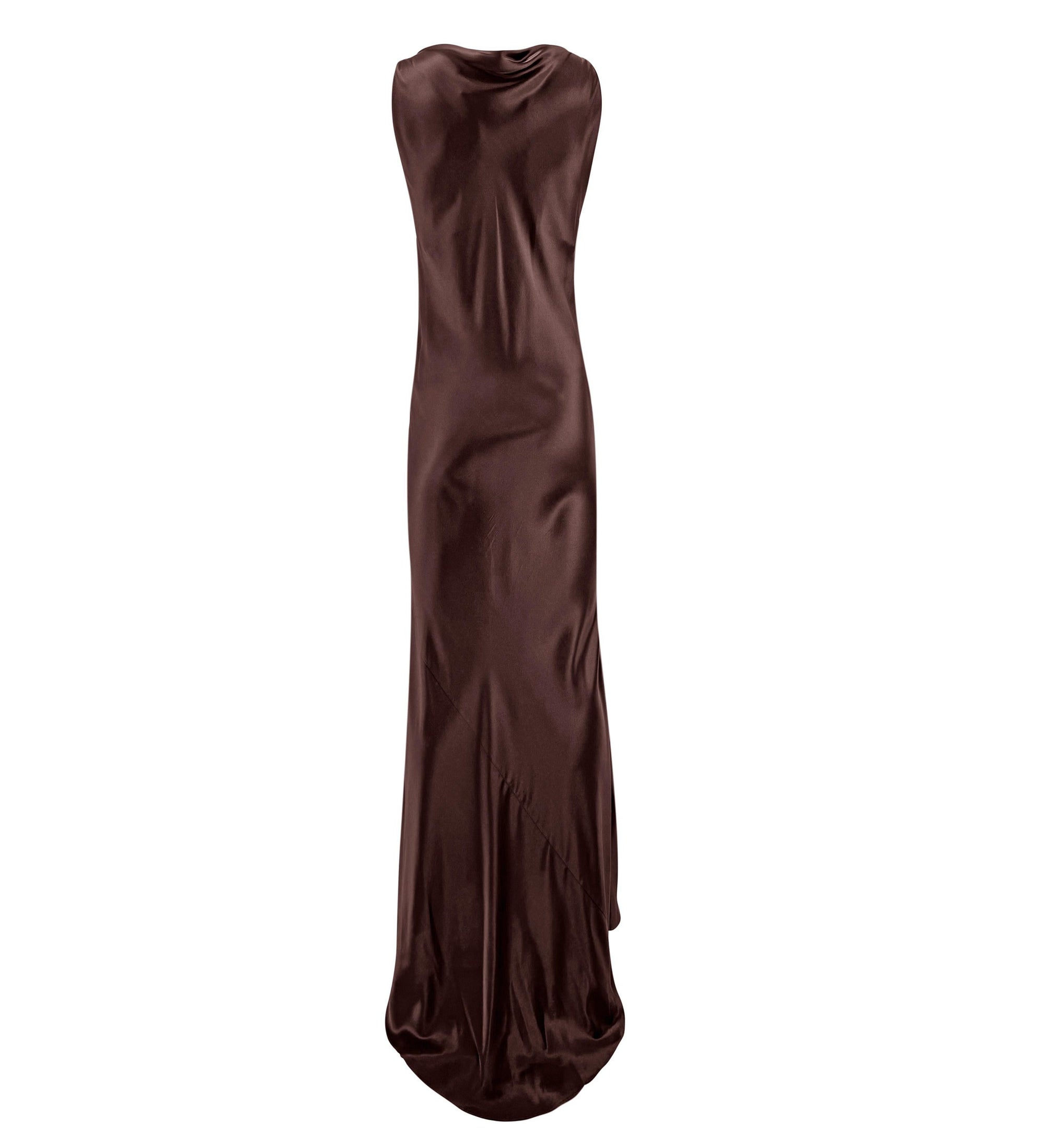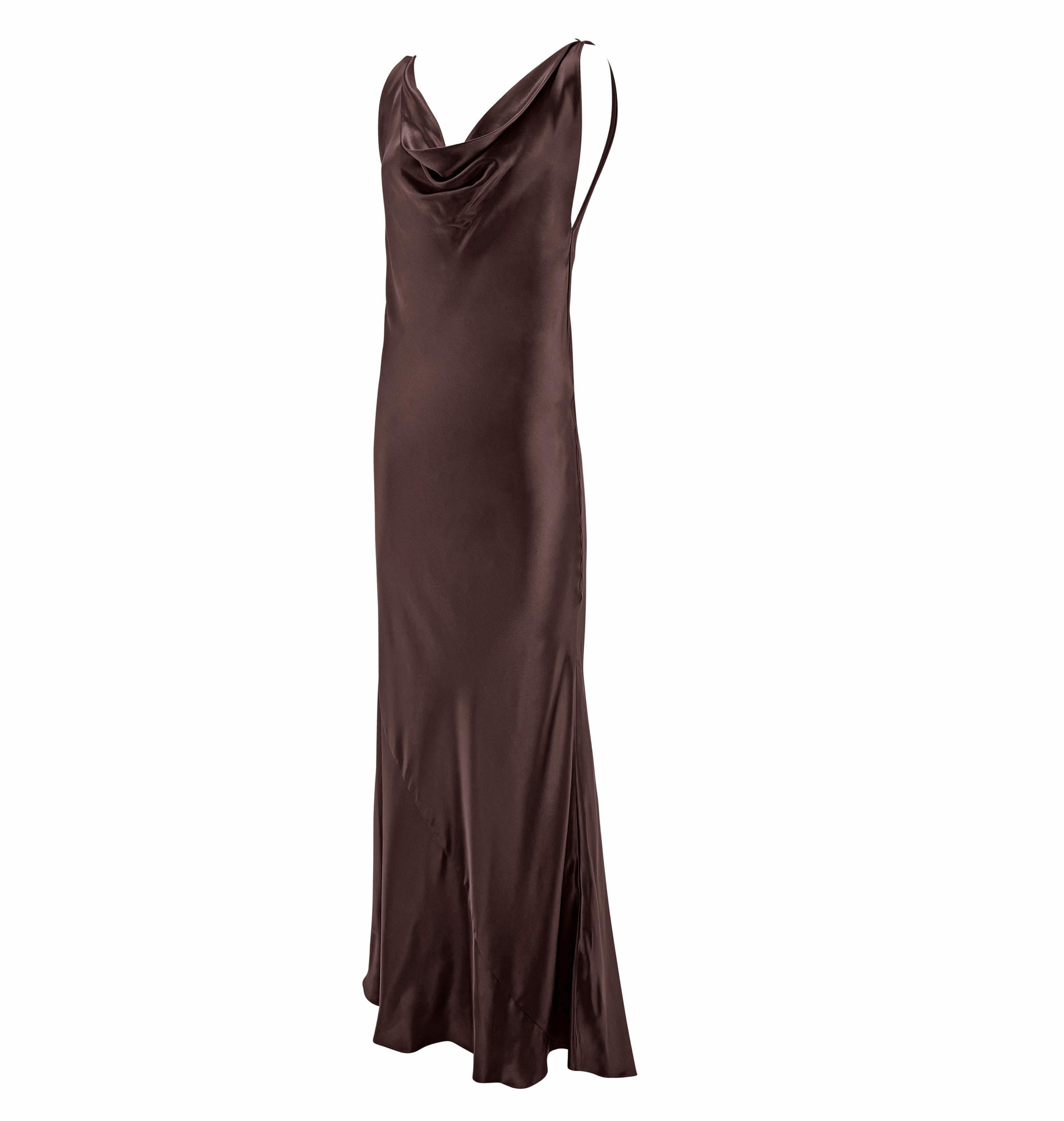 F/W 2002 Dolce & Gabbana Brown Bias Cut Silk Satin Cowl Neck Gown