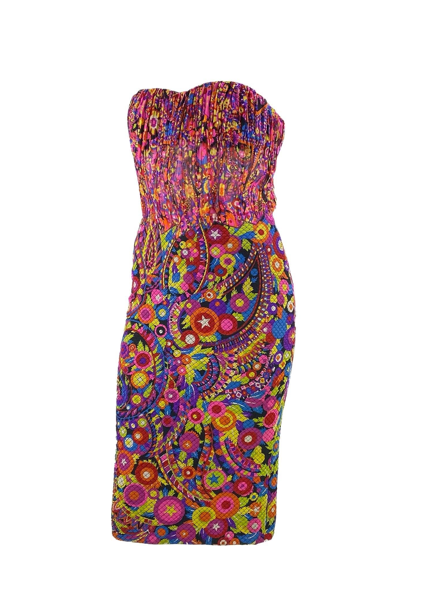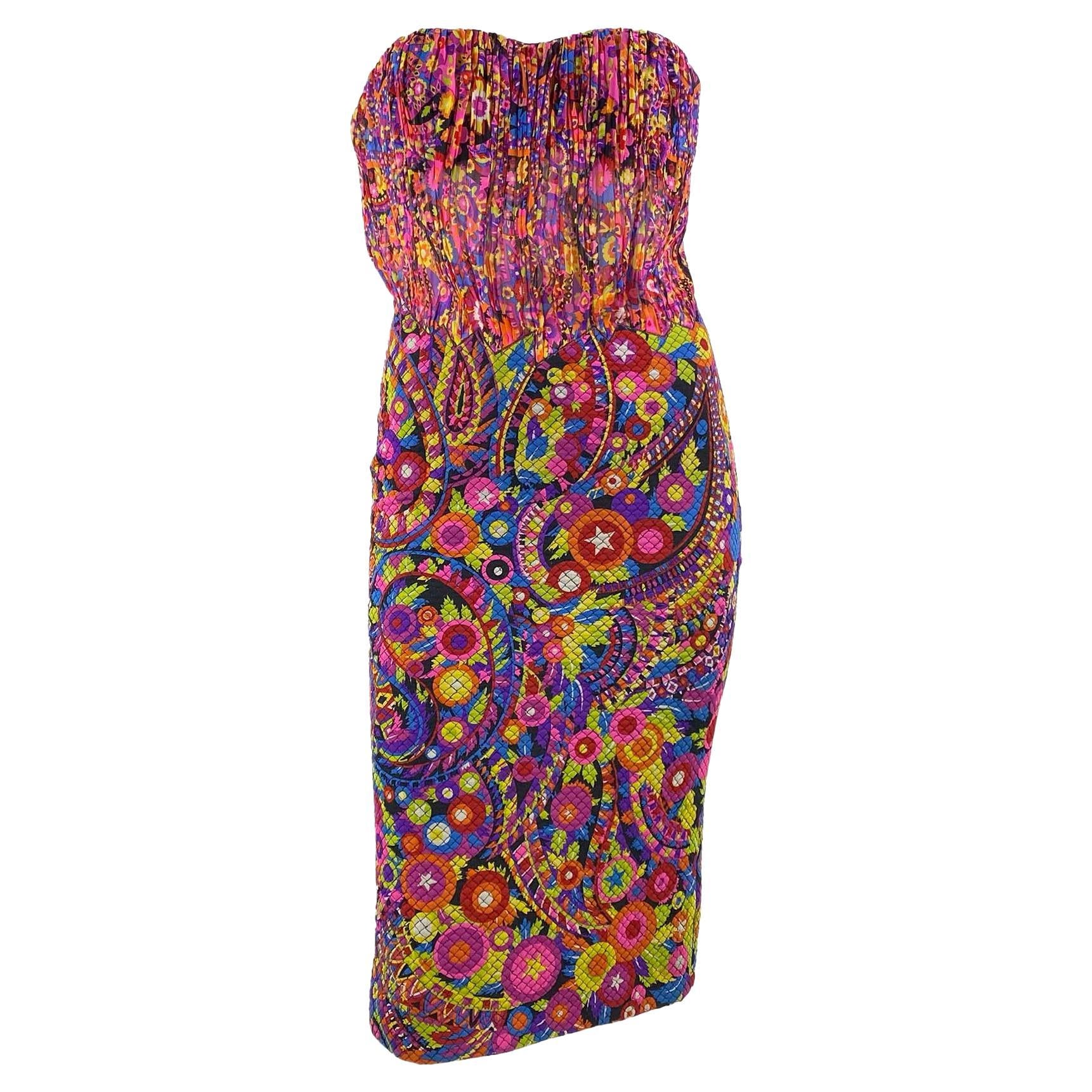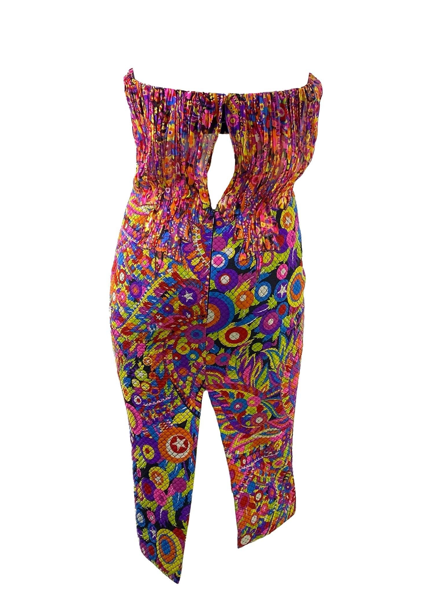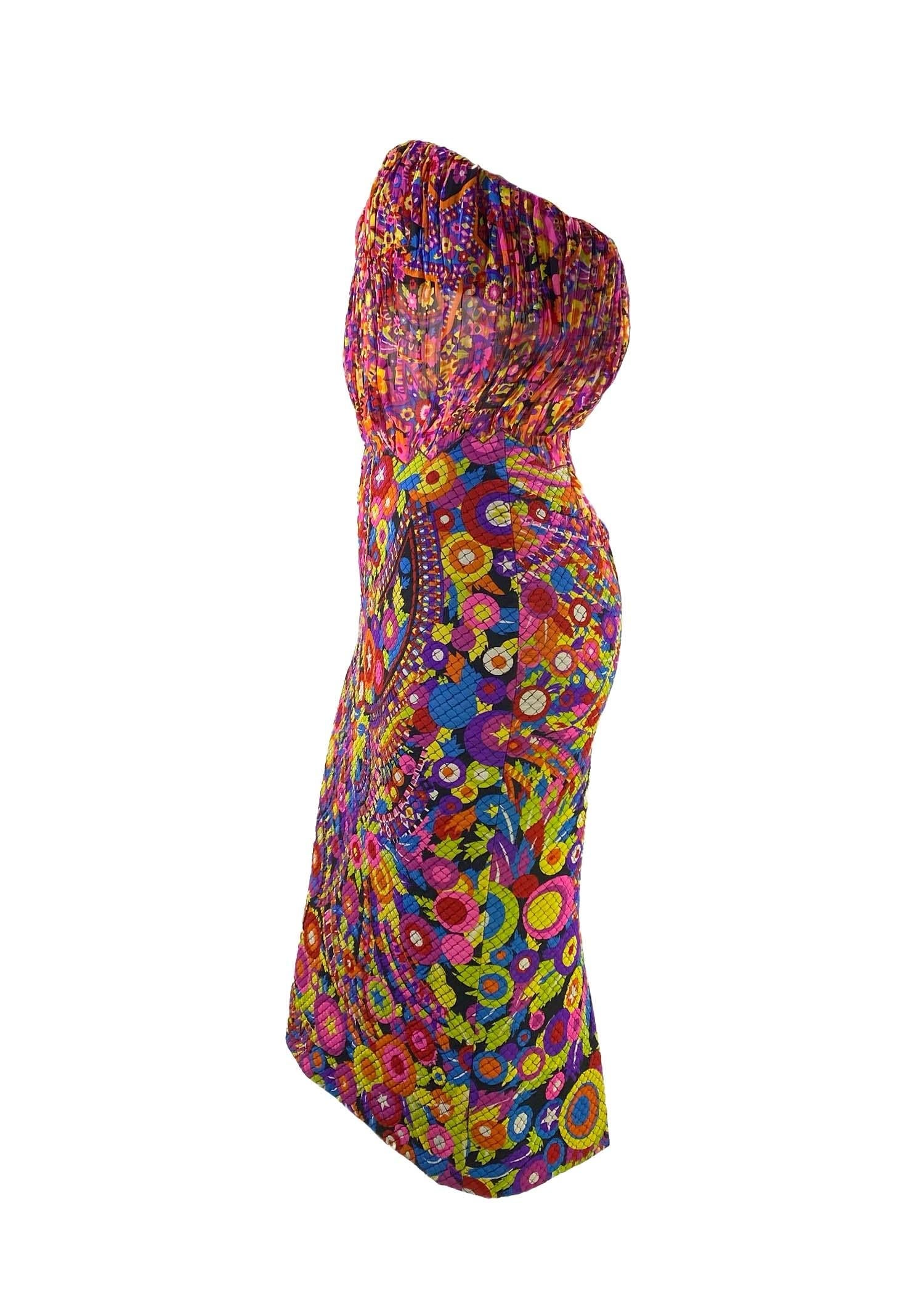 F/W 2002 Gianni Versace by Donatella Psychedelic Print Sheer Strapless Dress