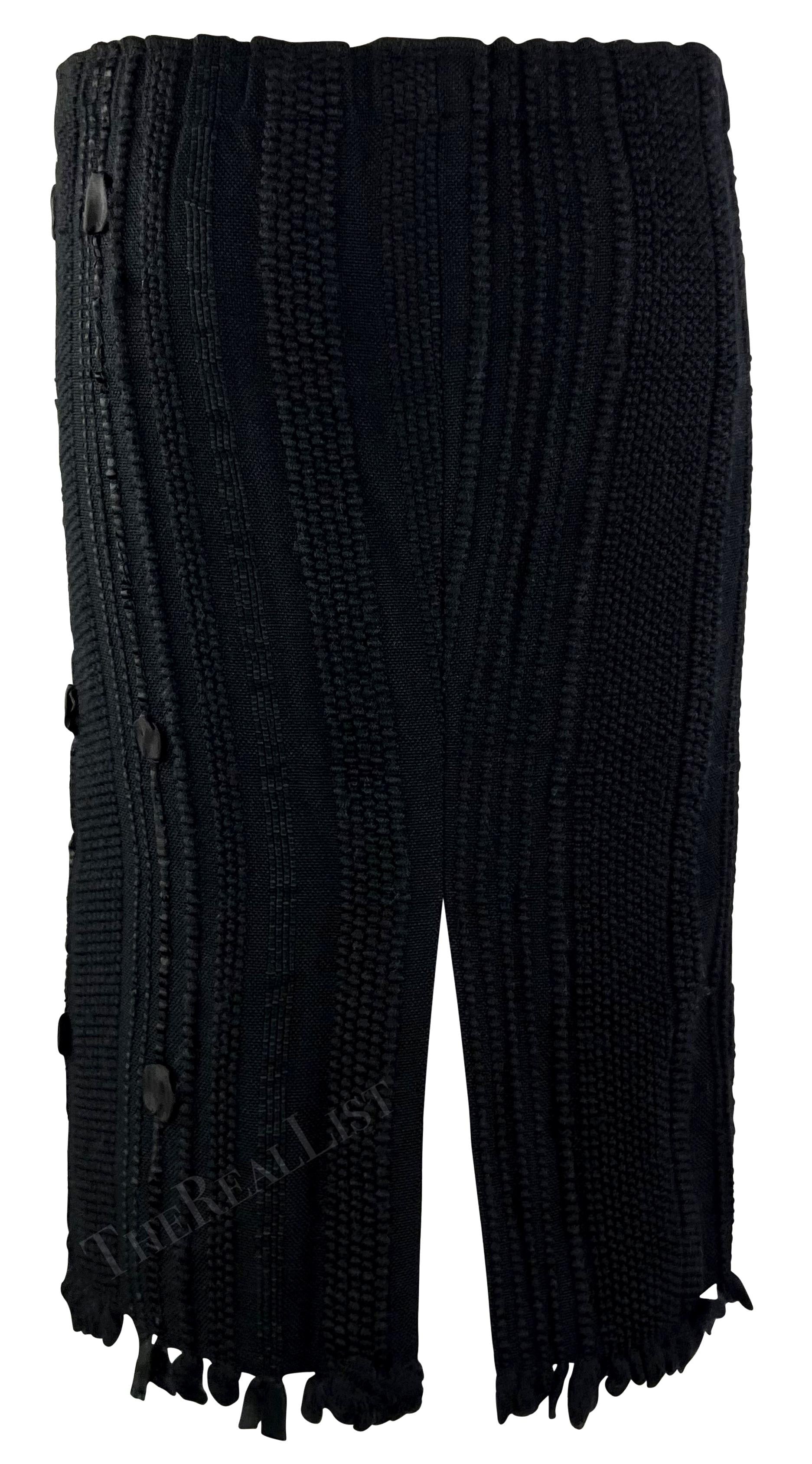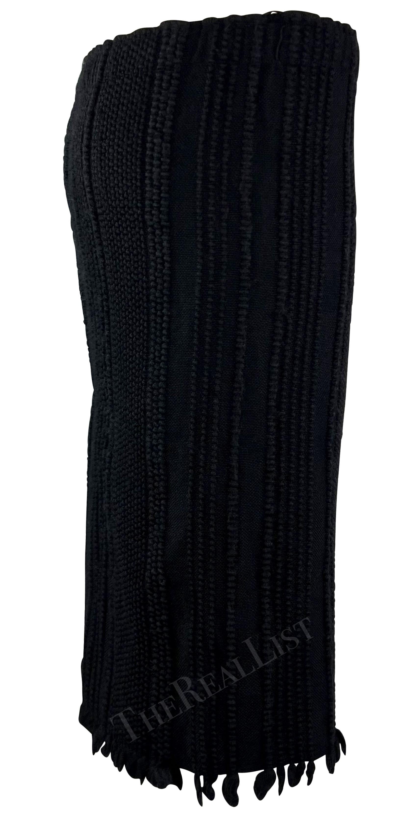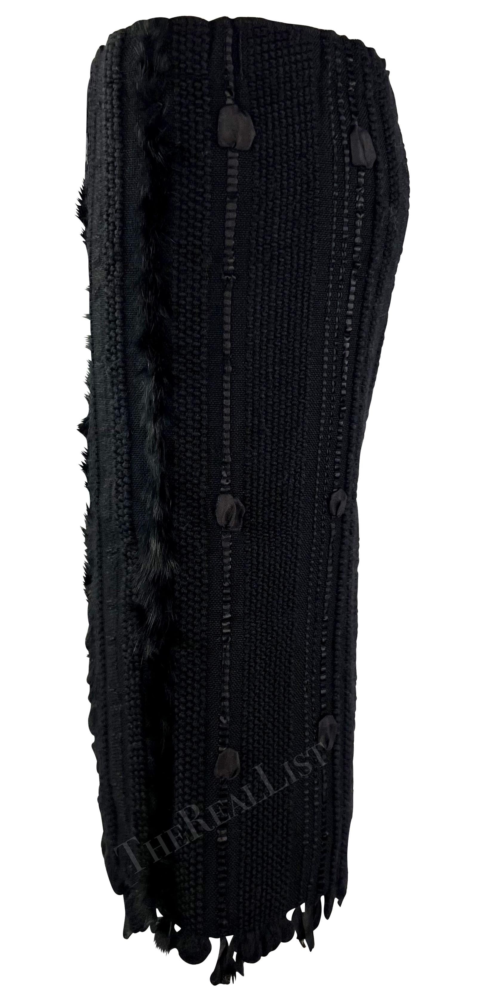 F/W 2002 Gucci by Tom Ford Black Knit Wool Fur Trim Ribbon Pencil Skirt