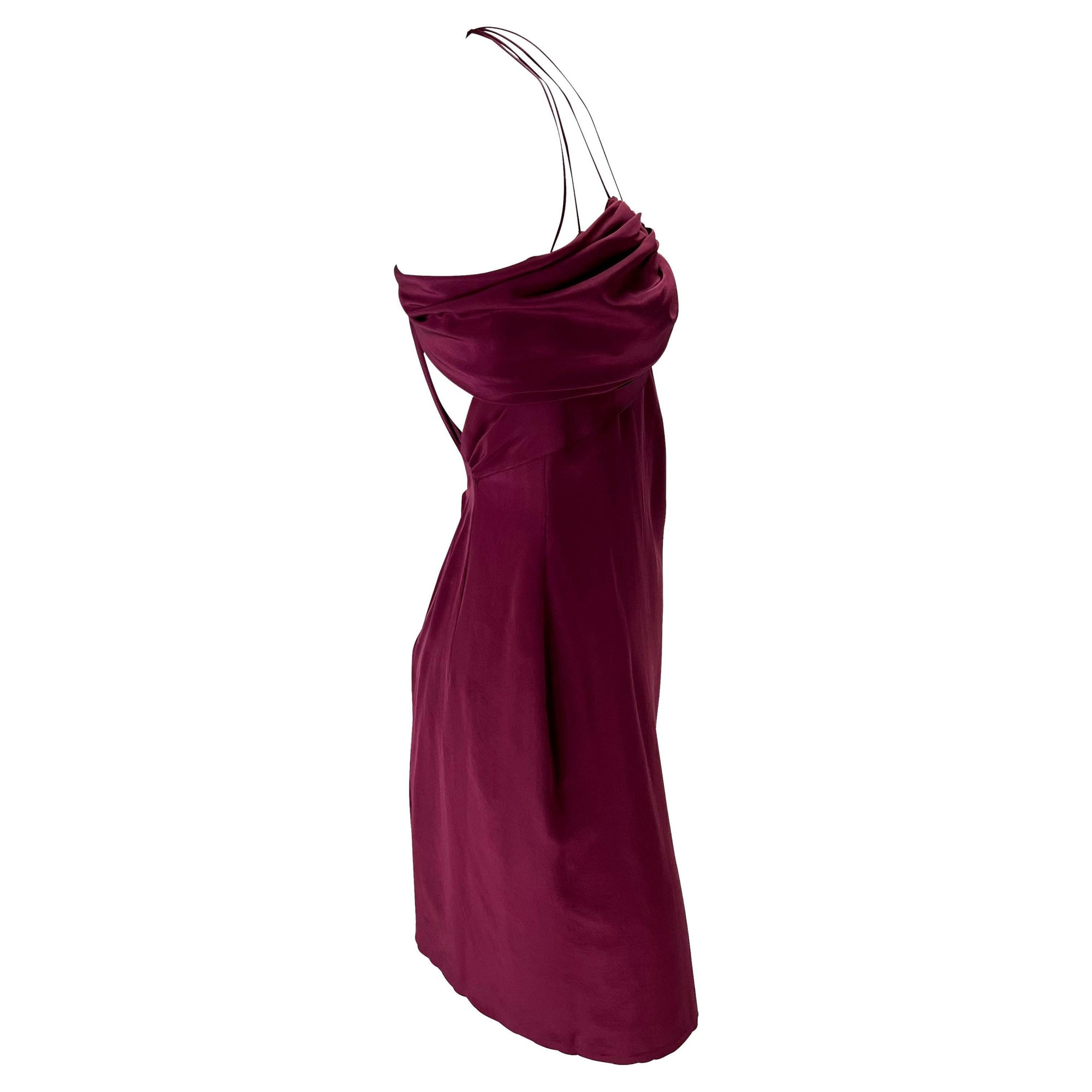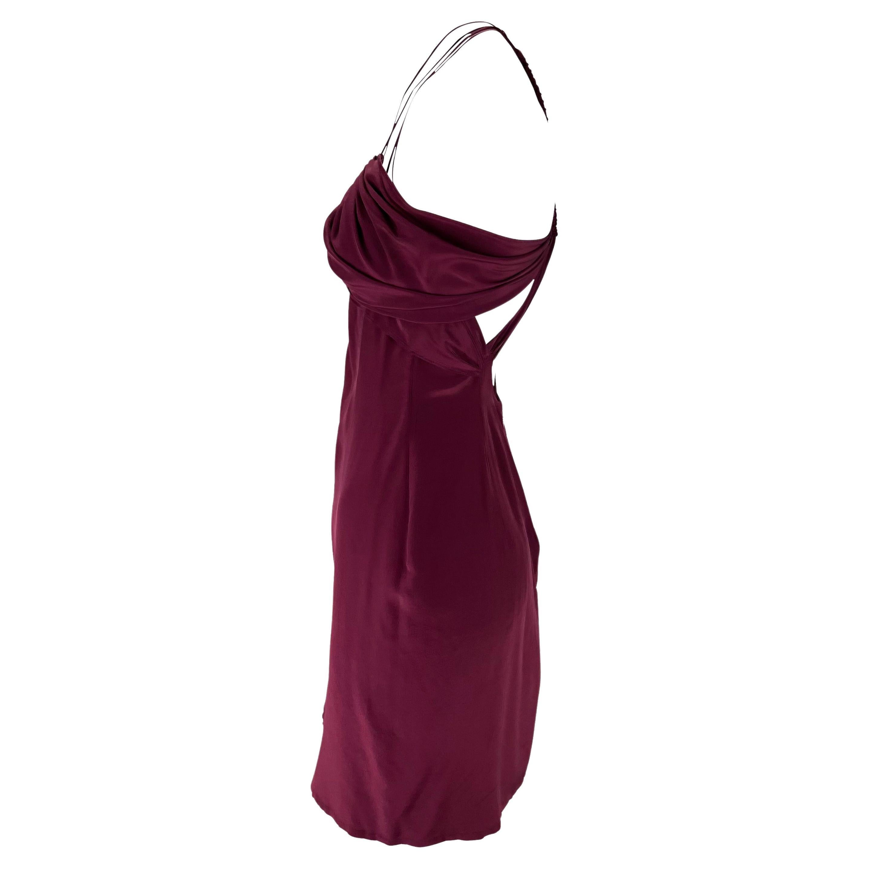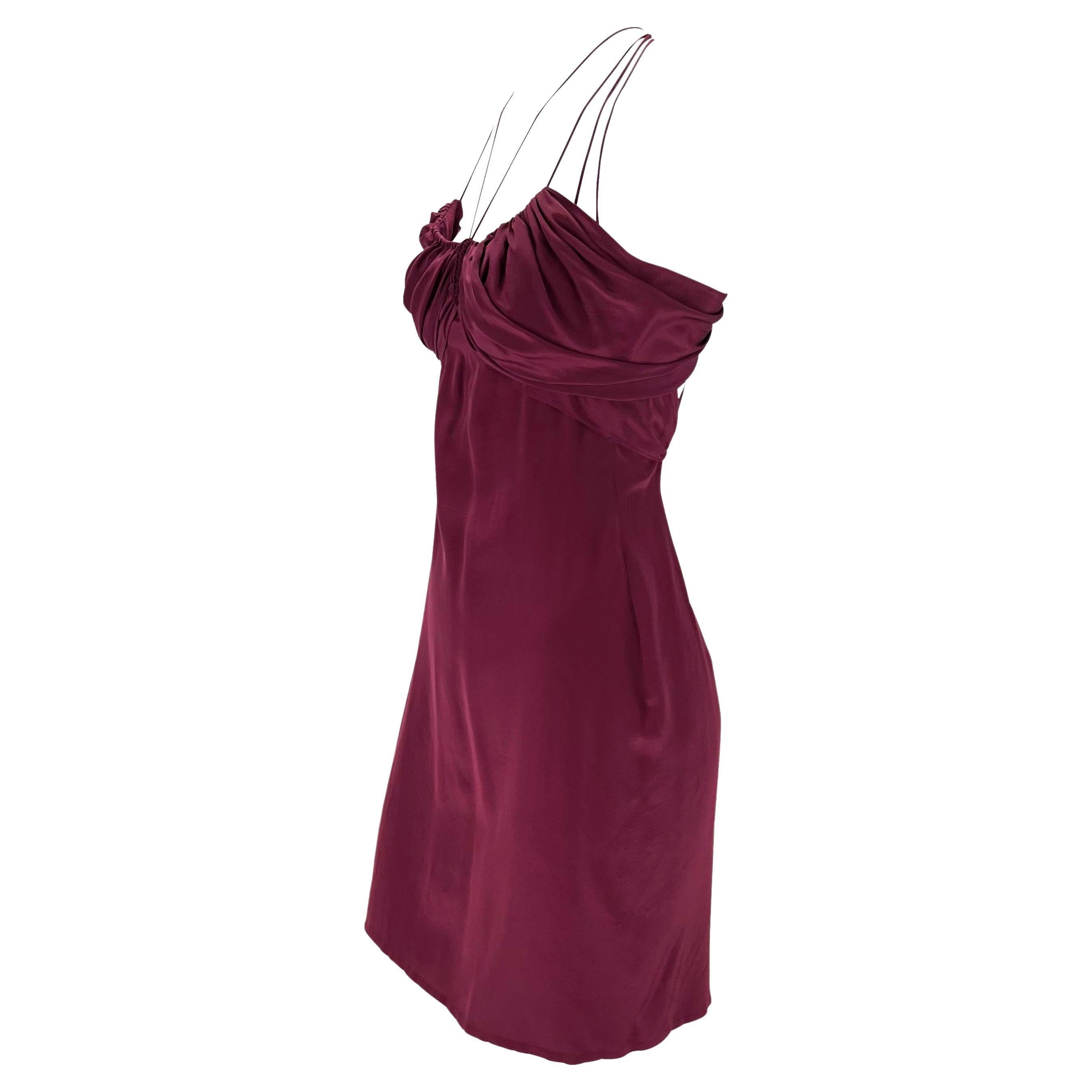F/W 2002 Gucci by Tom Ford Maroon Strappy Silk Chiffon Mini Dress
