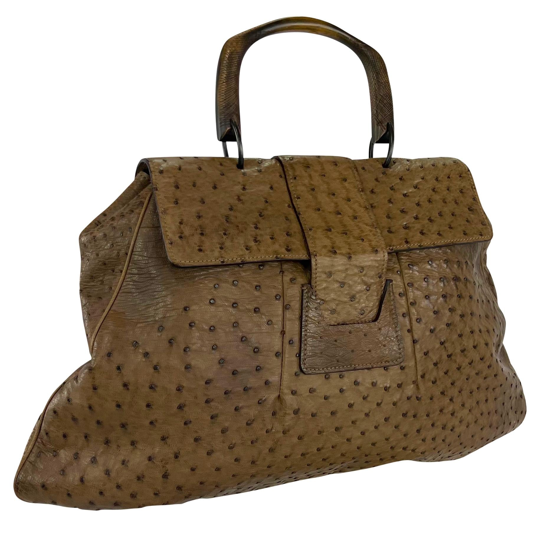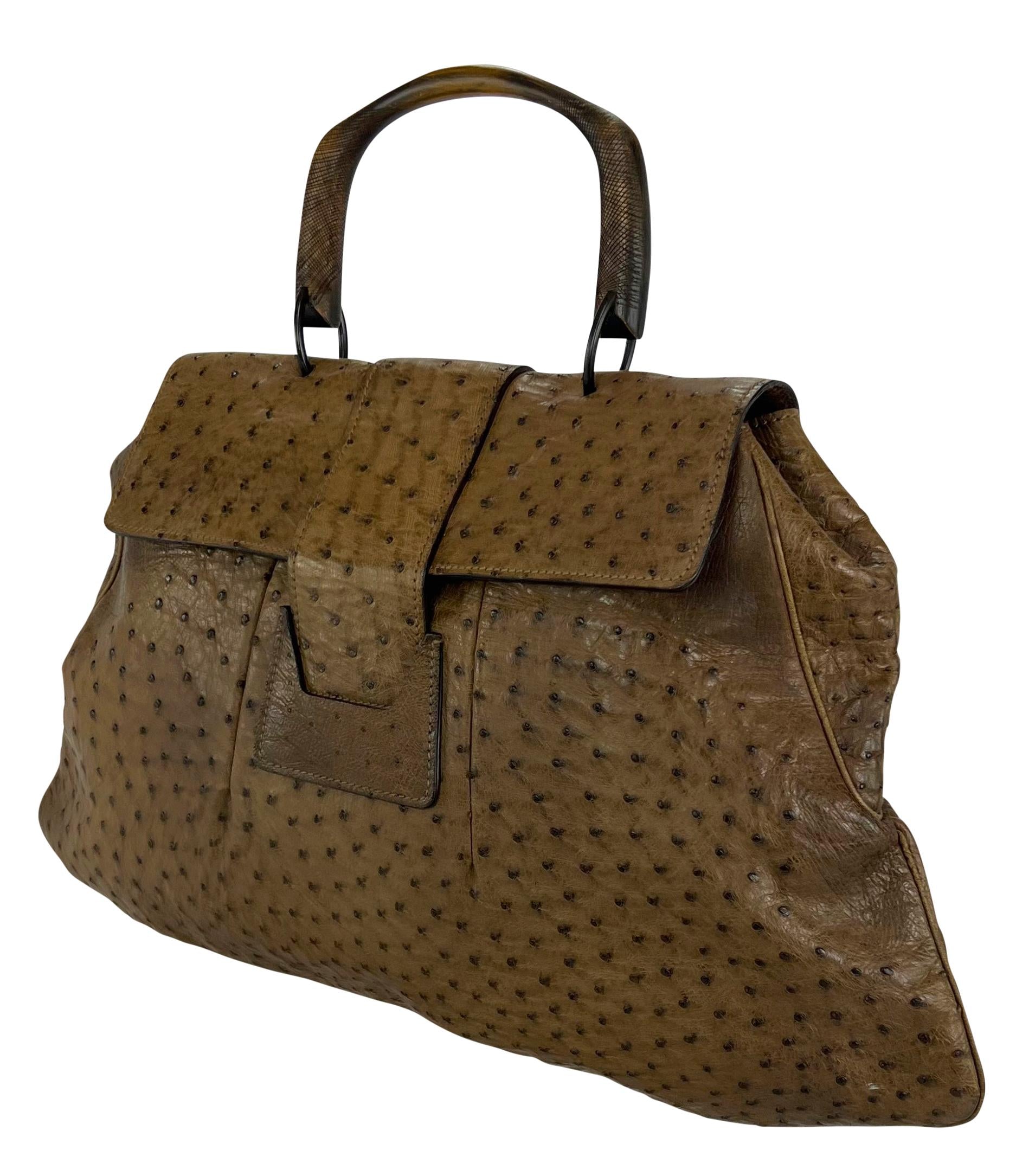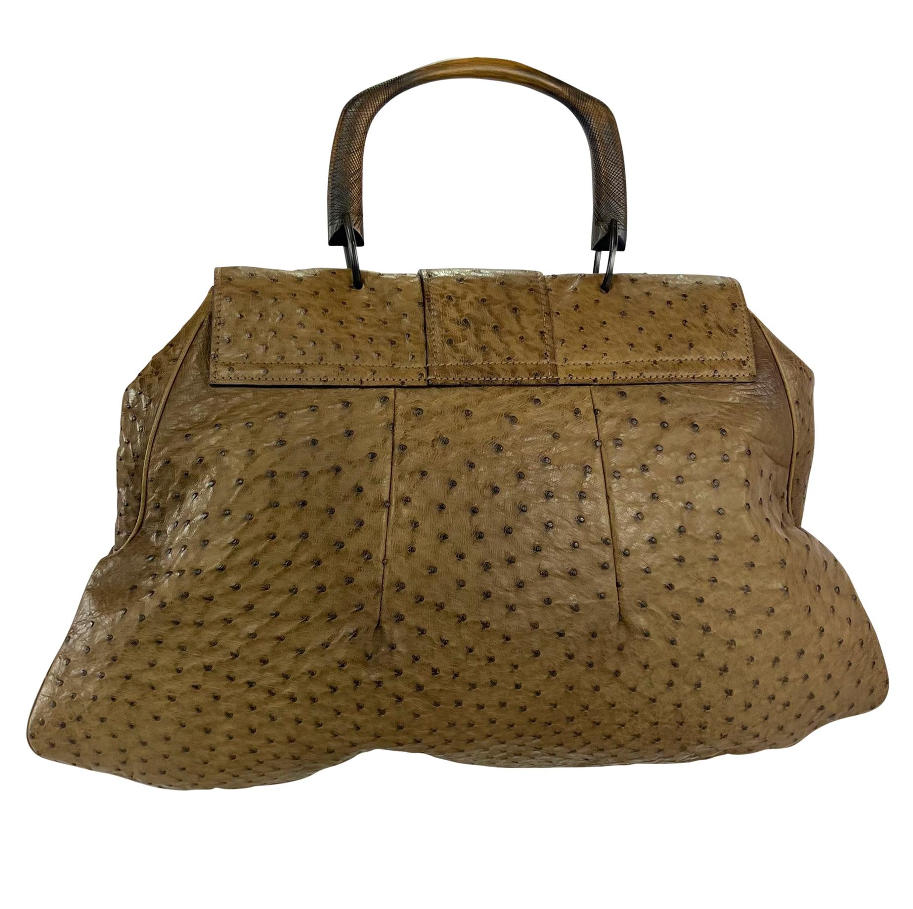 F/W 2002 Gucci by Tom Ford Oversized Genuine Ostrich Skin Tan Wood XL Tote Bag