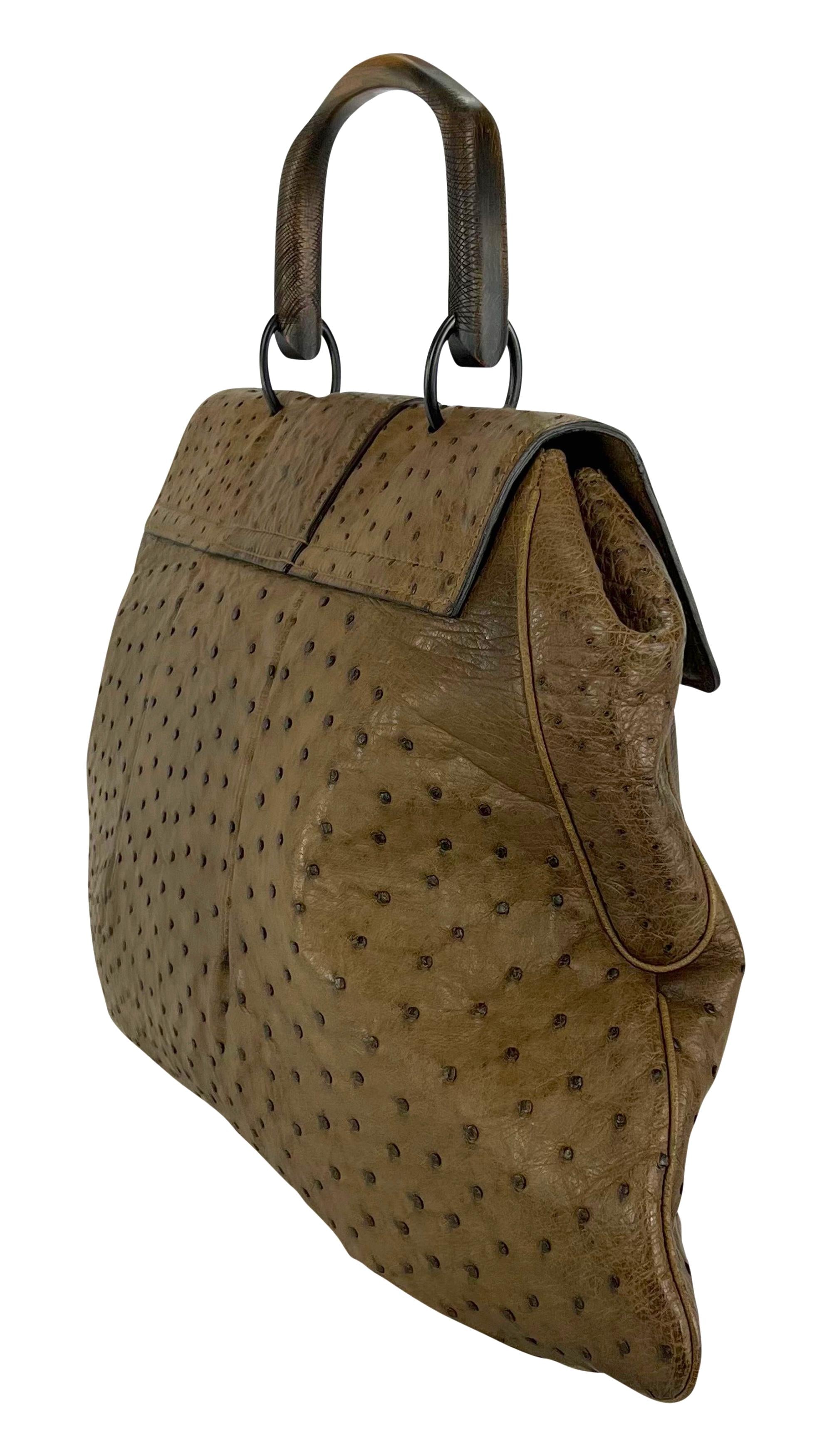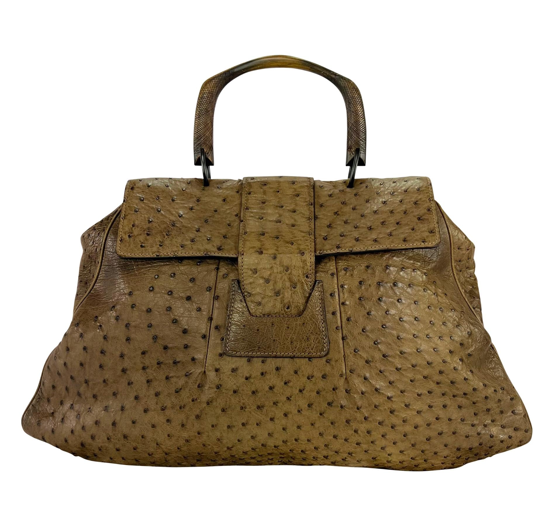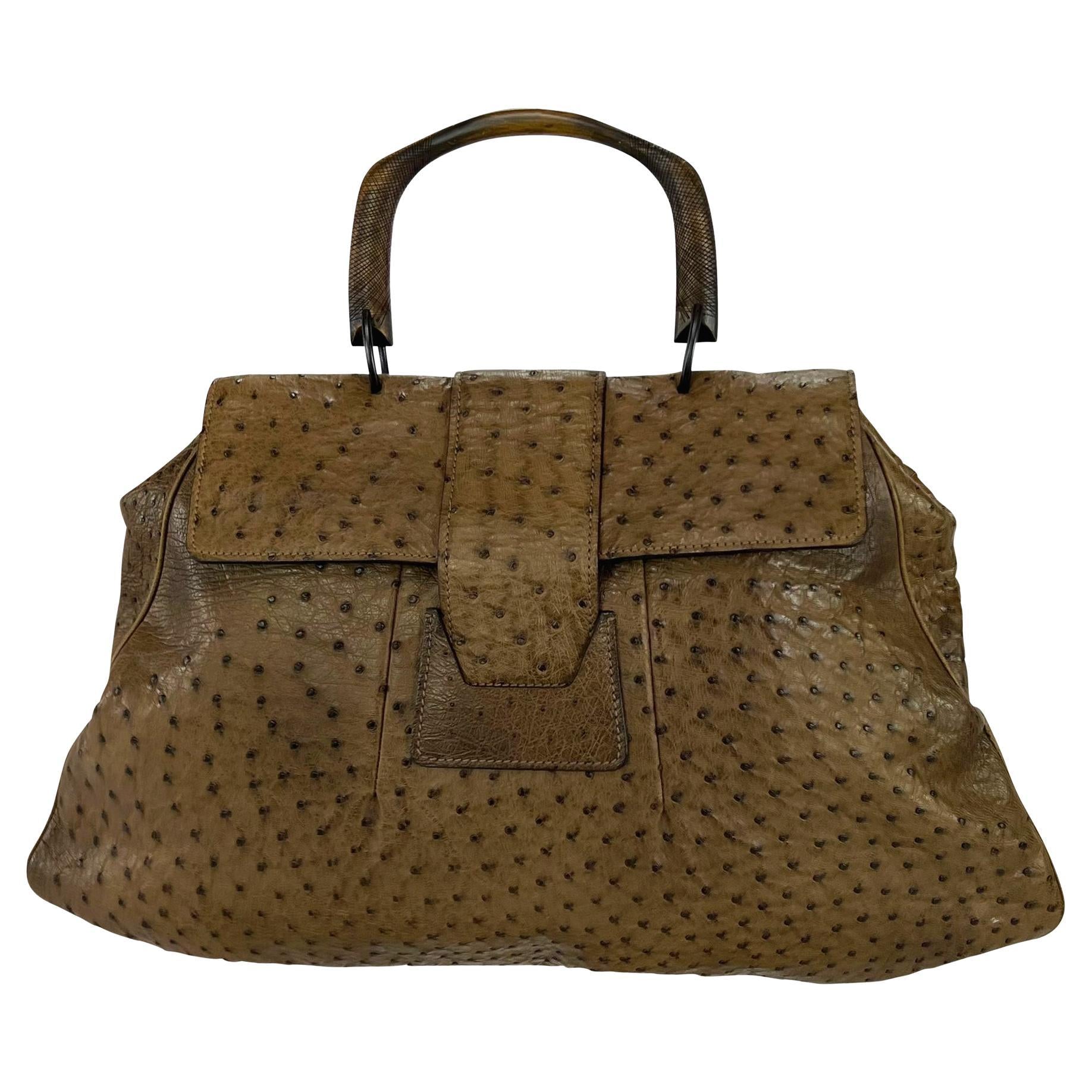 F/W 2002 Gucci by Tom Ford Oversized Genuine Ostrich Skin Tan Wood XL Tote Bag