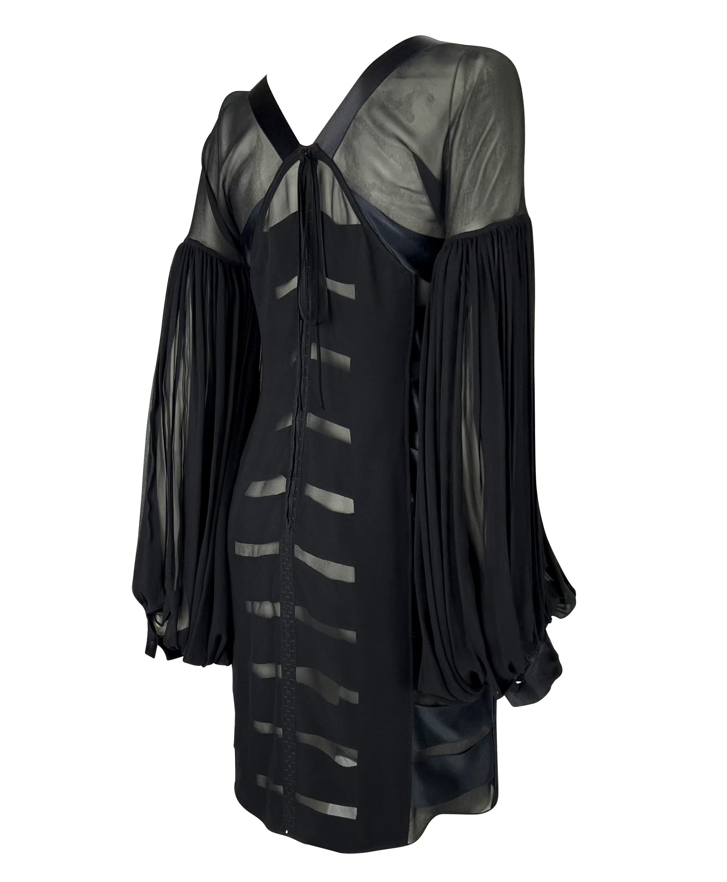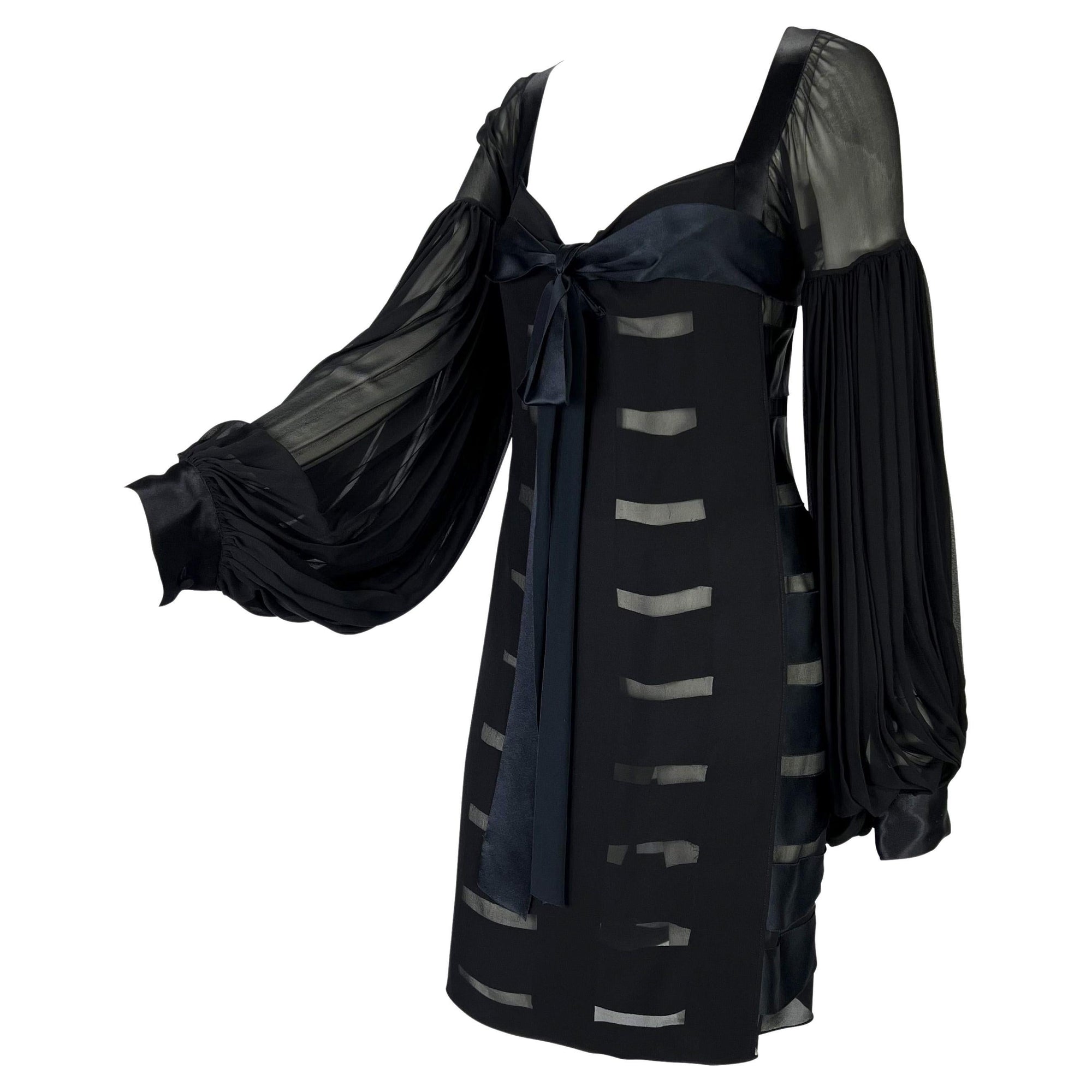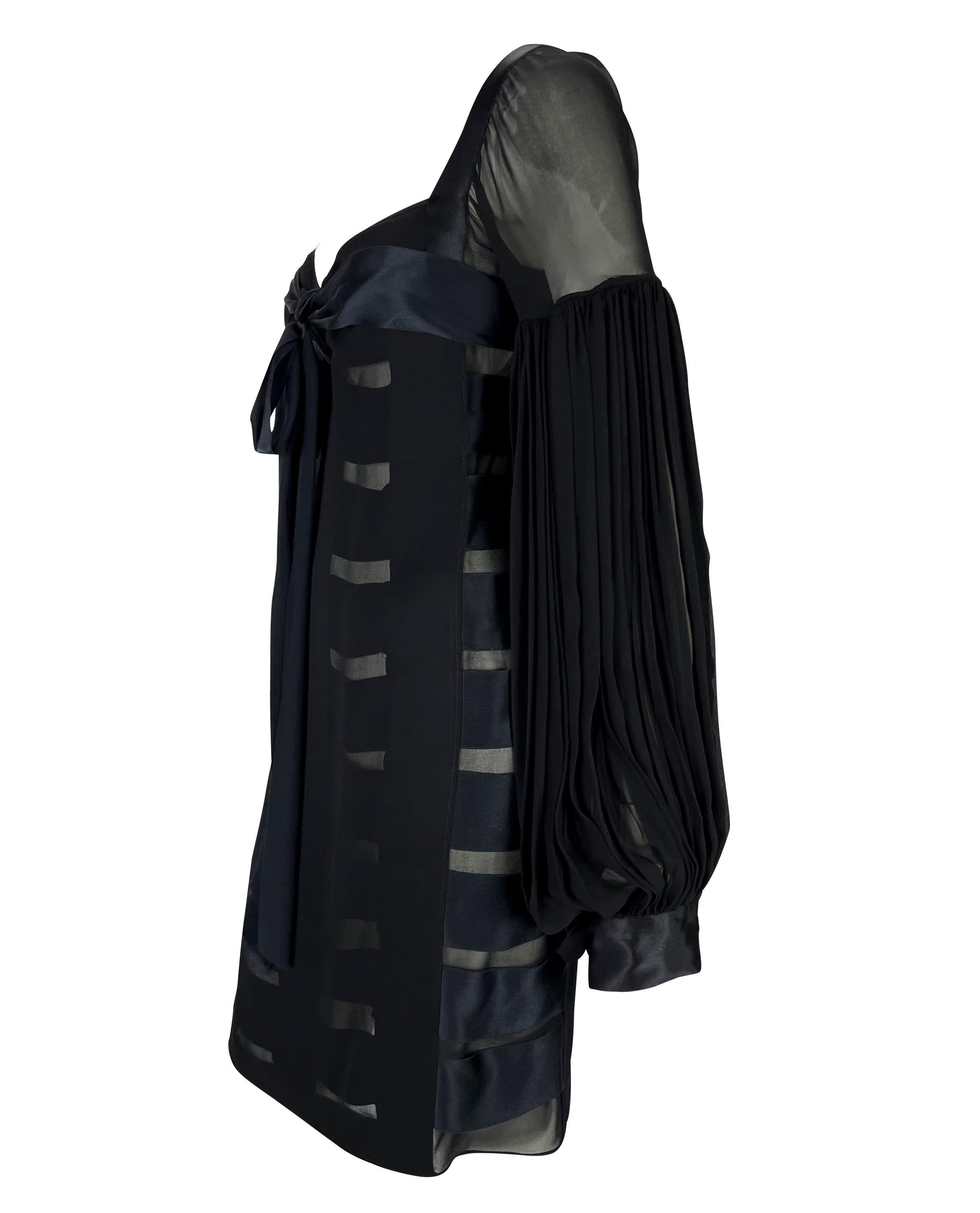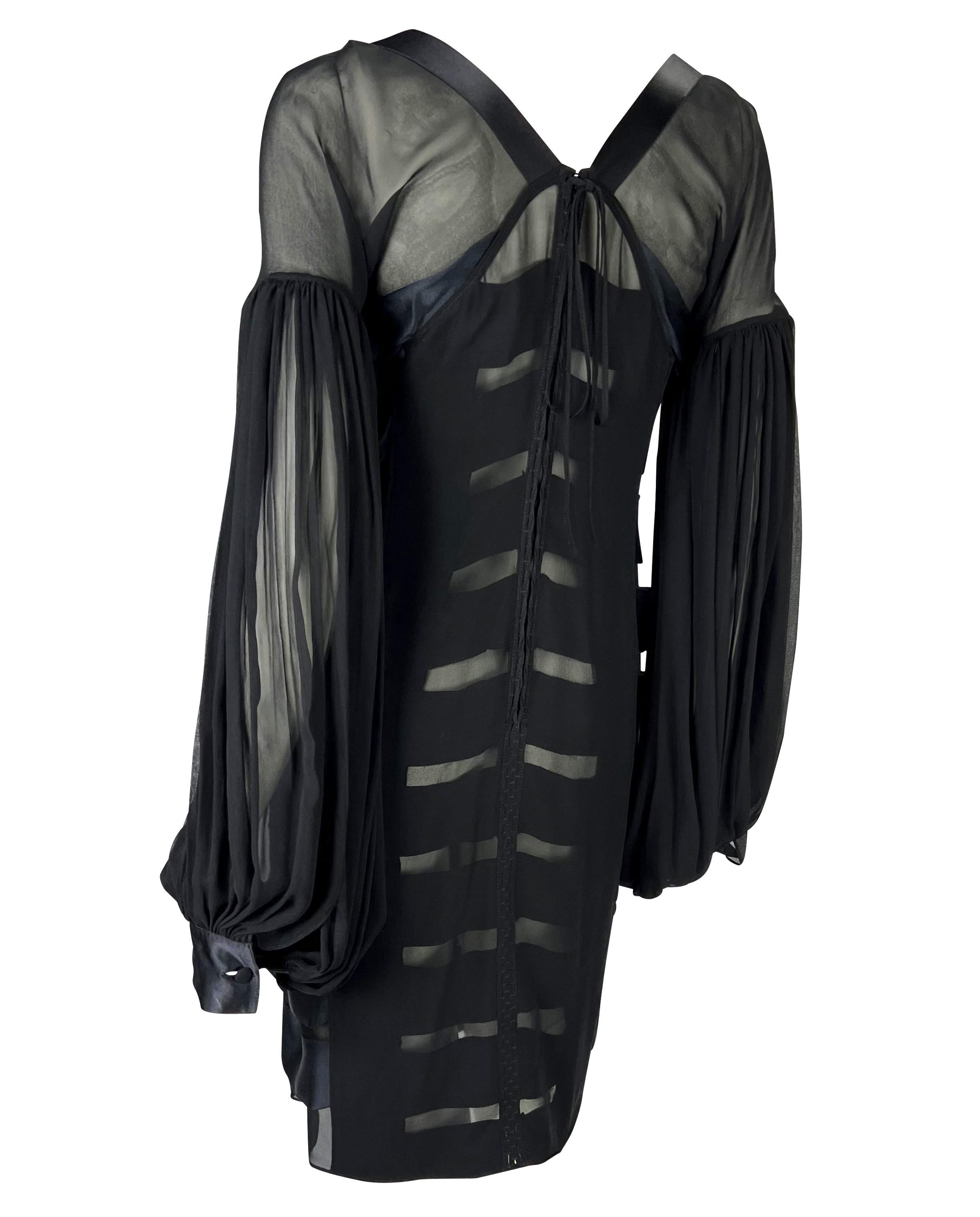 F/W 2002 Yves Saint Laurent by Tom Ford Black Sheer Poet Sleeve Ribbon Dress