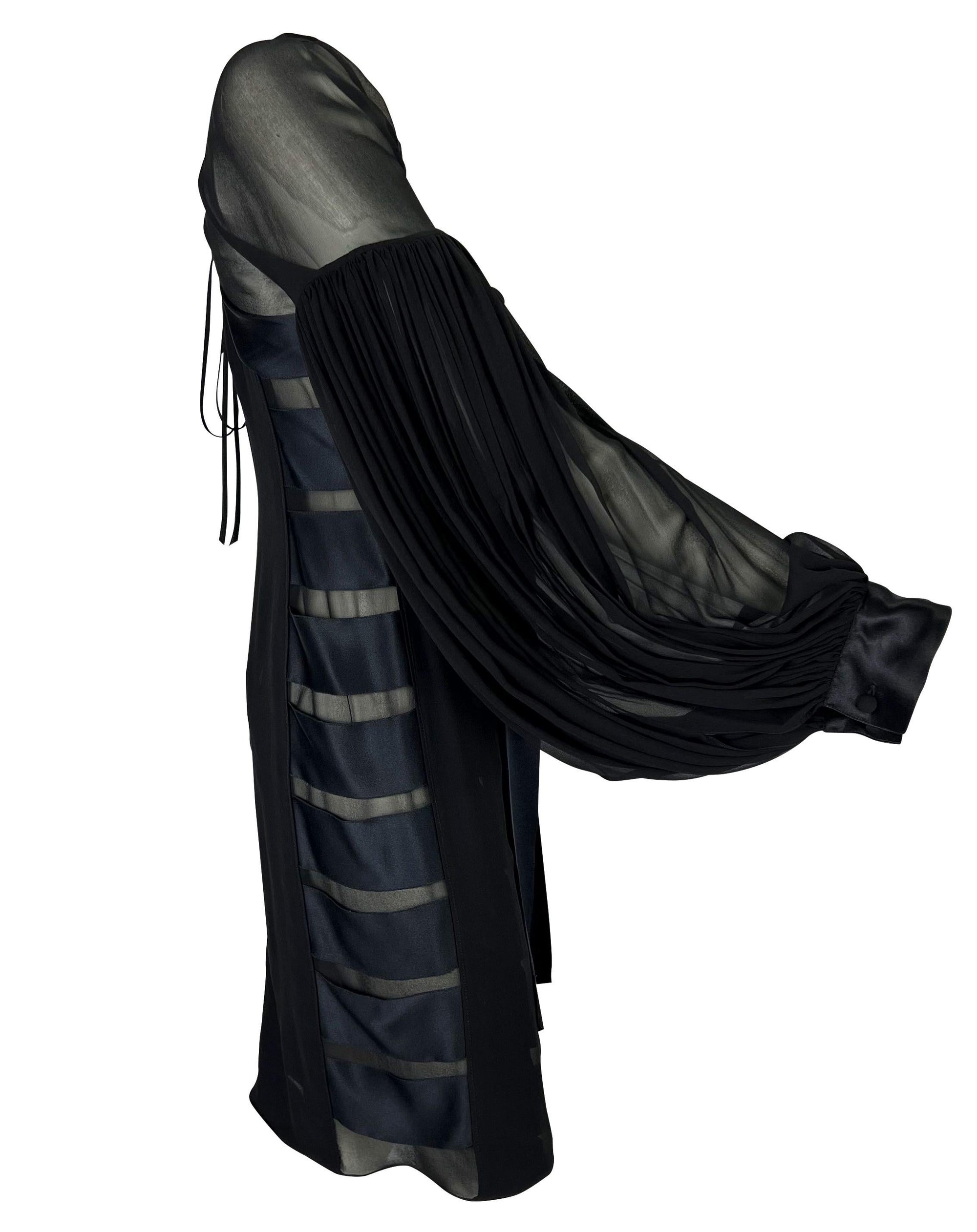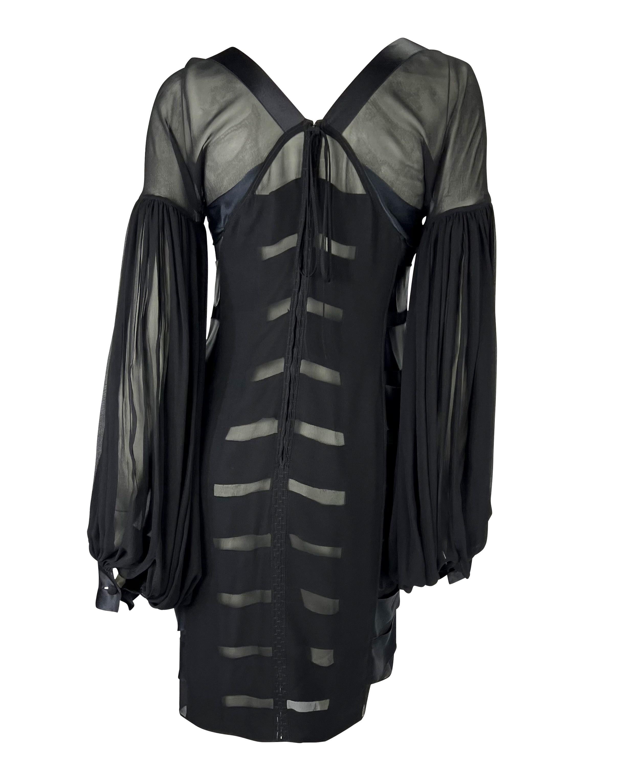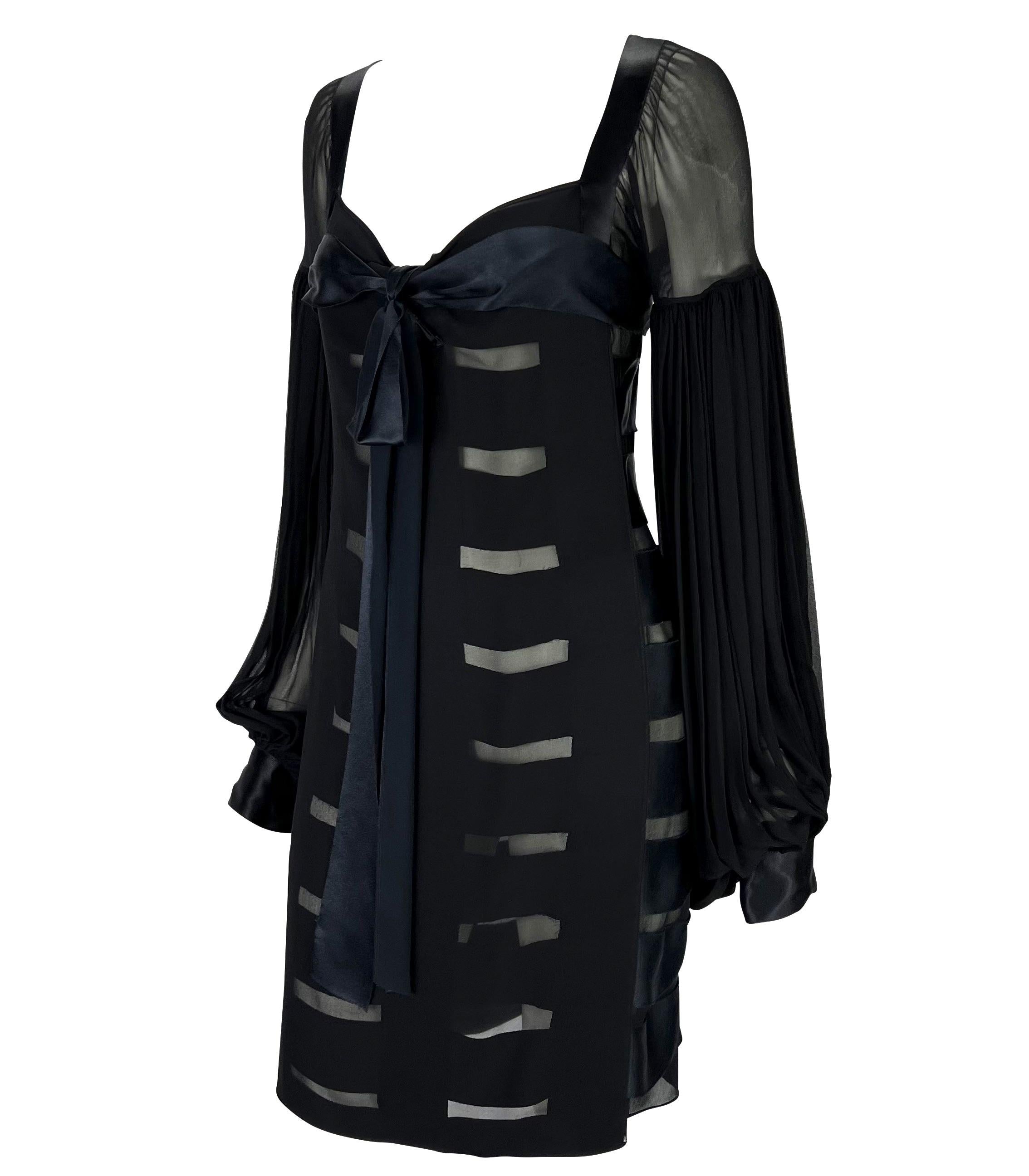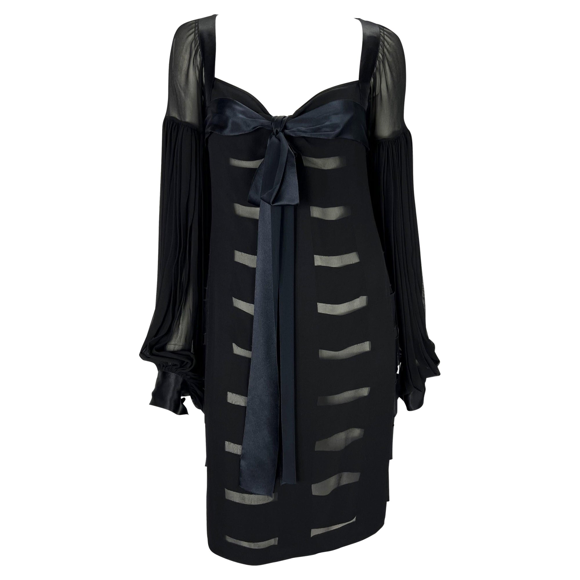 F/W 2002 Yves Saint Laurent by Tom Ford Black Sheer Poet Sleeve Ribbon Dress