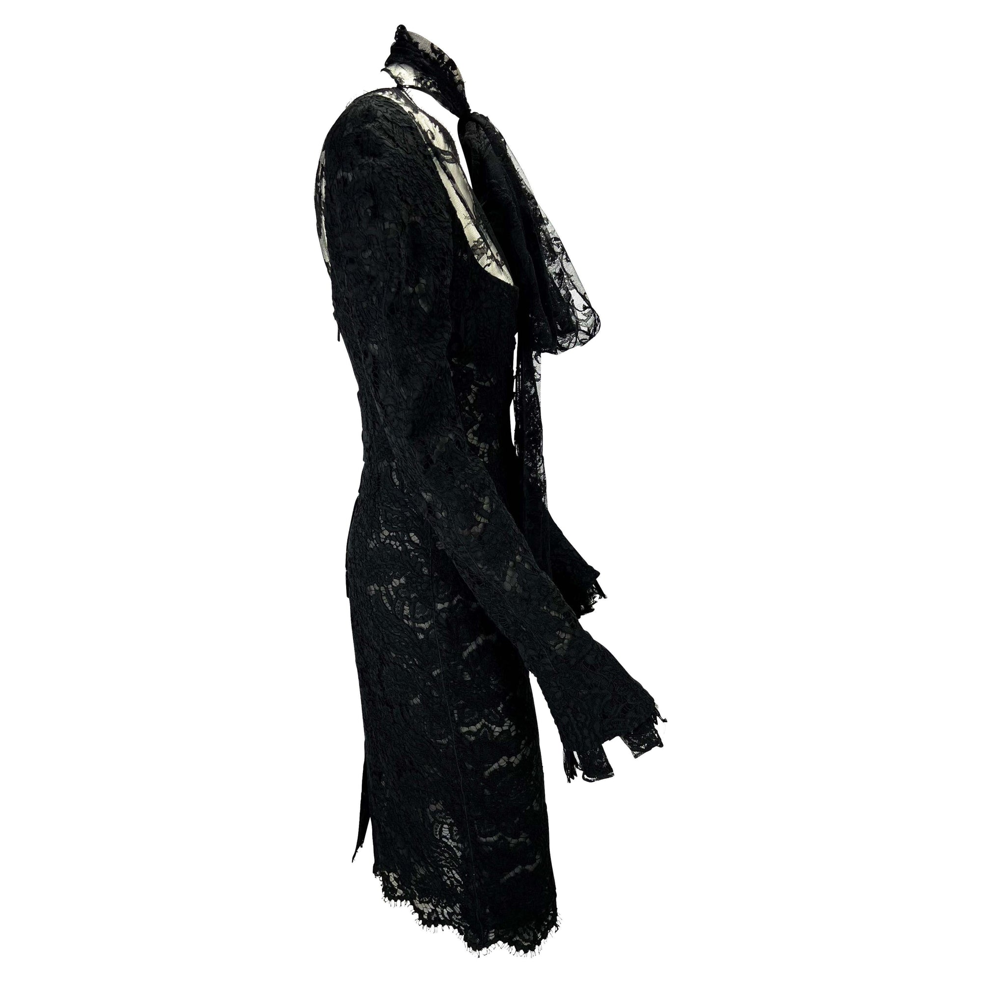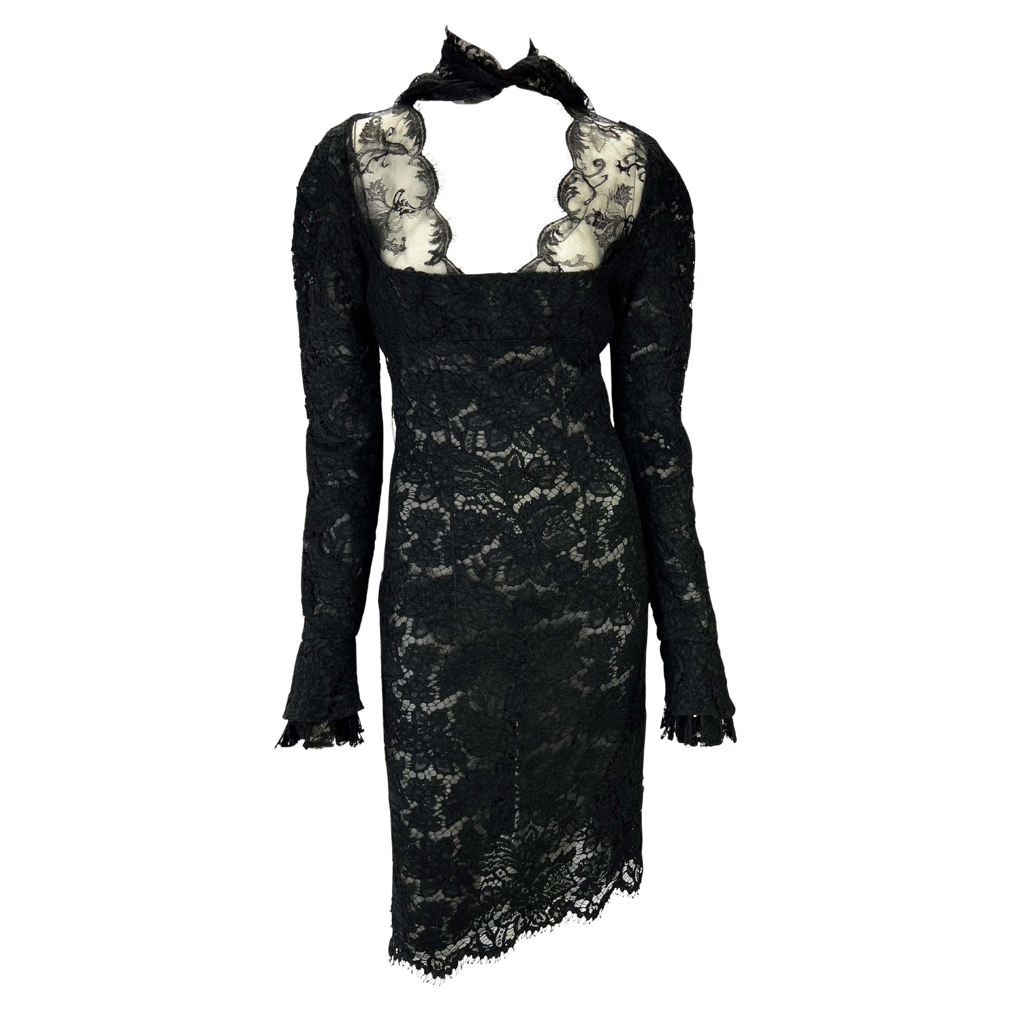 F/W 2002 Yves Saint Laurent by Tom Ford Runway Sheer Black Lace Poet's Dress