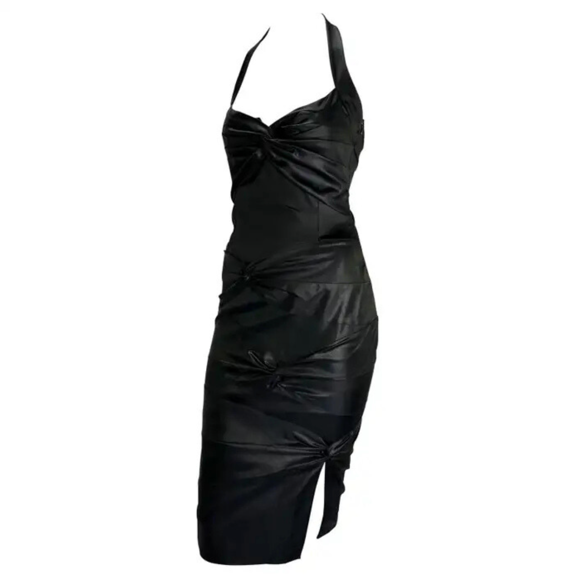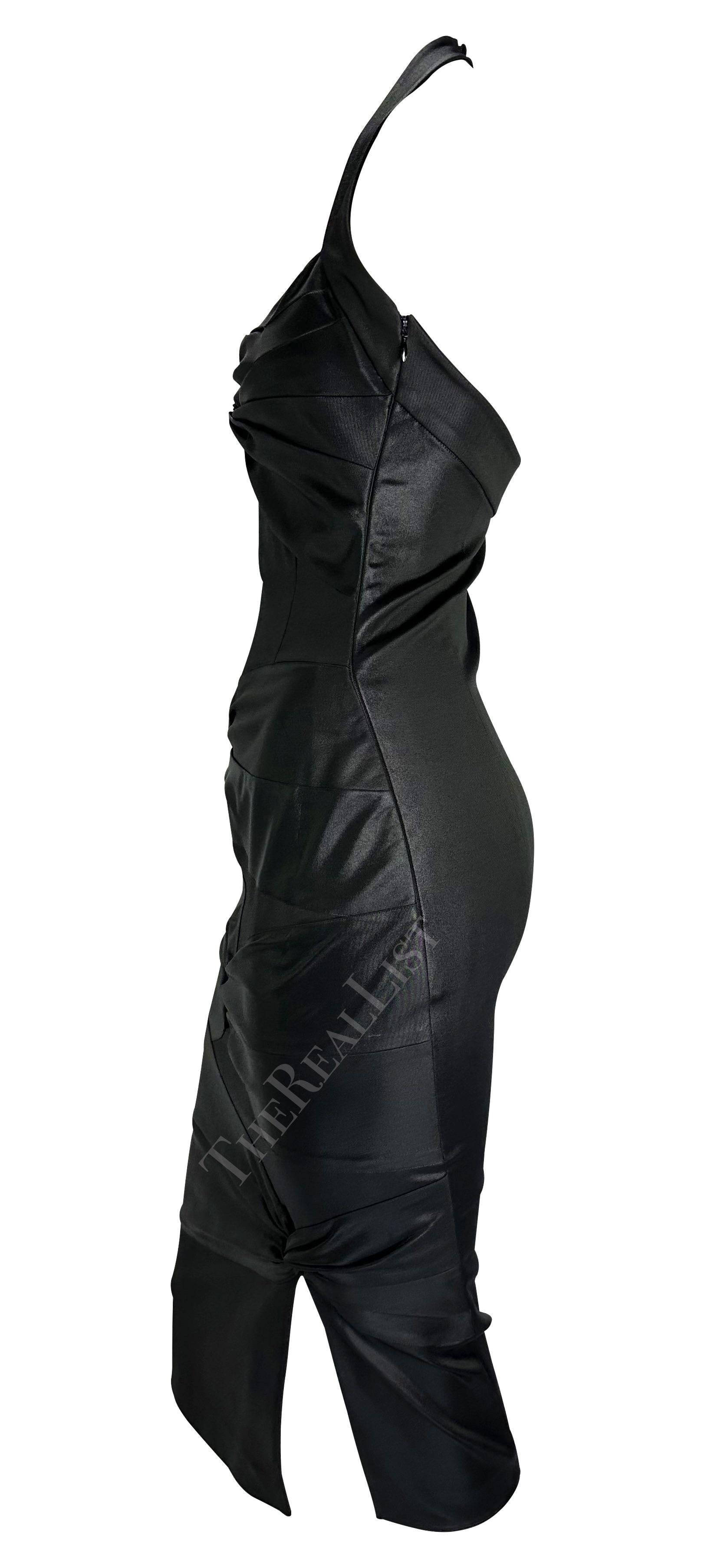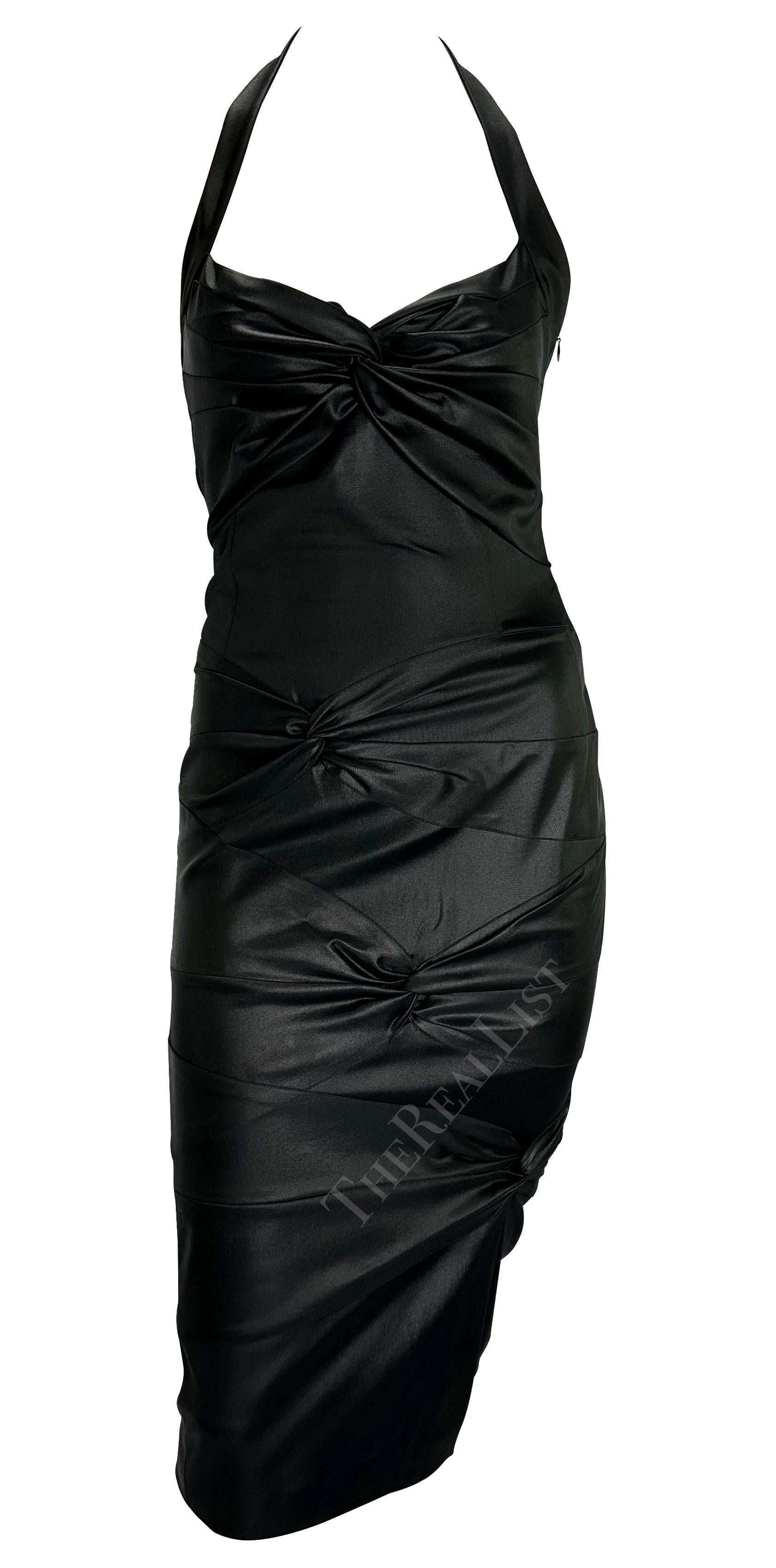 F/W 2003 Christian Dior by John Galliano Black Bodycon Stretch Knot Halter Dress