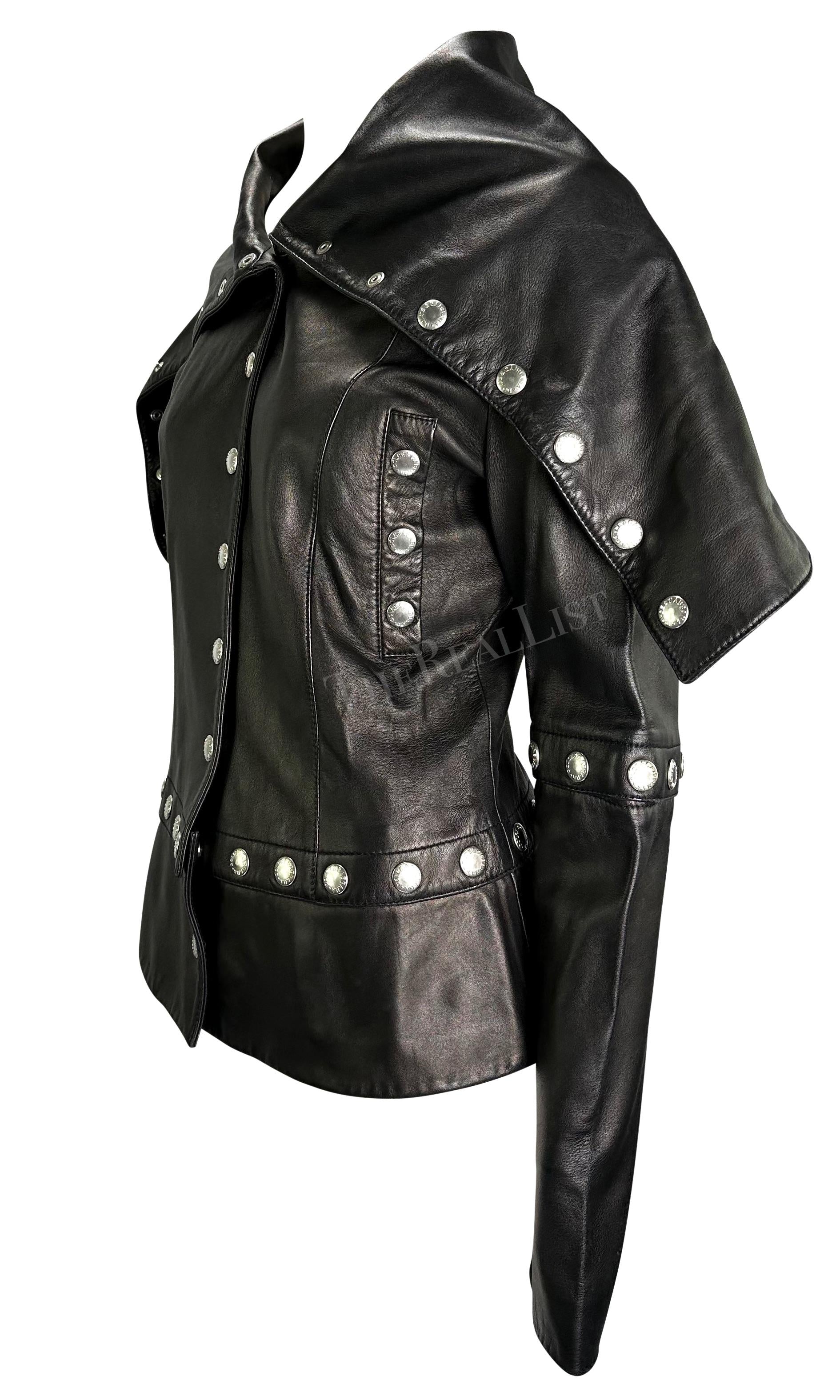 F/W 2003 Dolce & Gabbana Convertible Black Leather Logo Snap Jacket