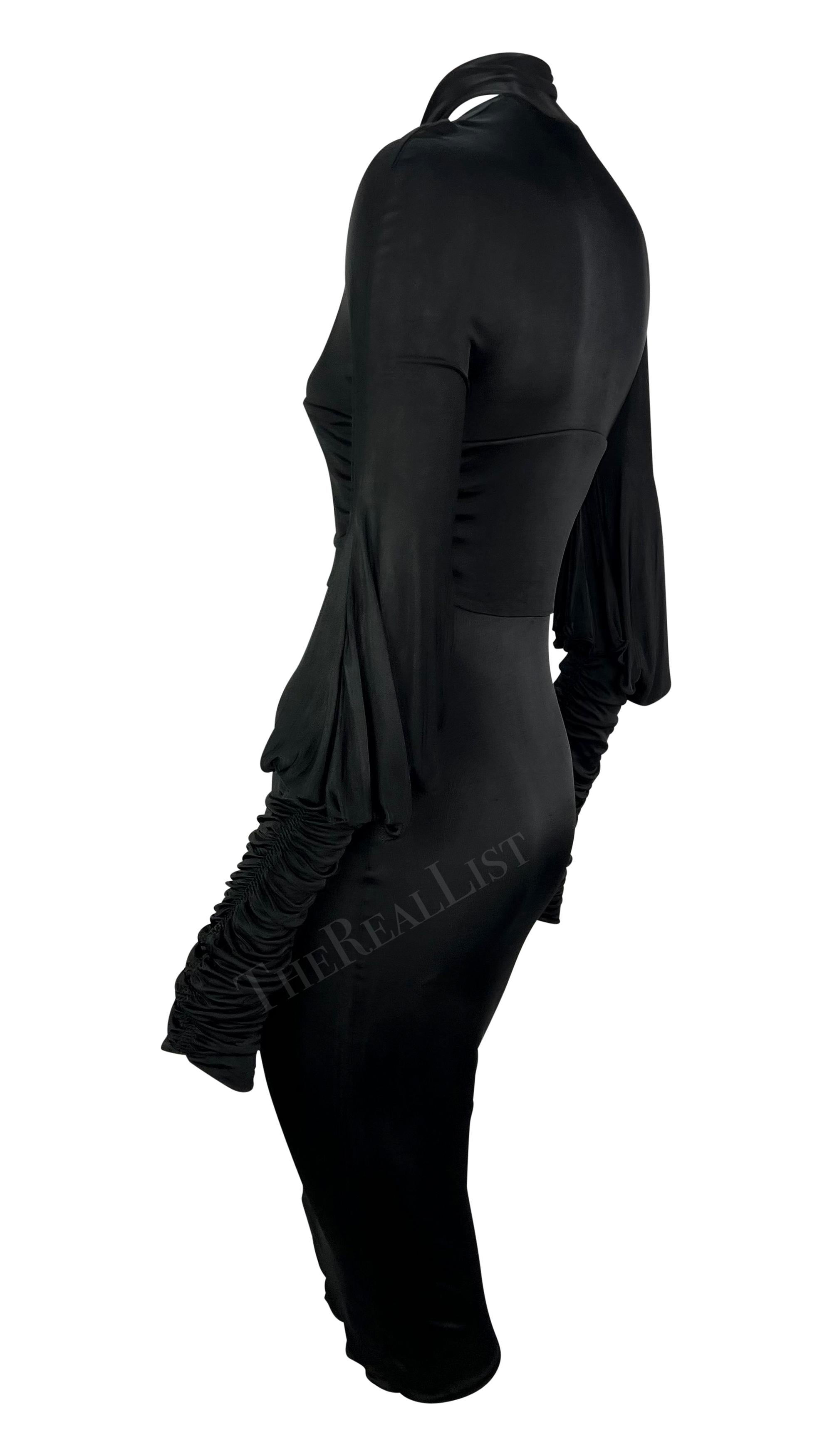 F/W 2003 Gucci by Tom Ford Black Slinky Ruched Long Sleeve Bodycon Dress