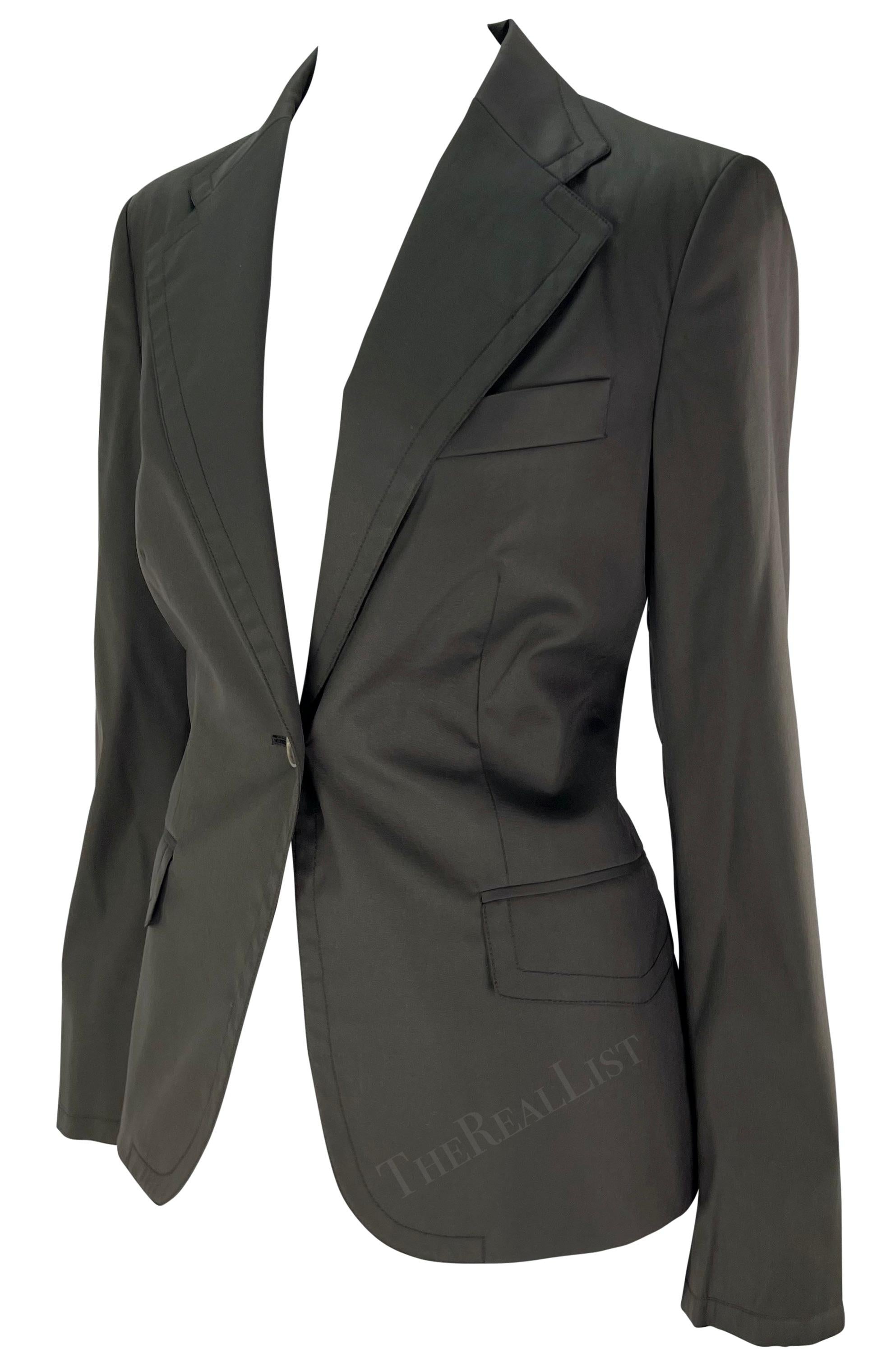 Presenting a beautiful dark green Gucci blazer, designed by Tom Ford. From the Fall/Winter 2003 collection, this fabulous jacket features a single button closure at the front and is the perfect chic addition to any wardrobe!