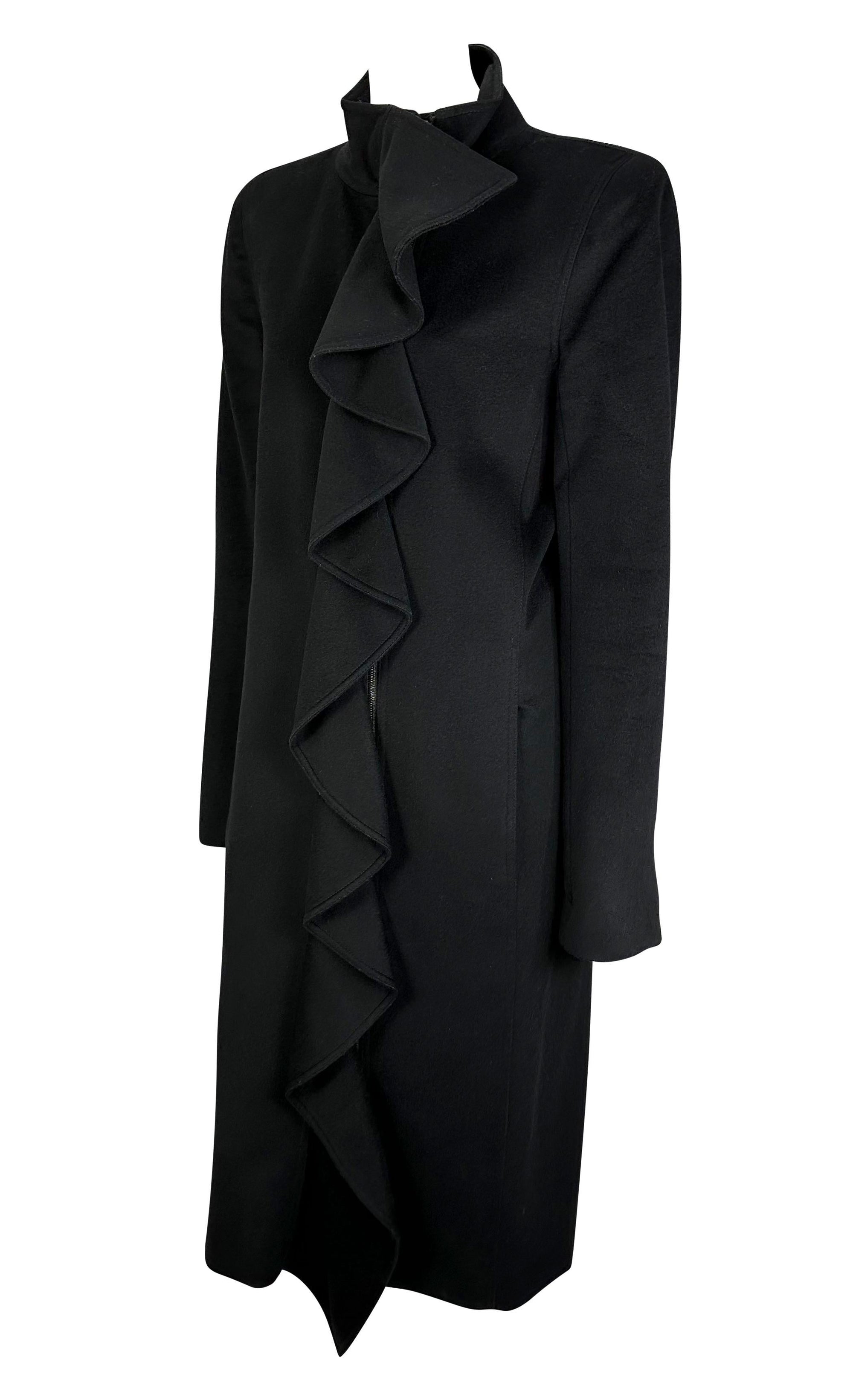 F/W 2003 Yves Saint Laurent by Tom Ford Runway Ruffle Overcoat Black
