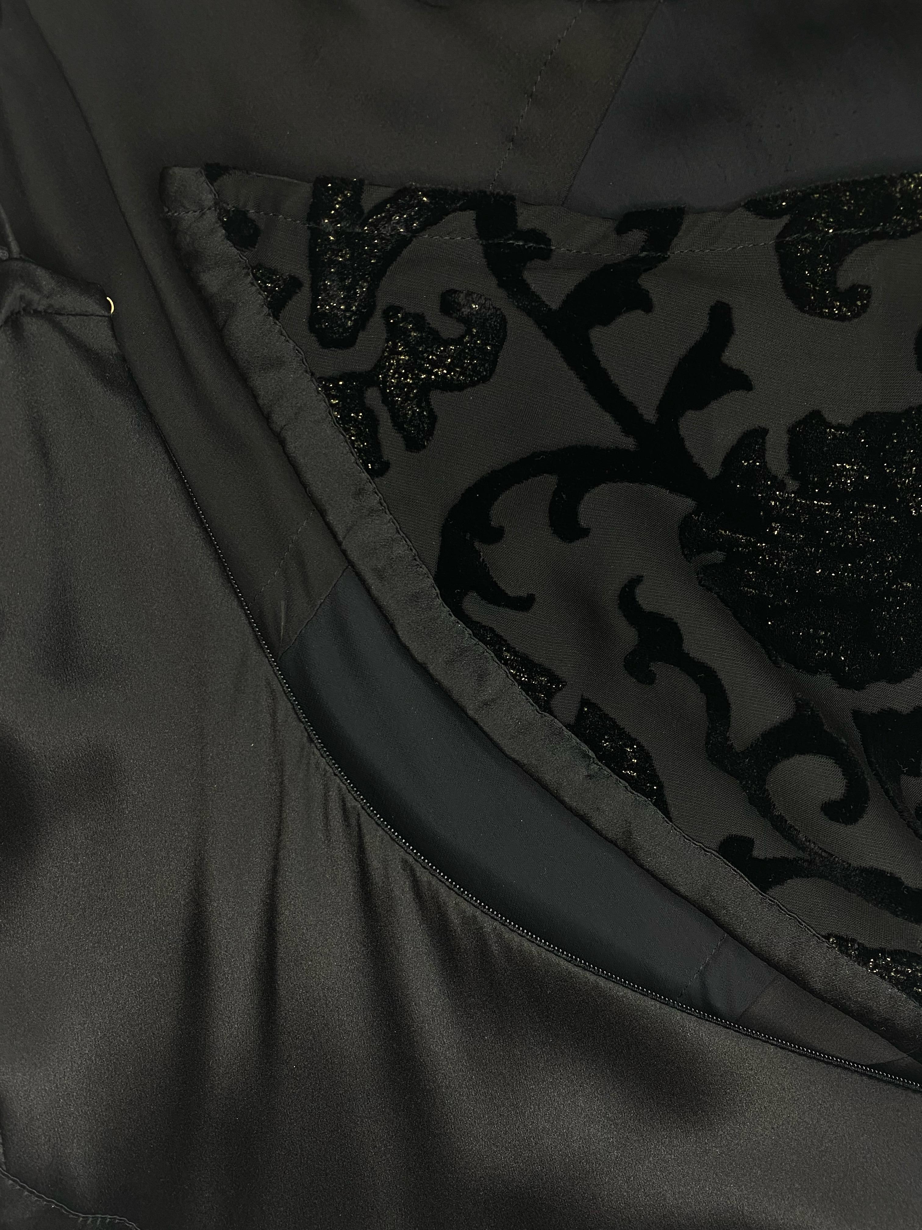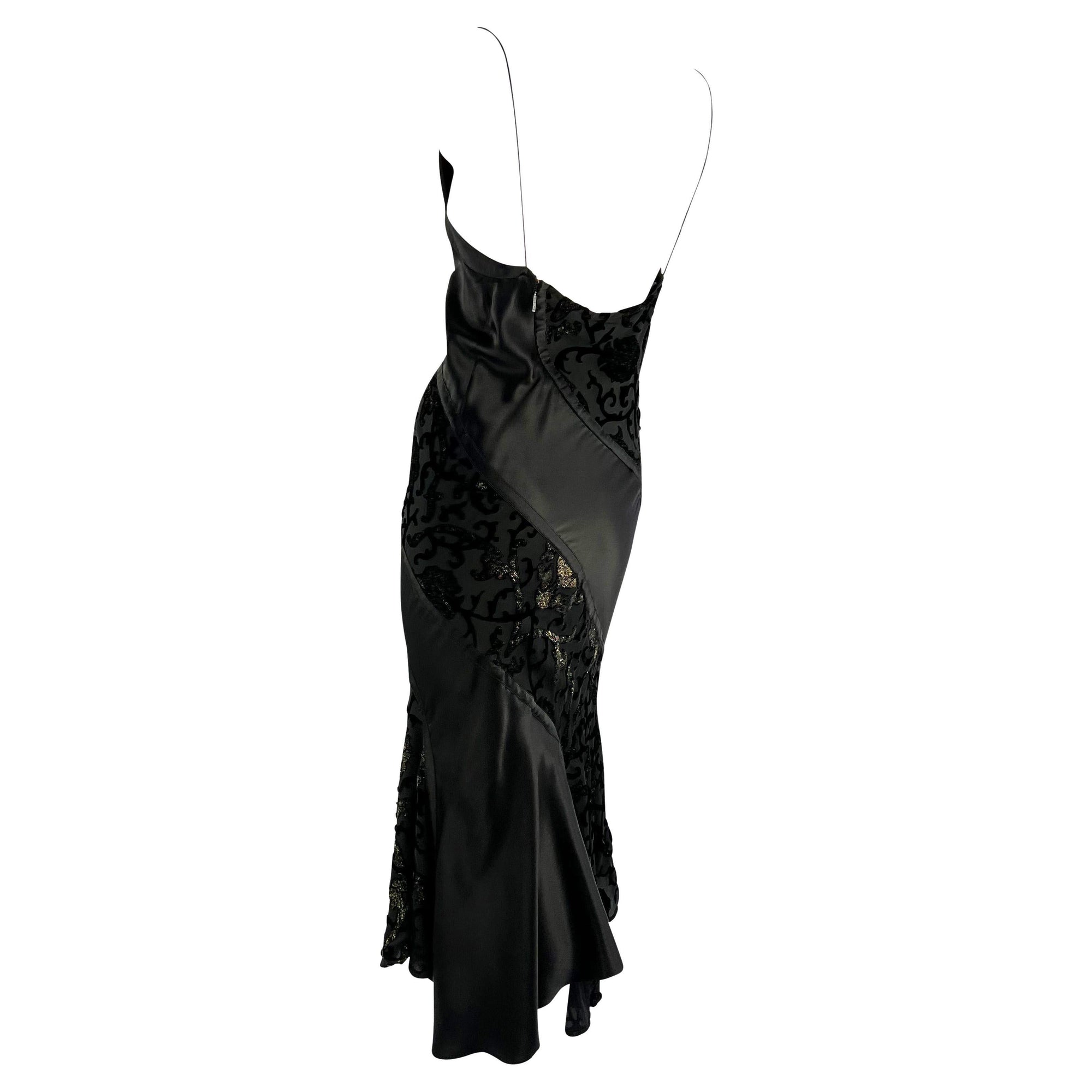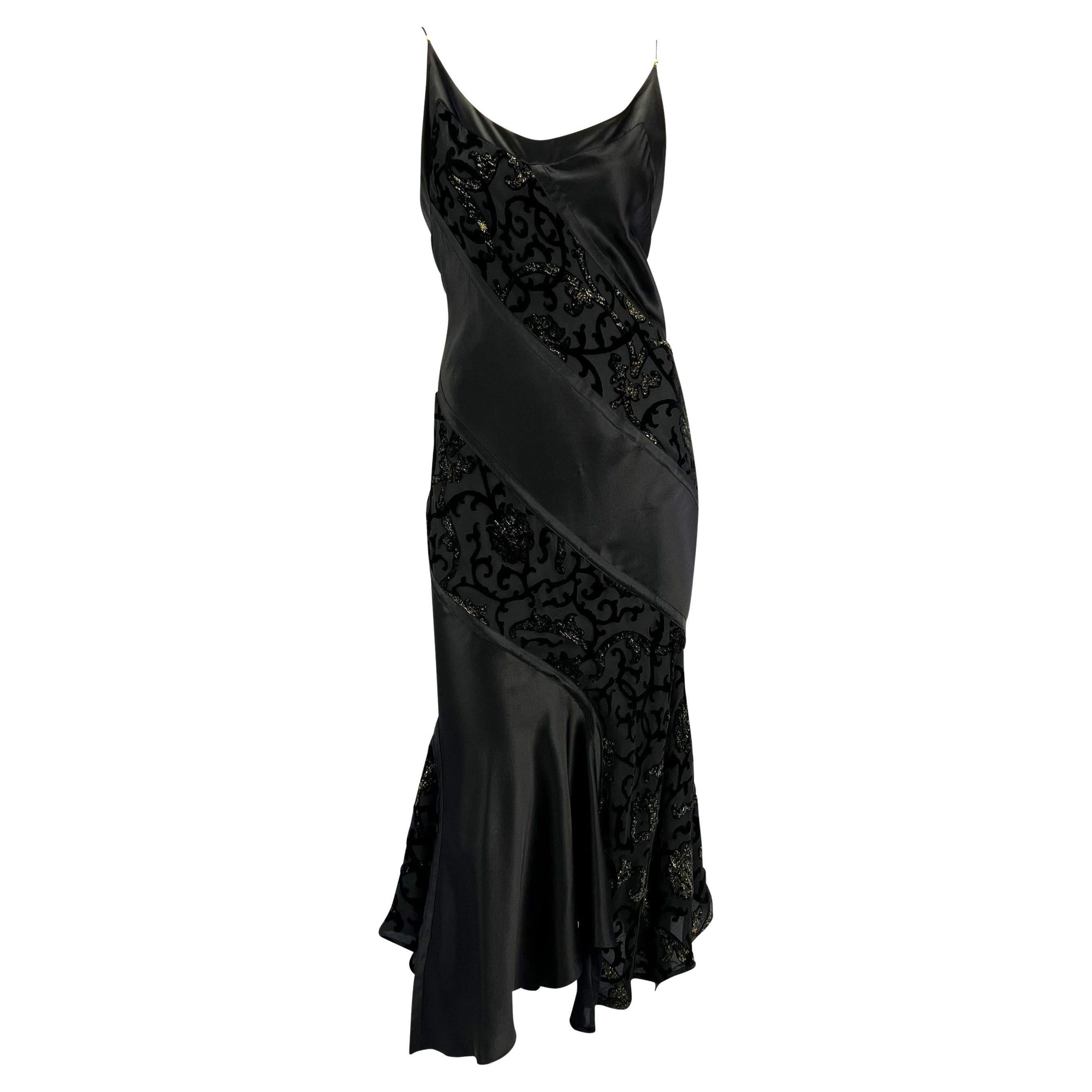 F/W 2004 Roberto Cavalli Black Velvet Satin Panel Flare Slip Dress