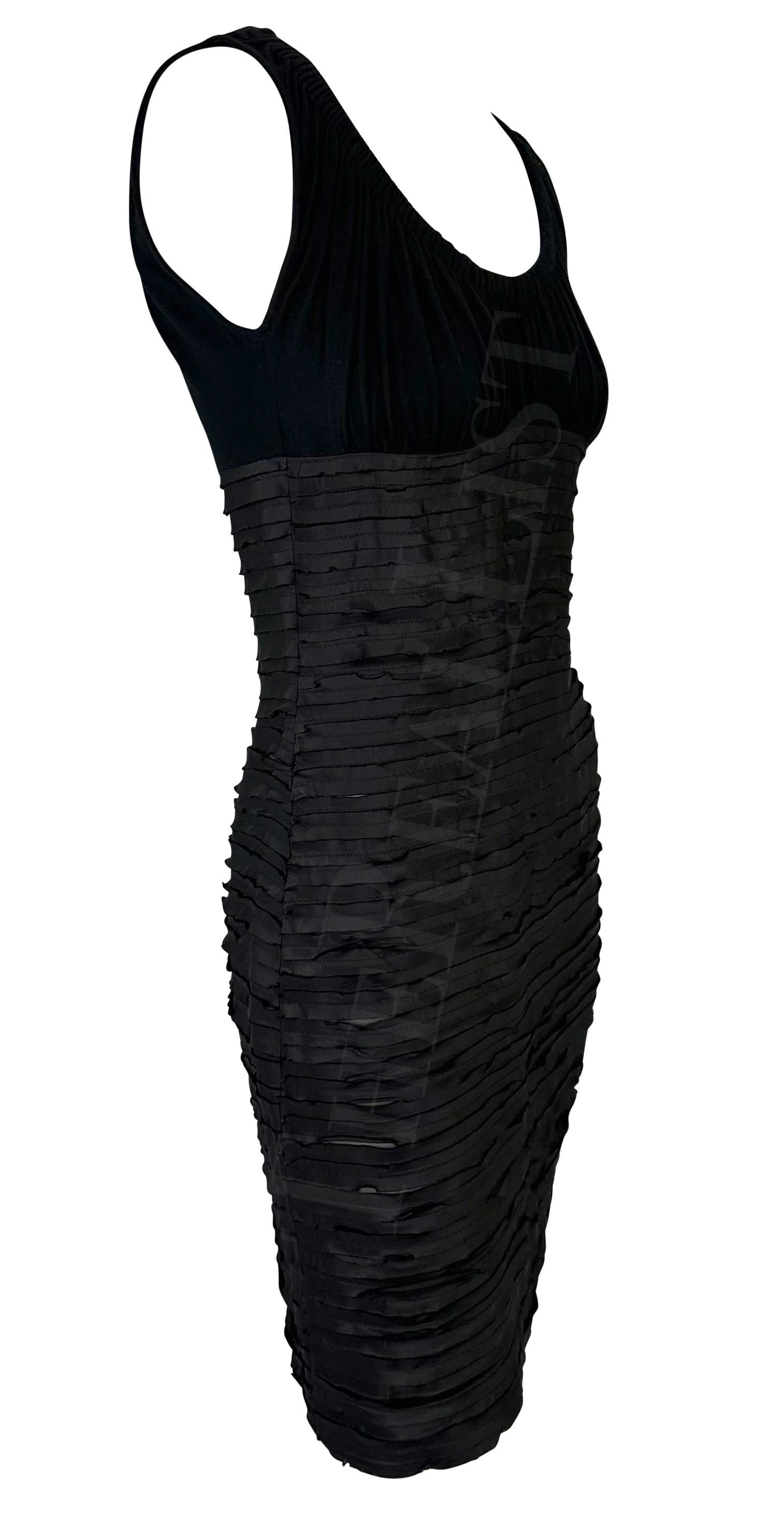 F/W 2005 Versace by Donatella Black Ruched Ribbon Bodycon Sheer Tube Dress