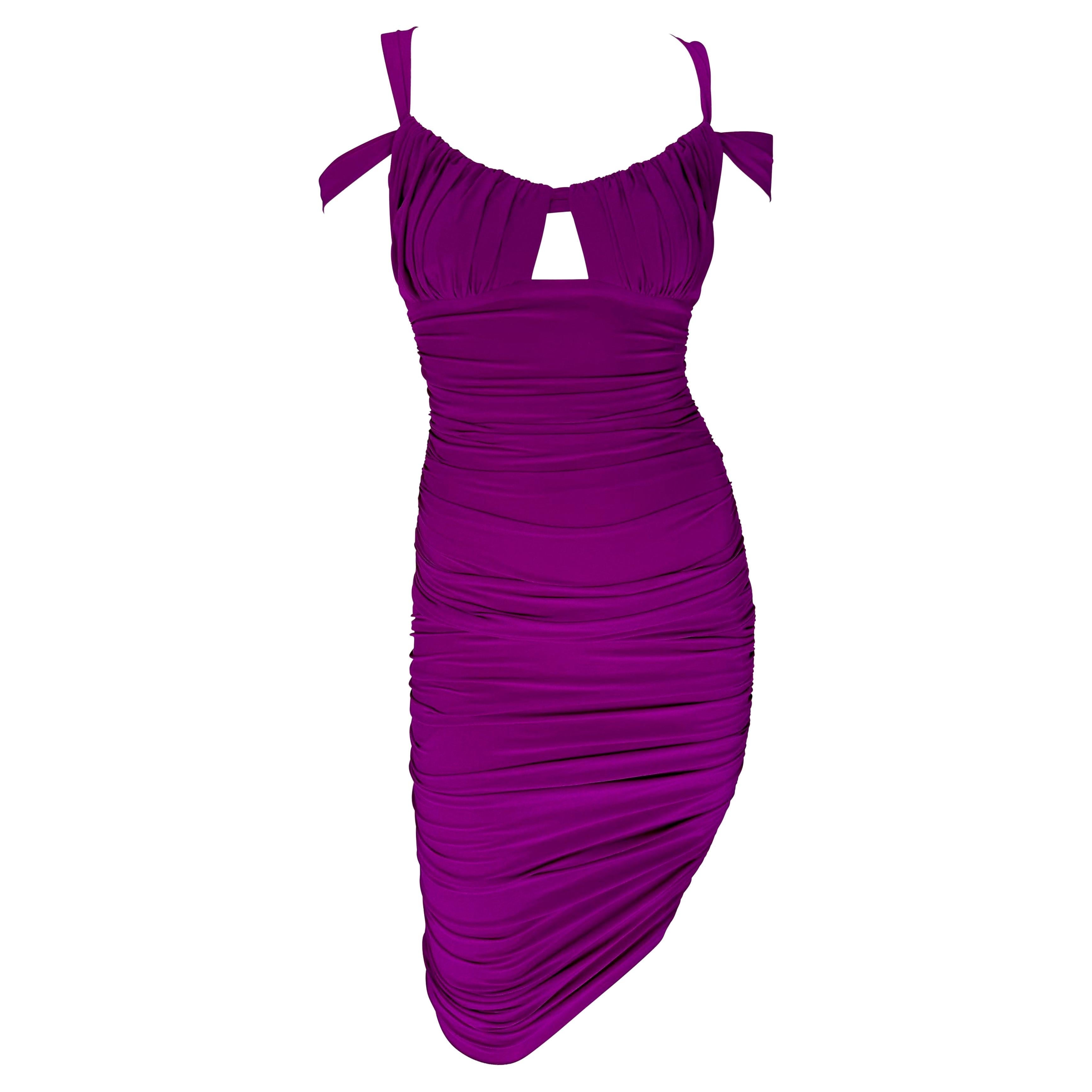 F/W 2005 Versace by Donatella Fuchsia Ruched Stretch Bodycon Strap Dress