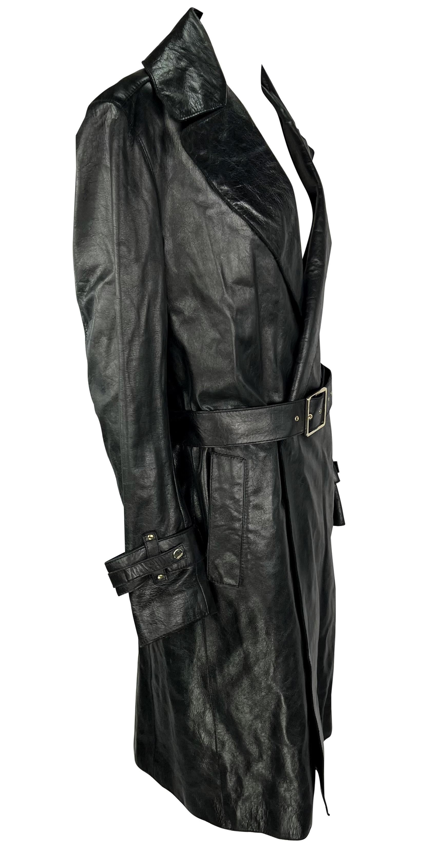 F/W 2005 Versace by Donatella Mens Runway Leather Raw Edge Belted Trench Coat