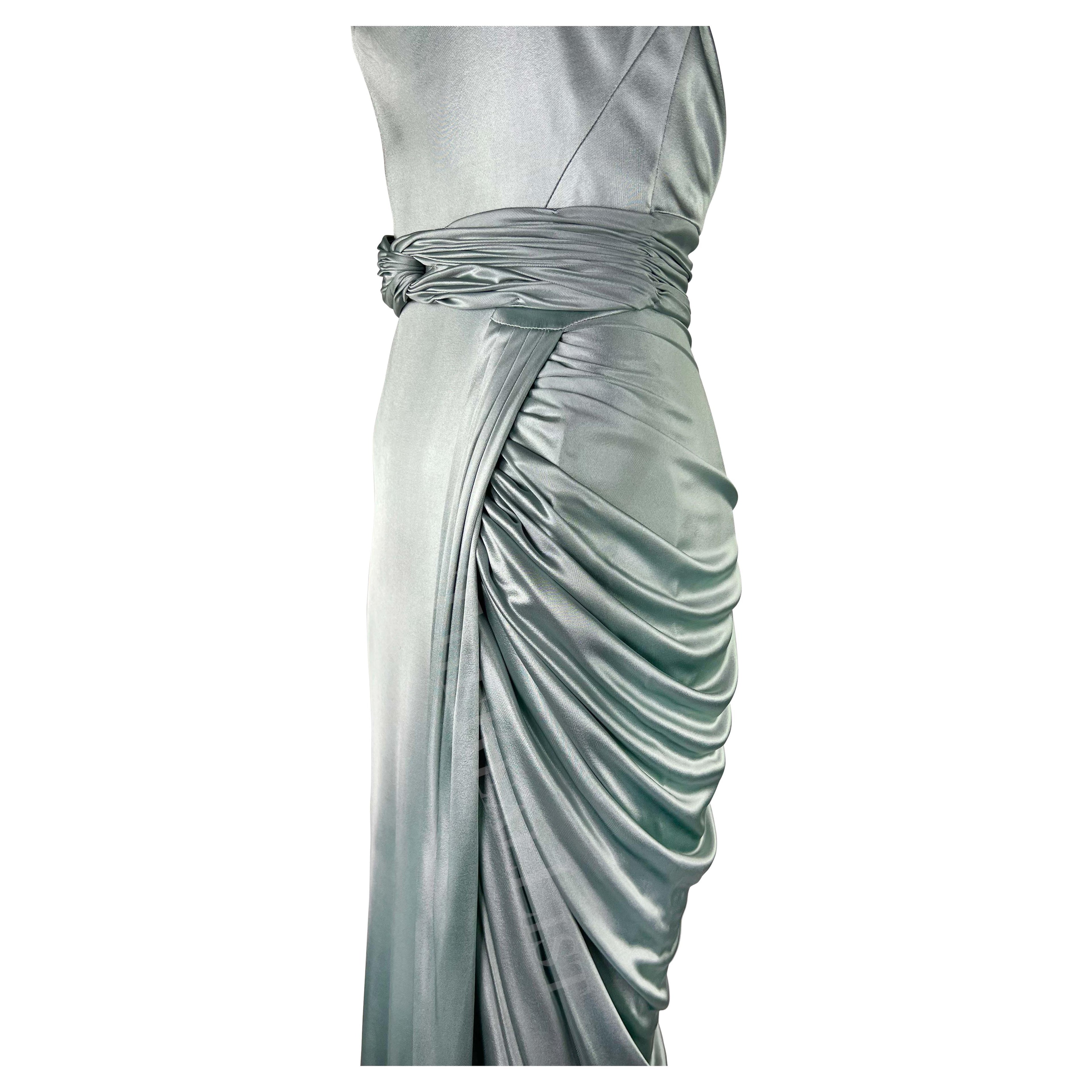 F/W 2006 Versace by Donatella Runway Ad Ruched Light Blue Stretch Slit Gown