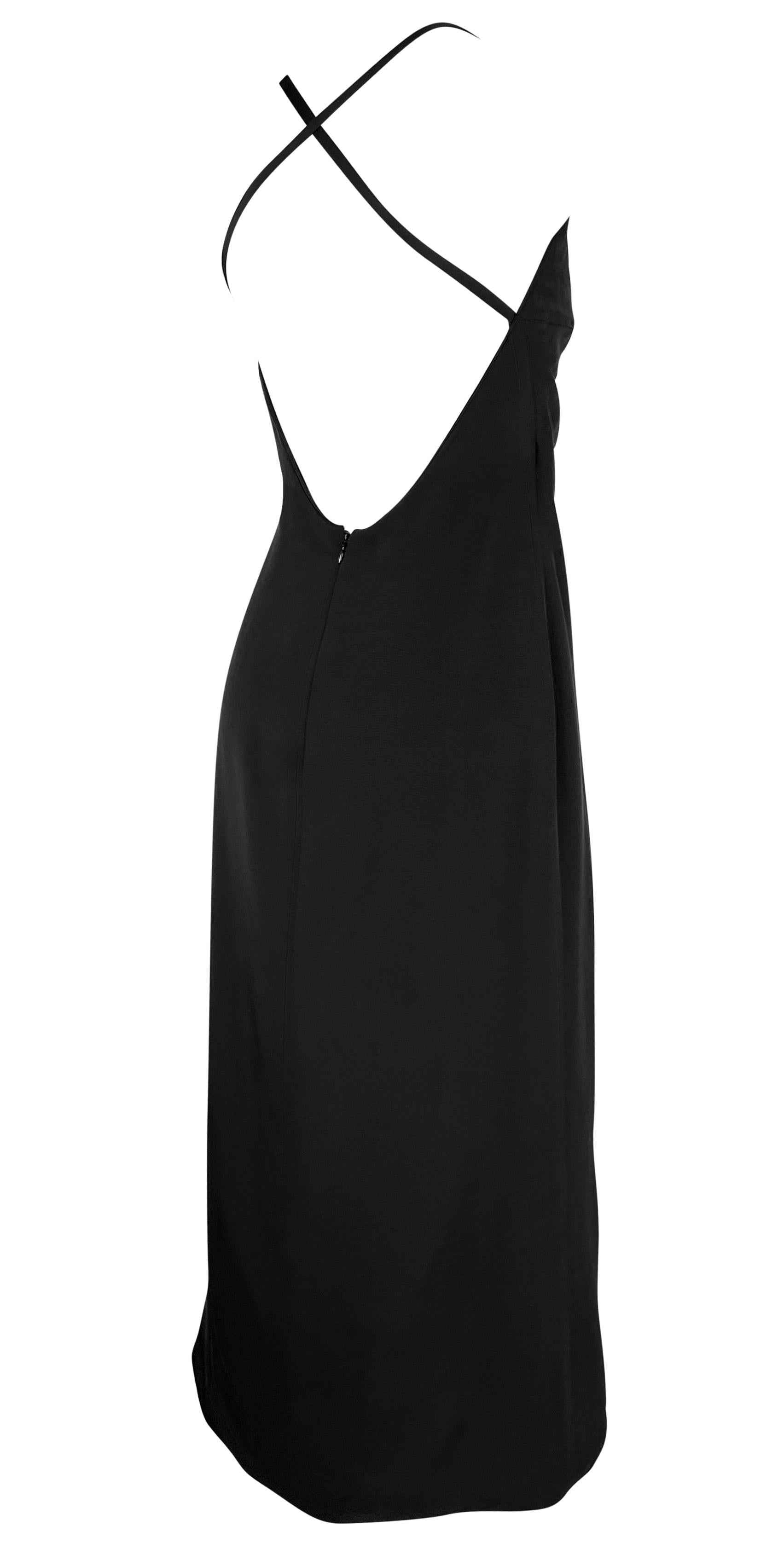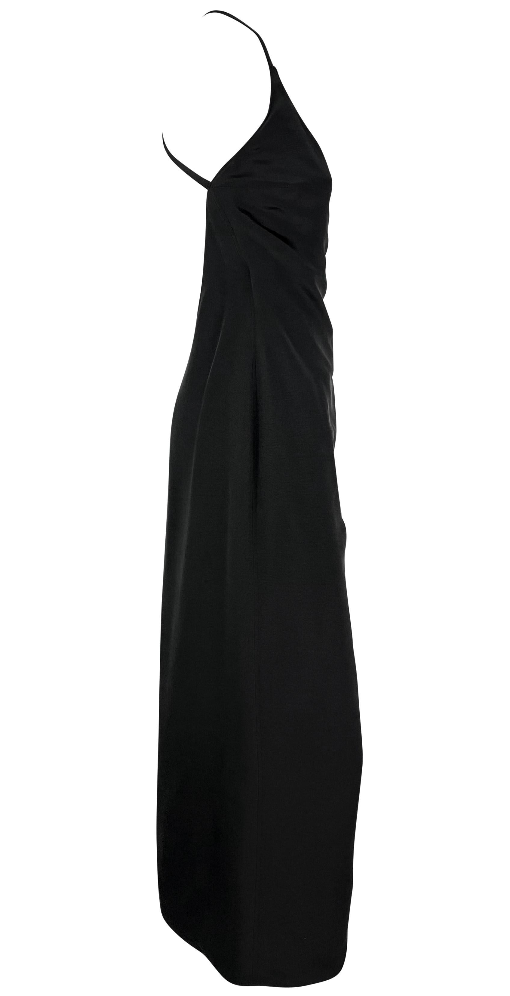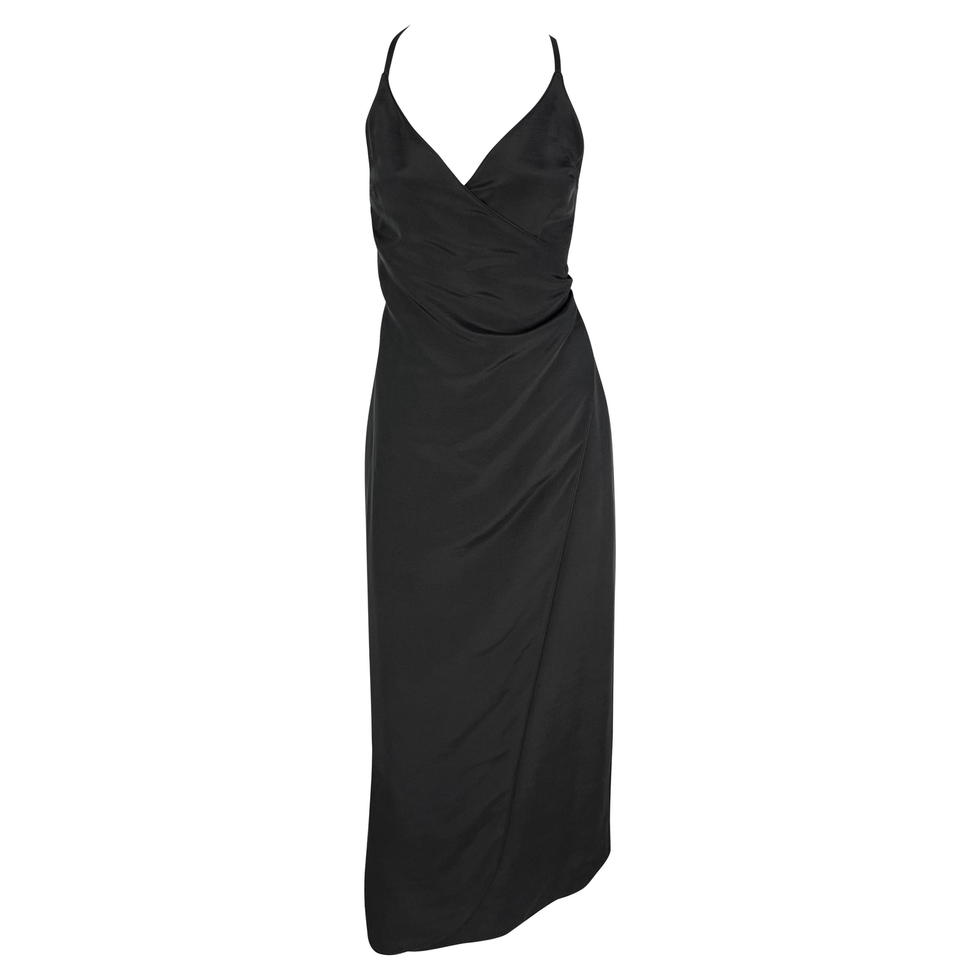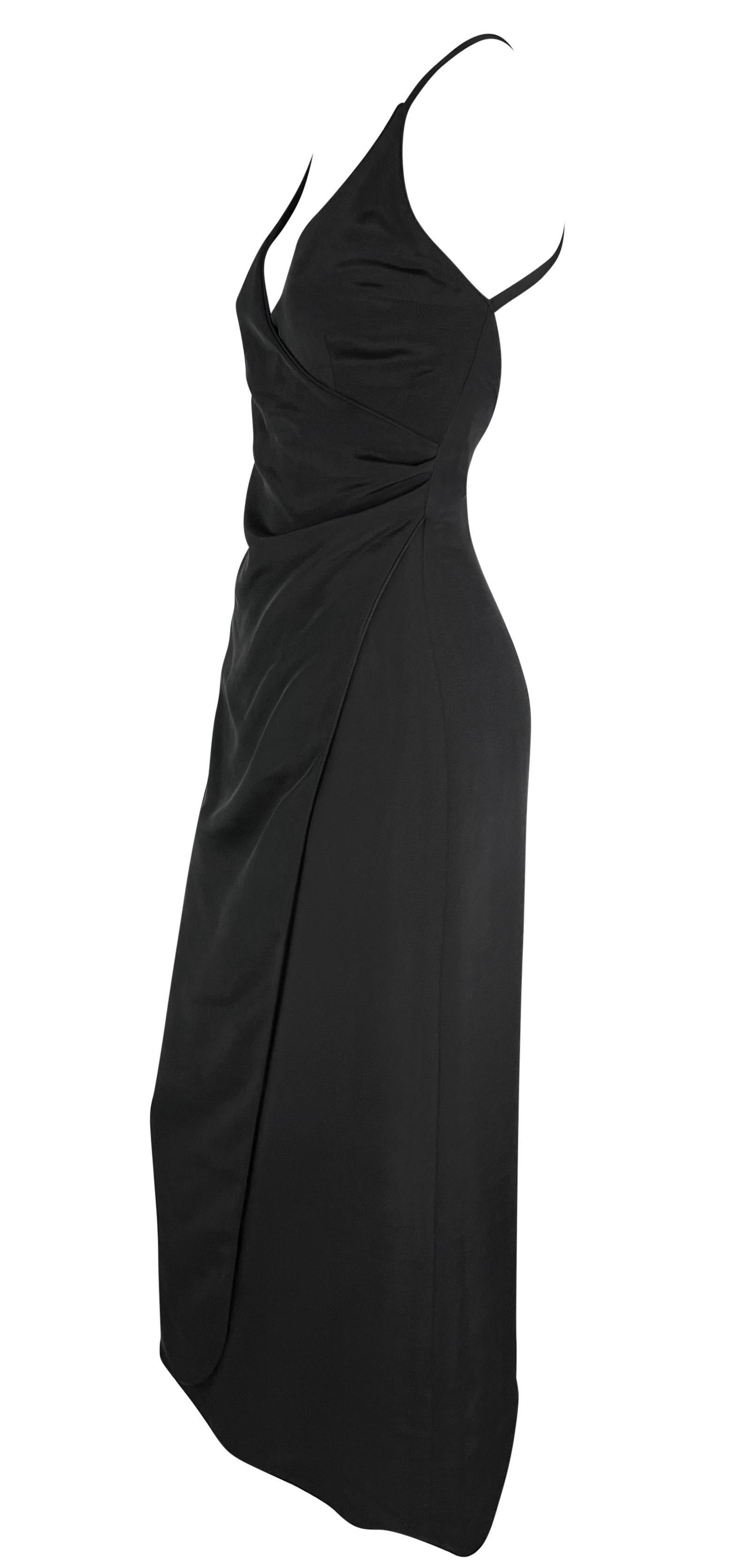 Late 1990s Giorgio Armani Backless Black Faux-Wrap High Slit Column Gown