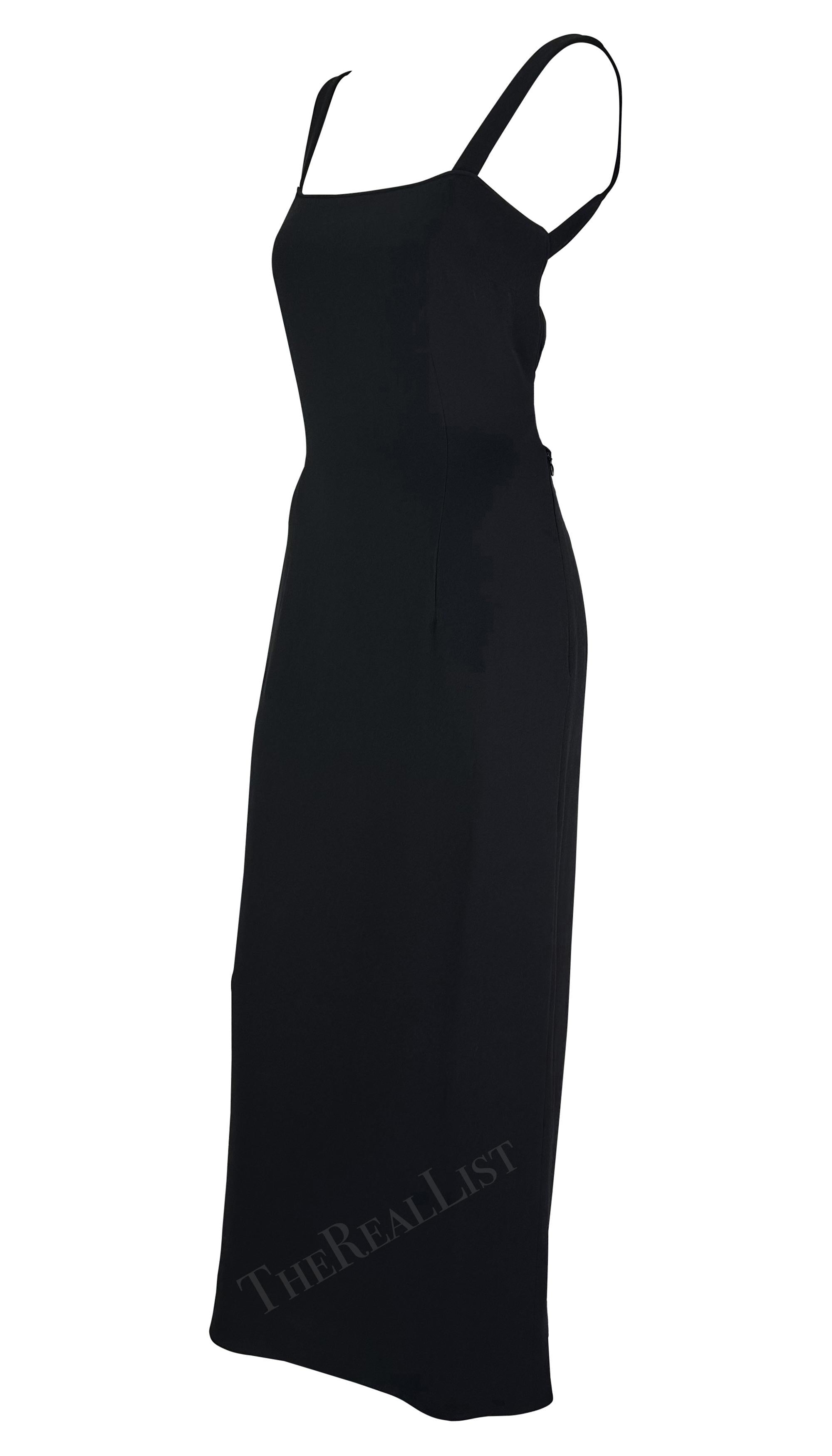 This black slip gown from Giorgio Armani’s Spring/Summer 1998 collection is a timeless archival piece. The design elevates the classic slip silhouette with delicate straps that frame an exposed back. A mini version debuted on the runway that season, highlighting Armani’s sleek and understated aesthetic. Effortlessly chic, this gown balances sex appeal with classic elegance, embodying the refined minimalism of late-1990s Armani.