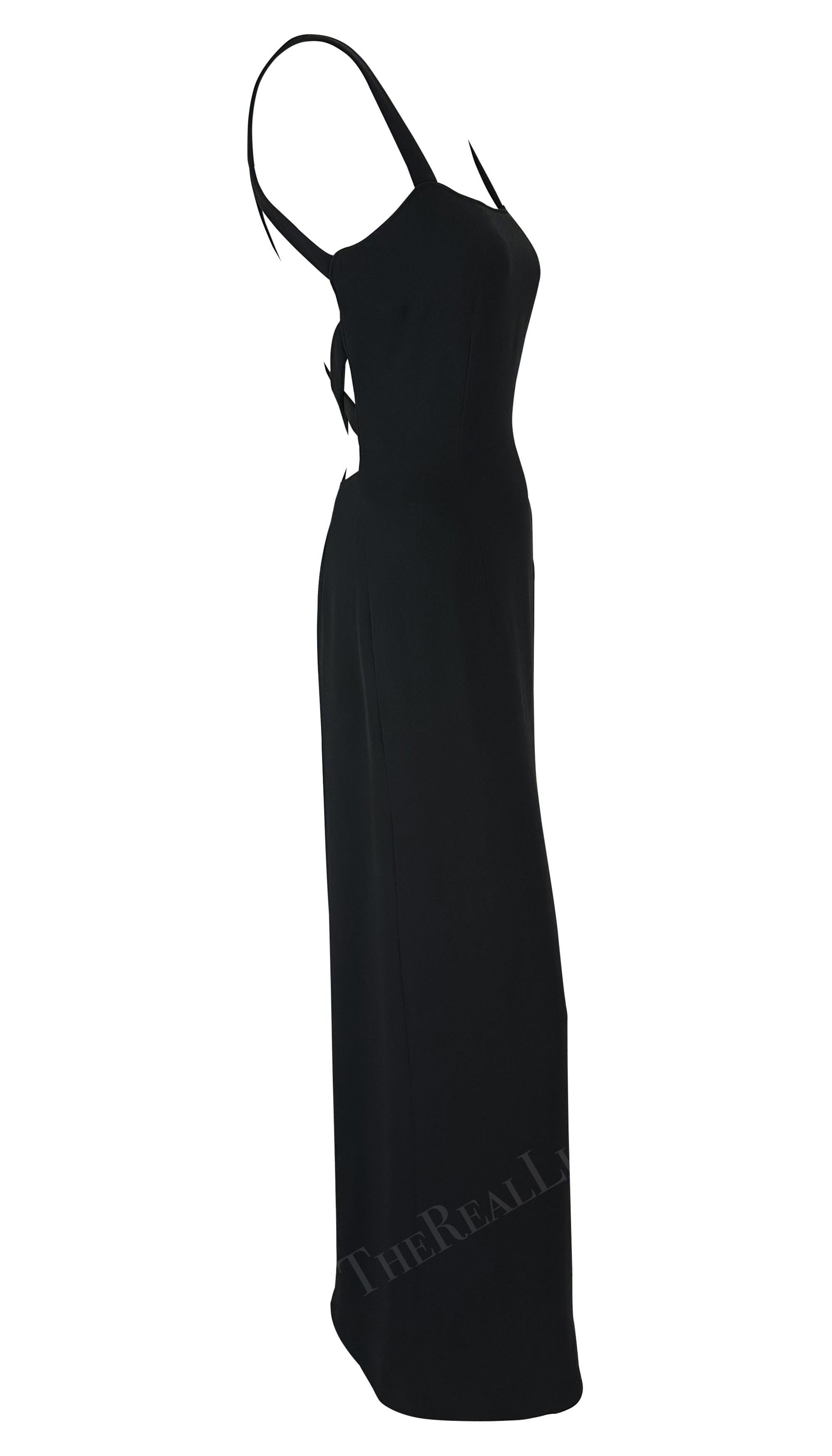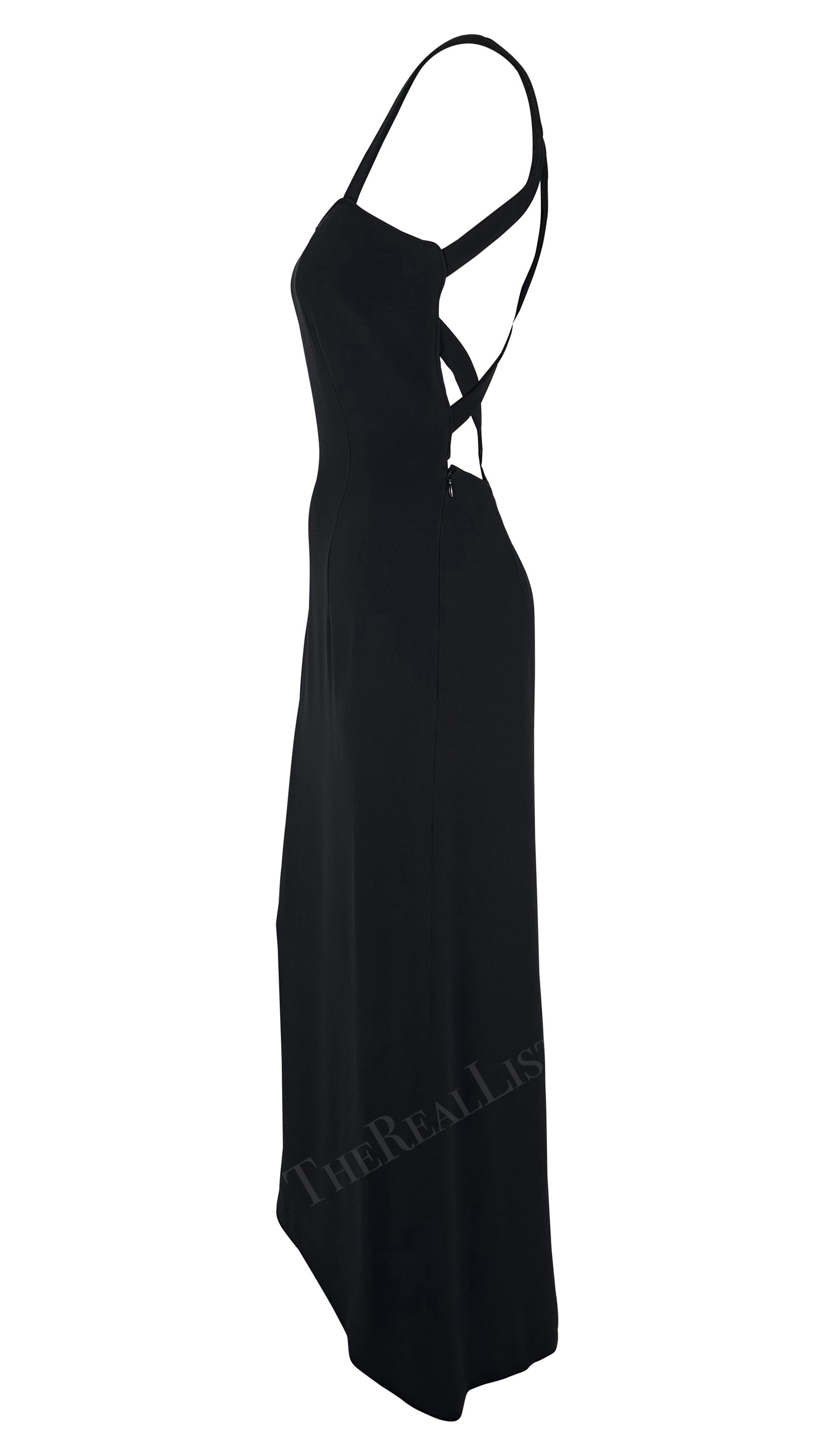 S/S 1998 Giorgio Armani Black Silk Backless Cage Strap Gown