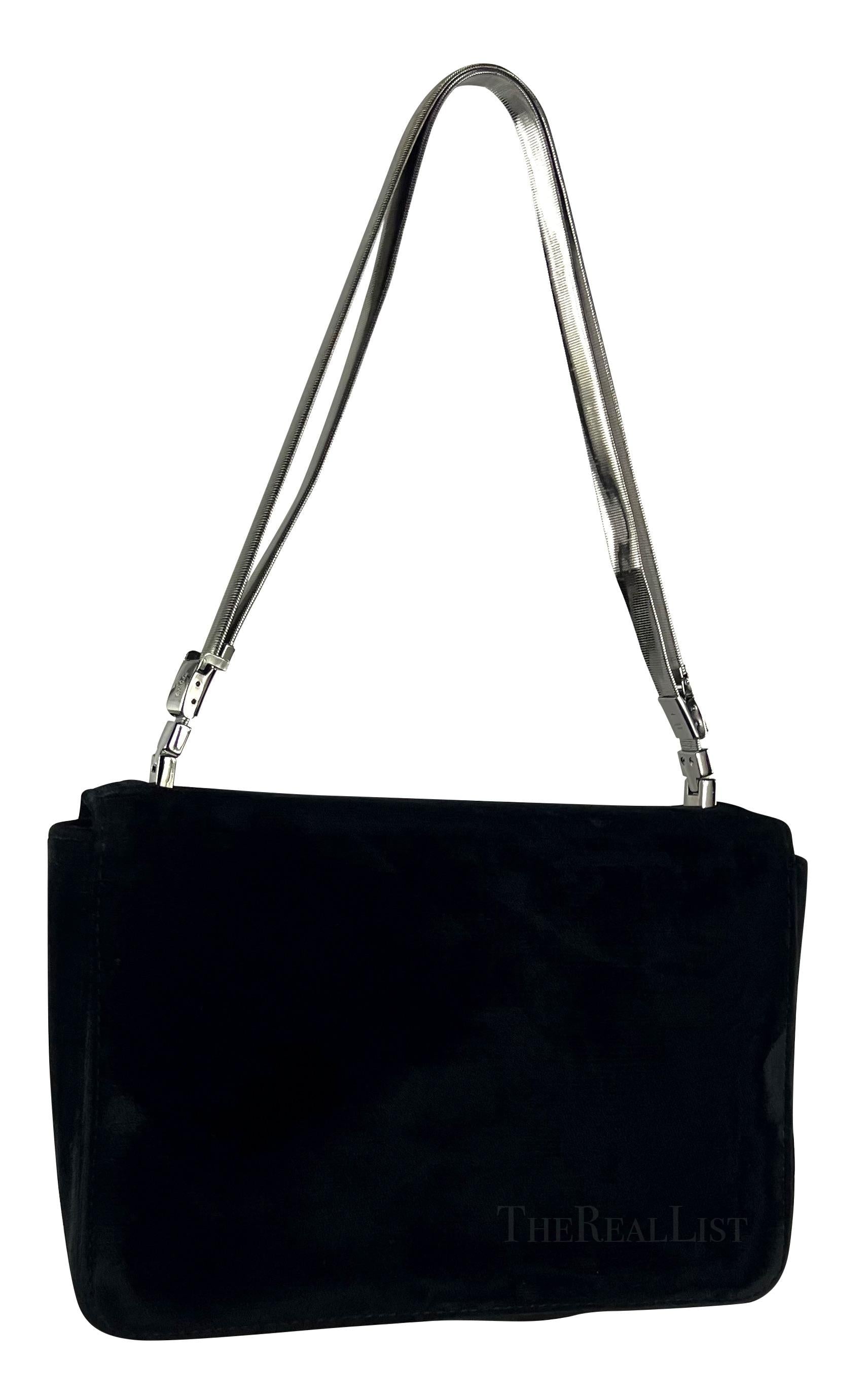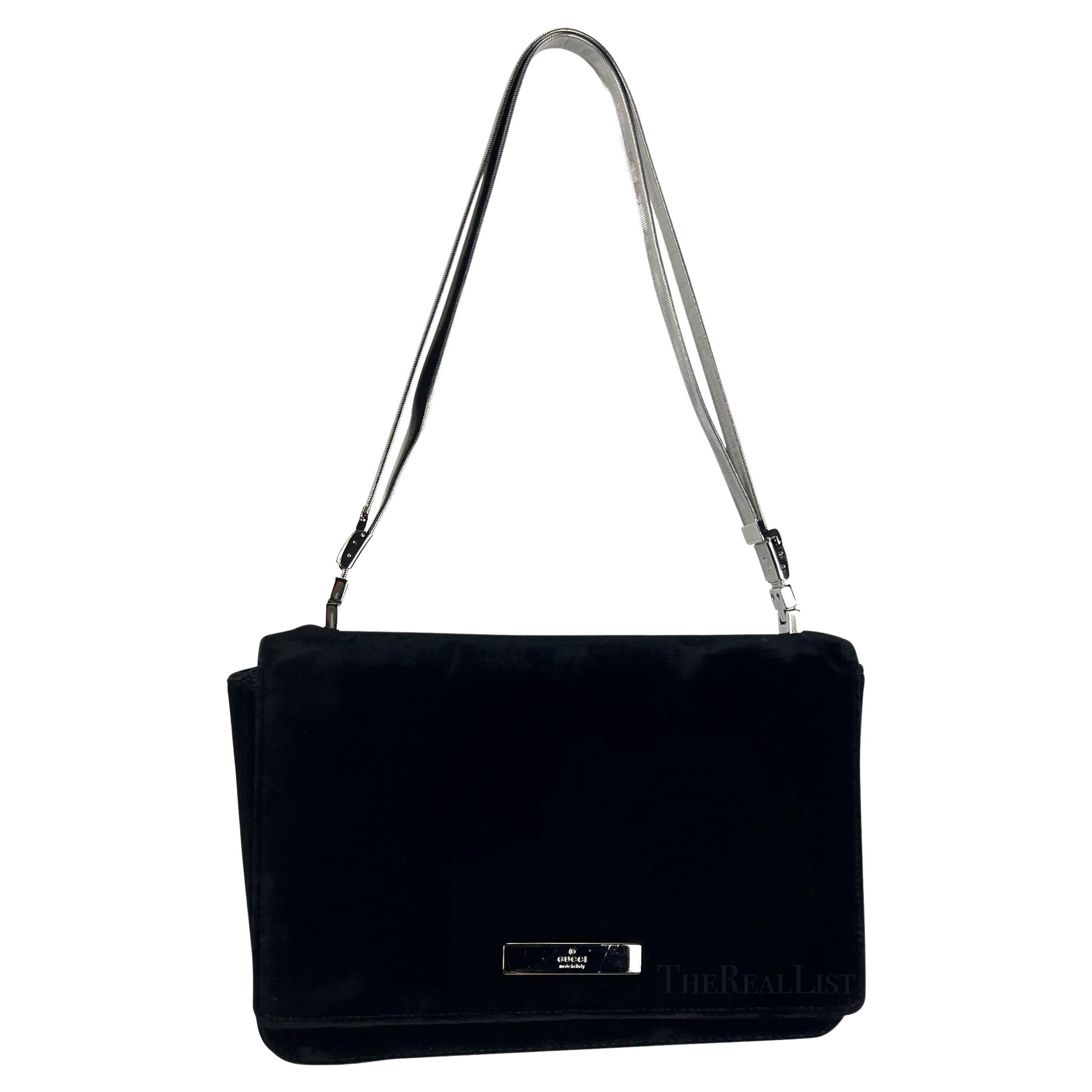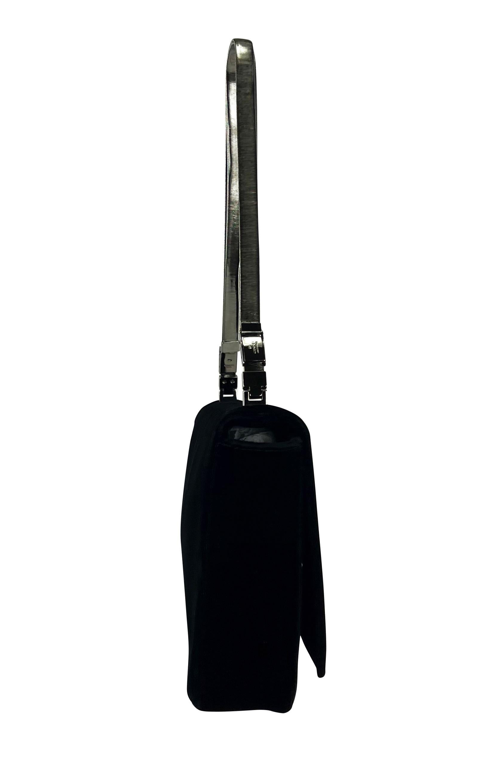 Late 1990s Gucci by Tom Ford Black Velvet Silver Chain Mini Shoulder Bag