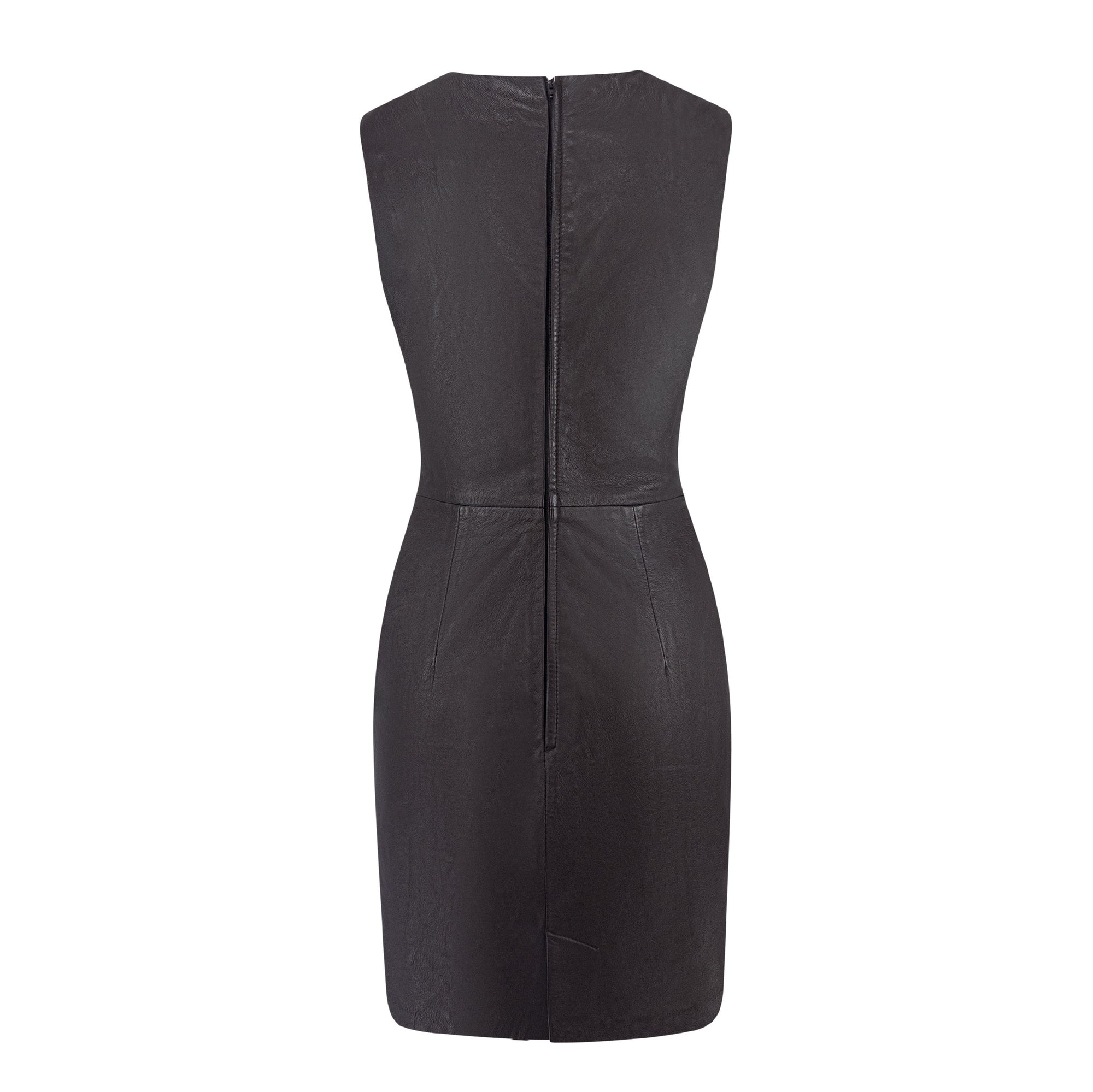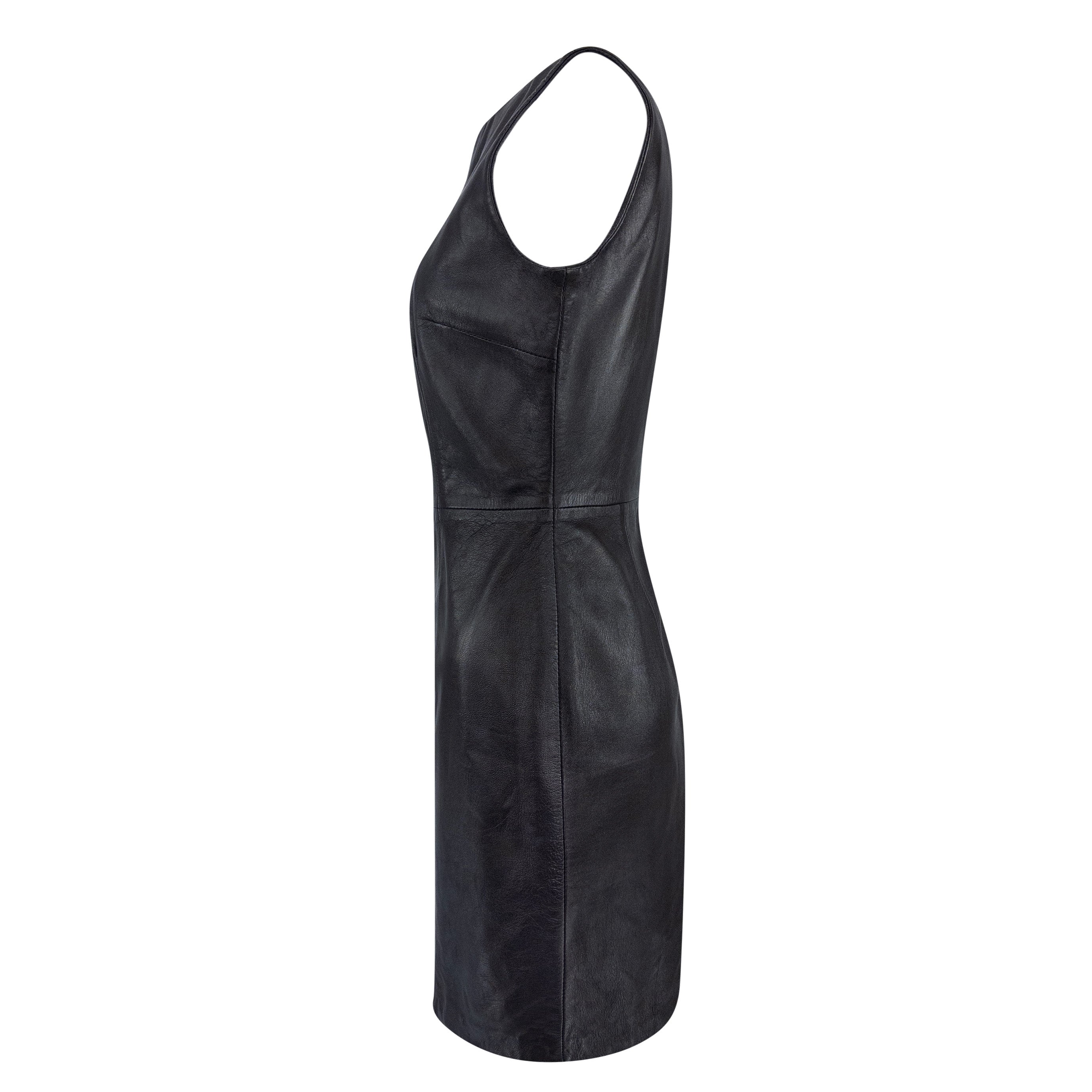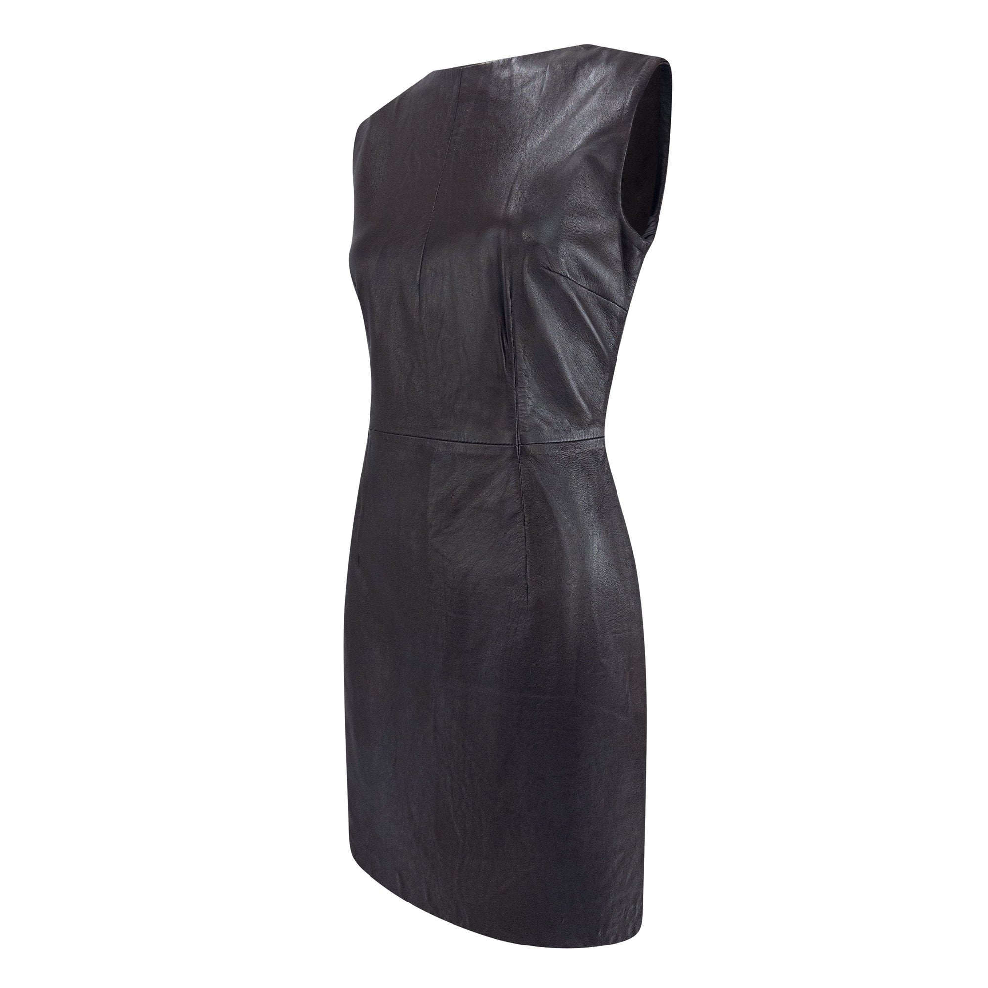 This Dolce & Gabbana dress from the mid-1990s is crafted in supple brown leather and cut to a minimalist, body-skimming silhouette. The sleeveless design features clean lines, a fitted waist, and a concealed back zipper.