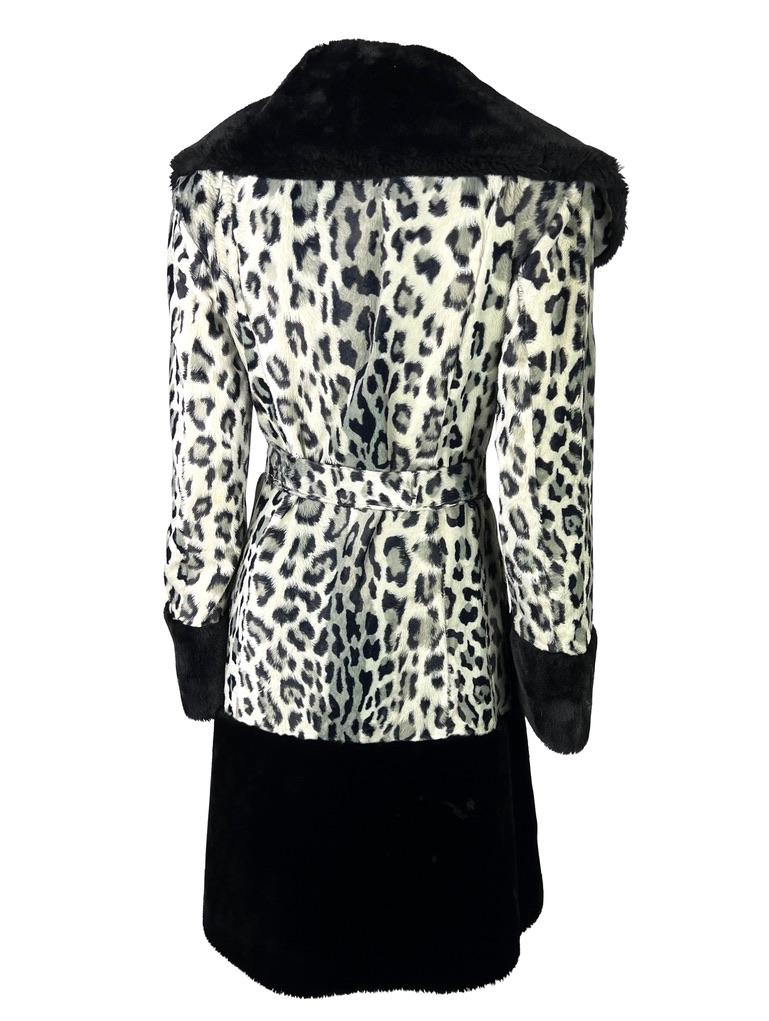 Mid 1990s Dolce & Gabbana White Leopard Print Black Faux Fur Wrap Coat