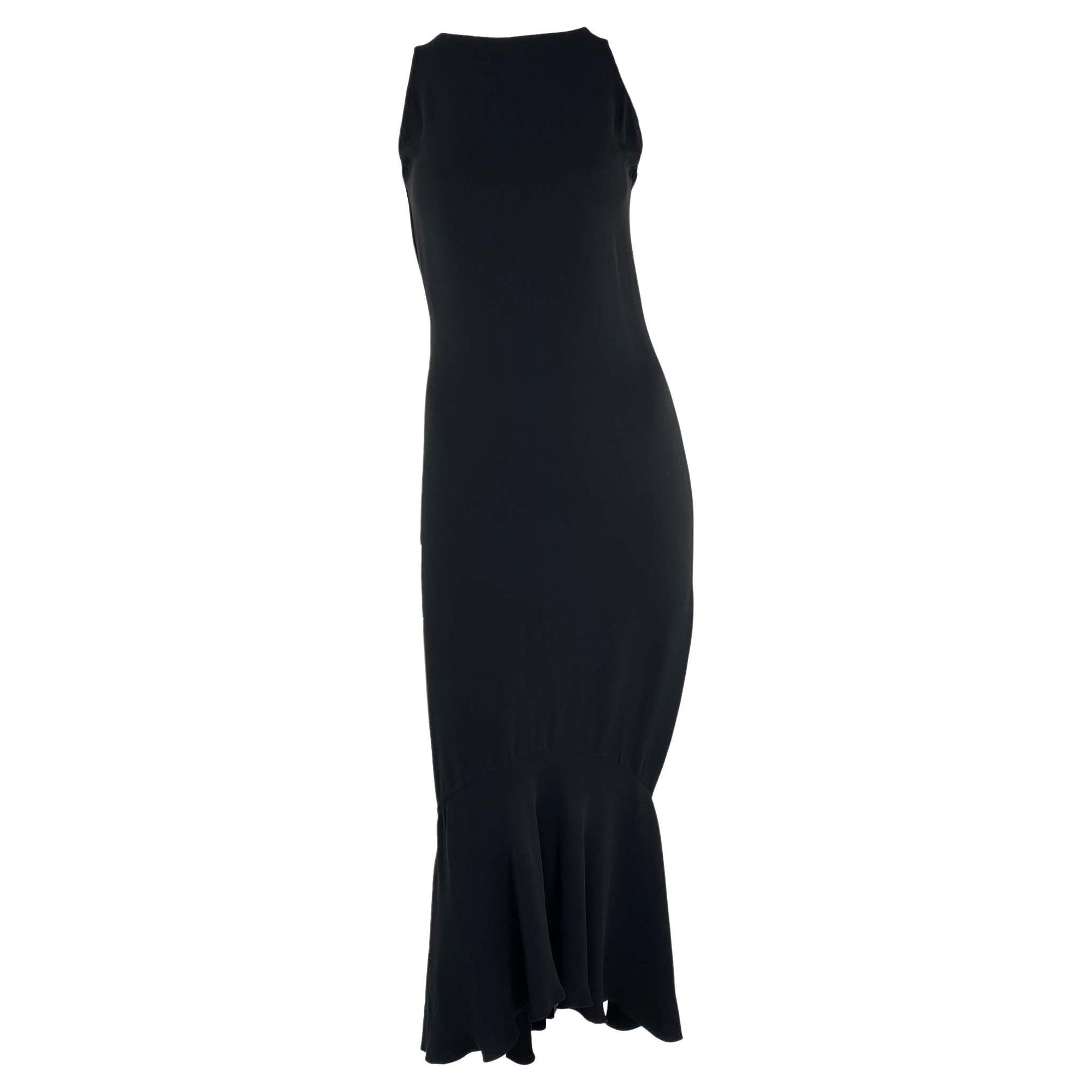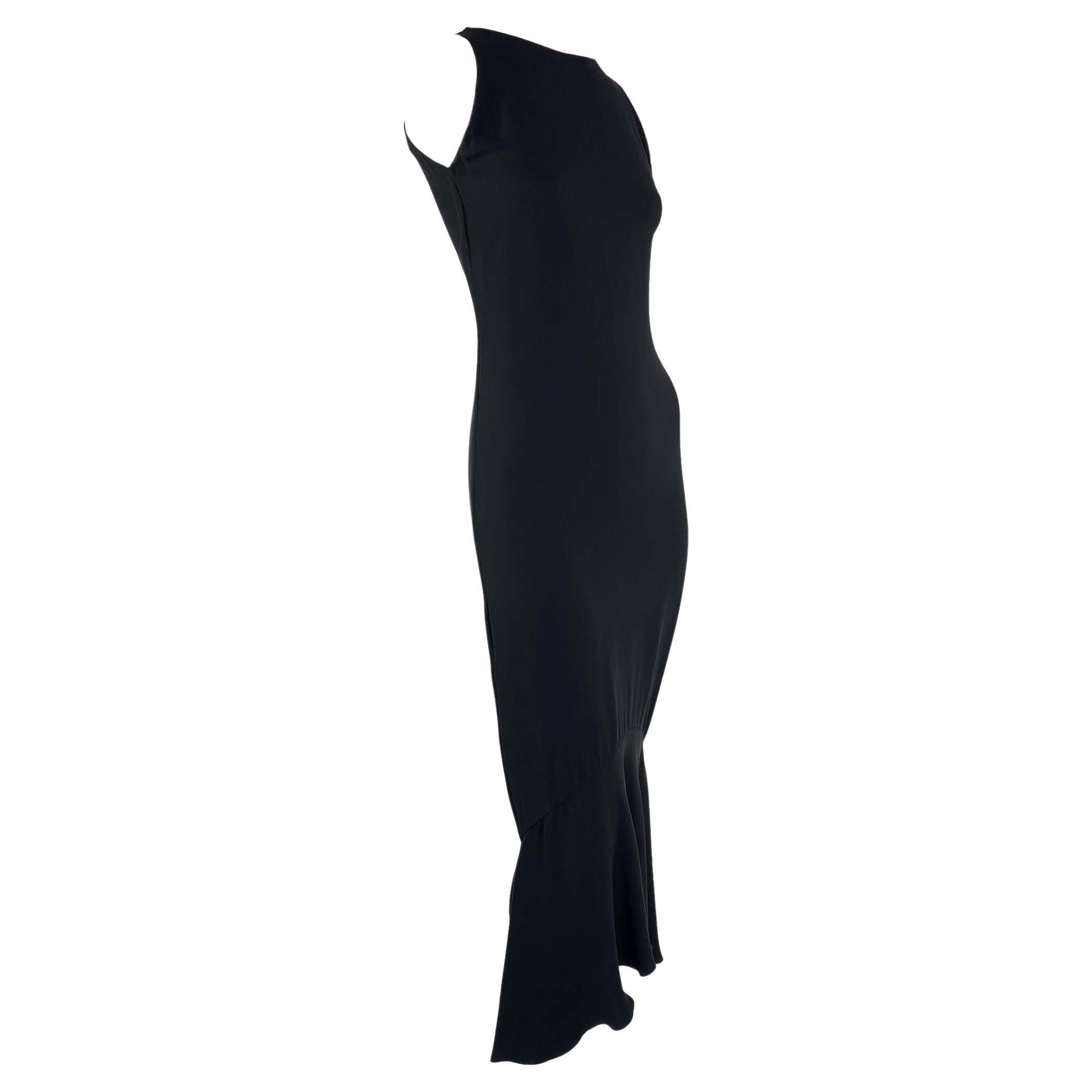 Mid-Late 1990s Gianni Versace Couture Black Dropped Hem Bias-Cut Wiggle Gown LBD