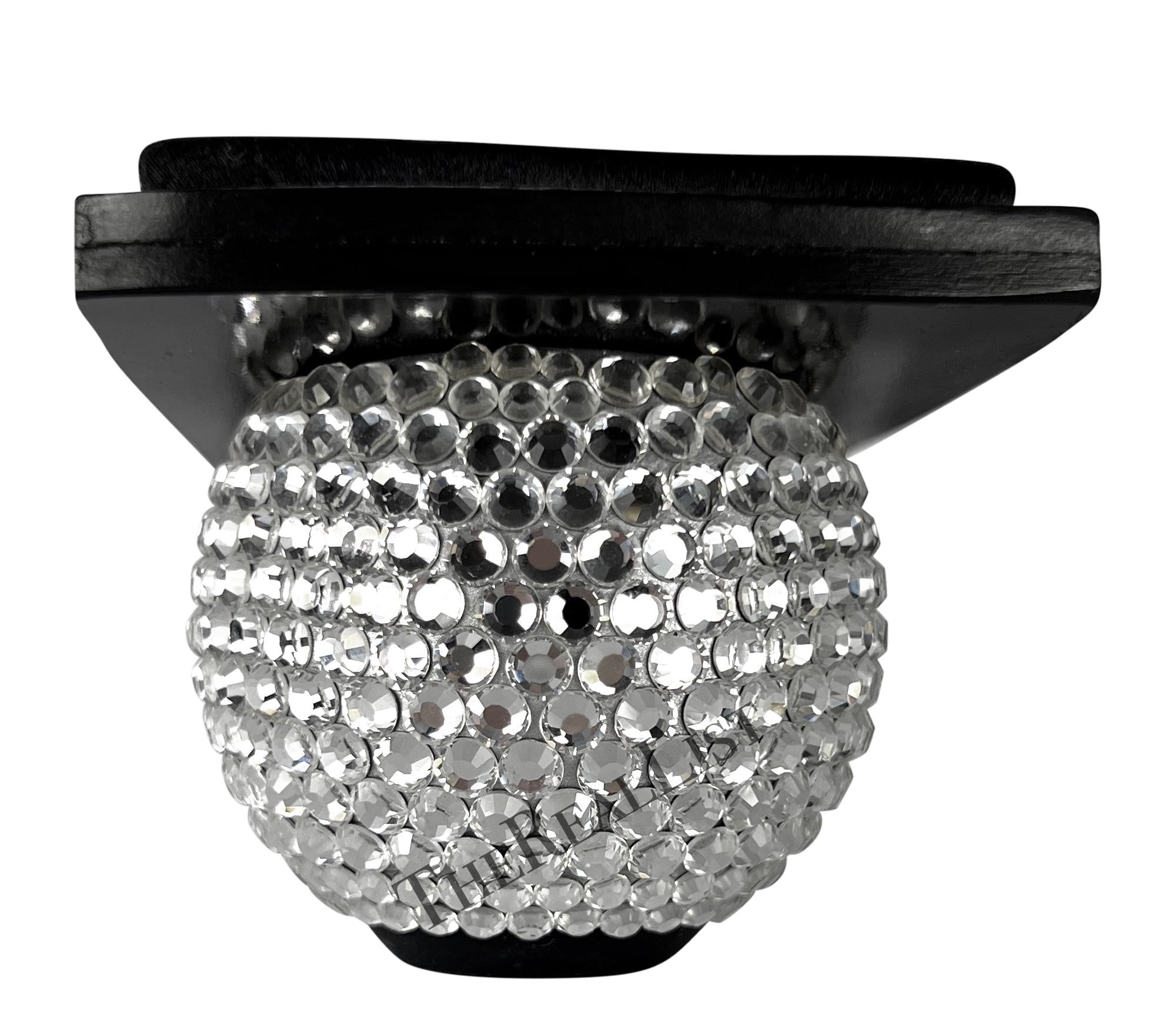Presenting a pair of black satin Yves Saint Laurent heeled sandals. From the early 1990s, these chic never worn before sandals are amped up with round rhinestone embellished heels. Add these rare disco ball Yves Saint Laurent sandals to your wardrobe!