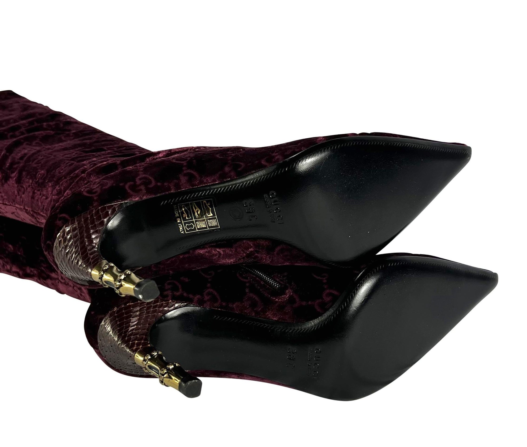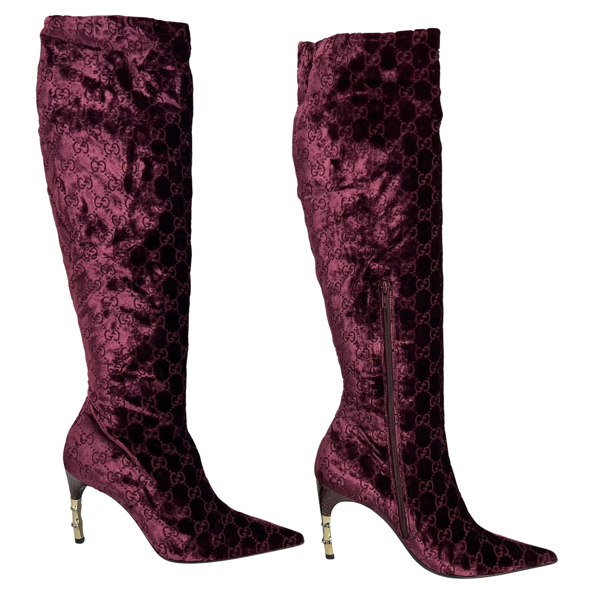 NEW F/W 2004 Gucci by Tom Ford Burgundy Velvet 'GG' Monogram Heel Boots Size 36C