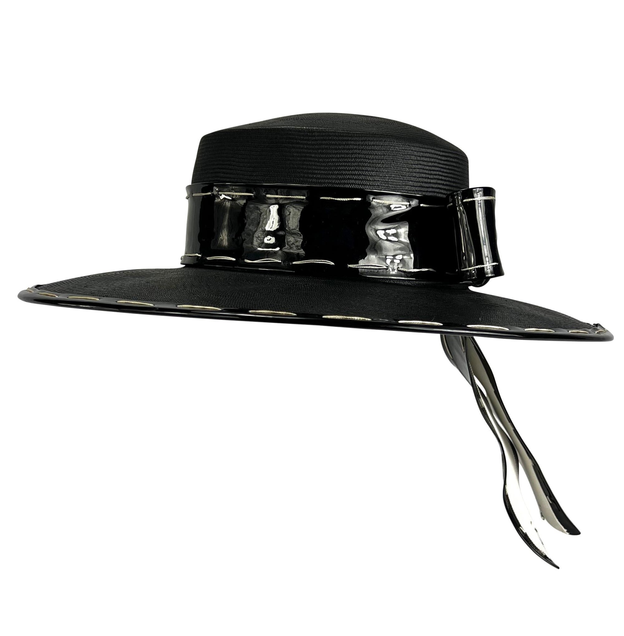 NWT 1980s Yves Saint Laurent Black White Chupalla Patent Bow Hat