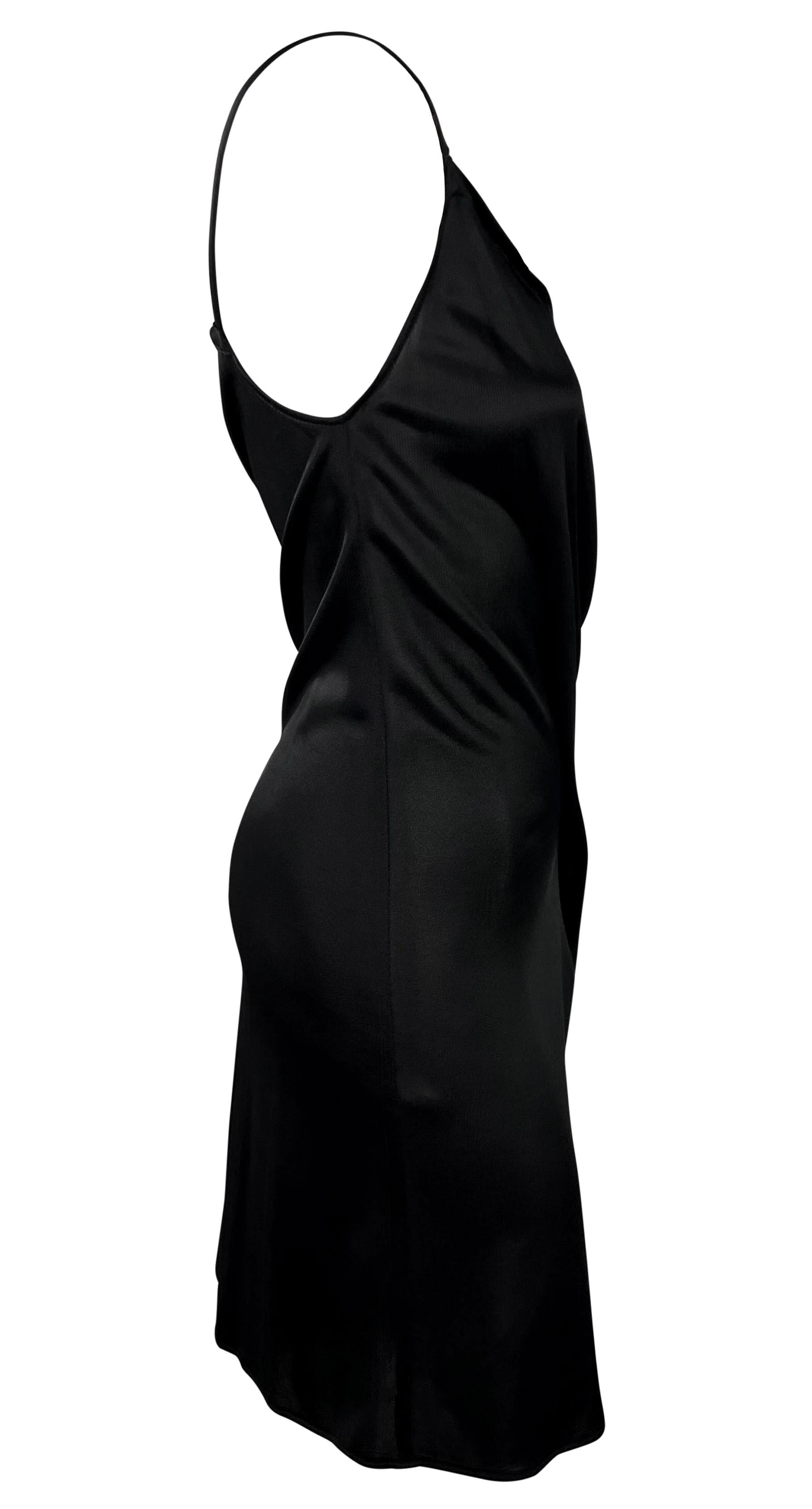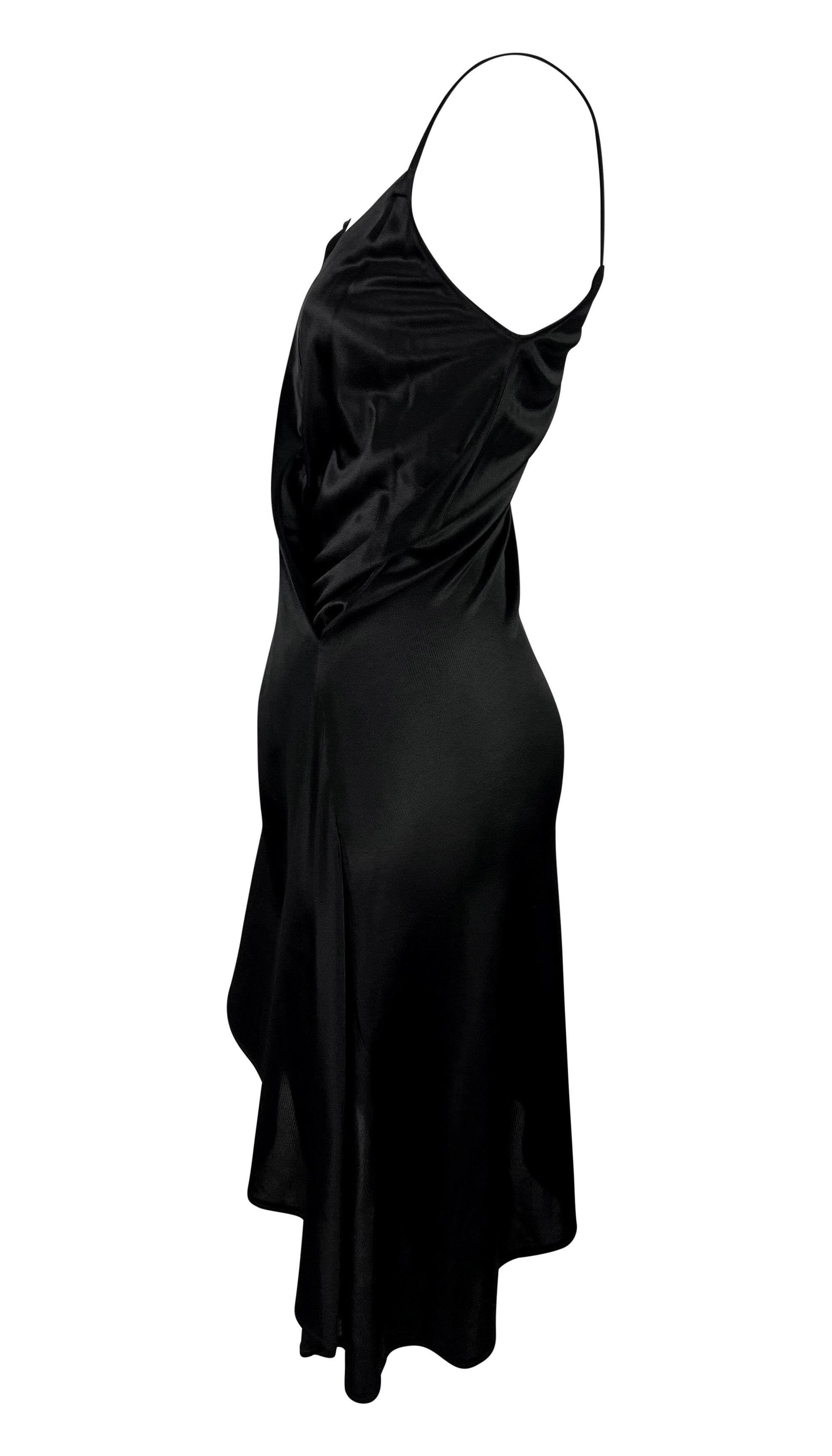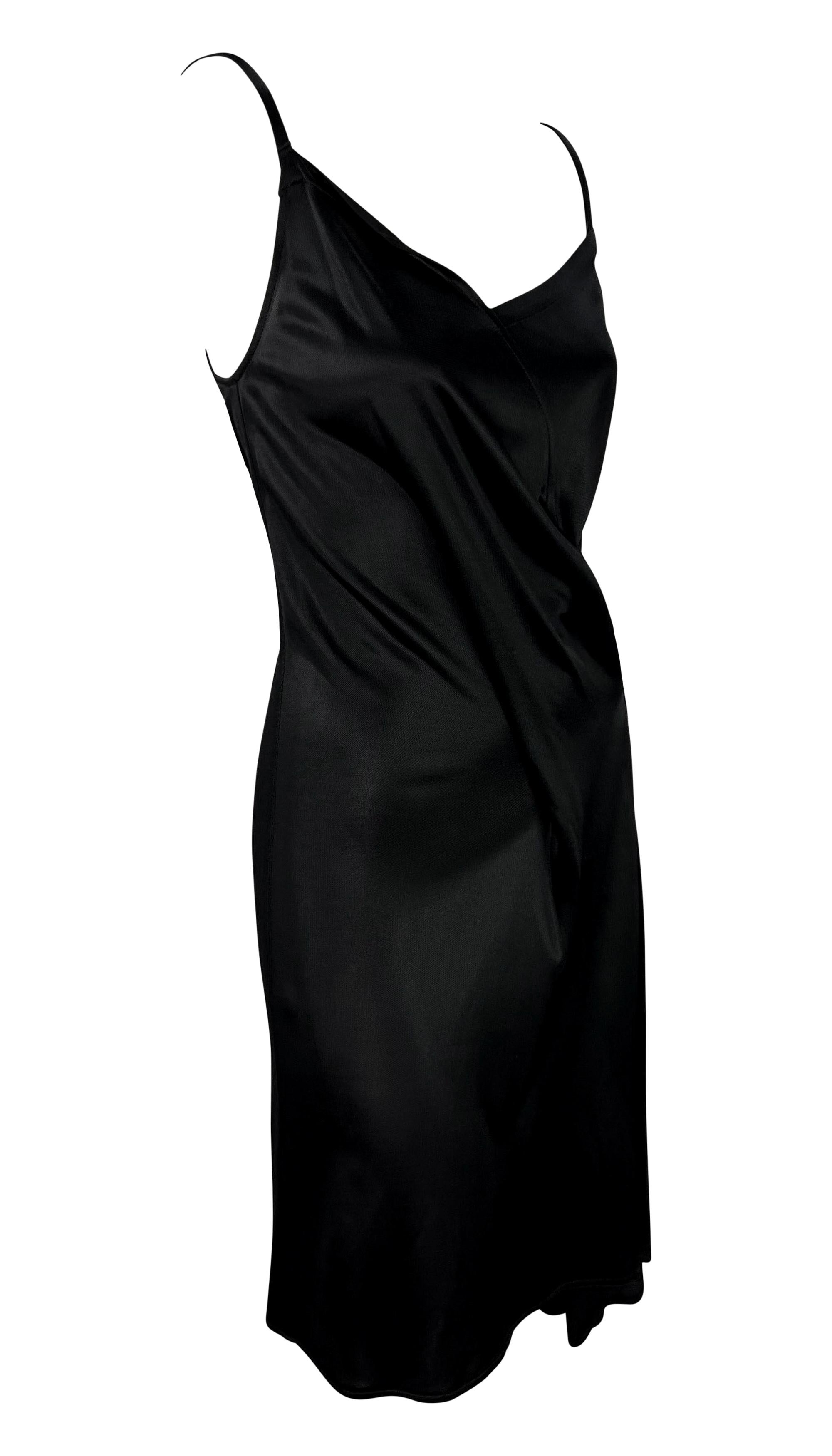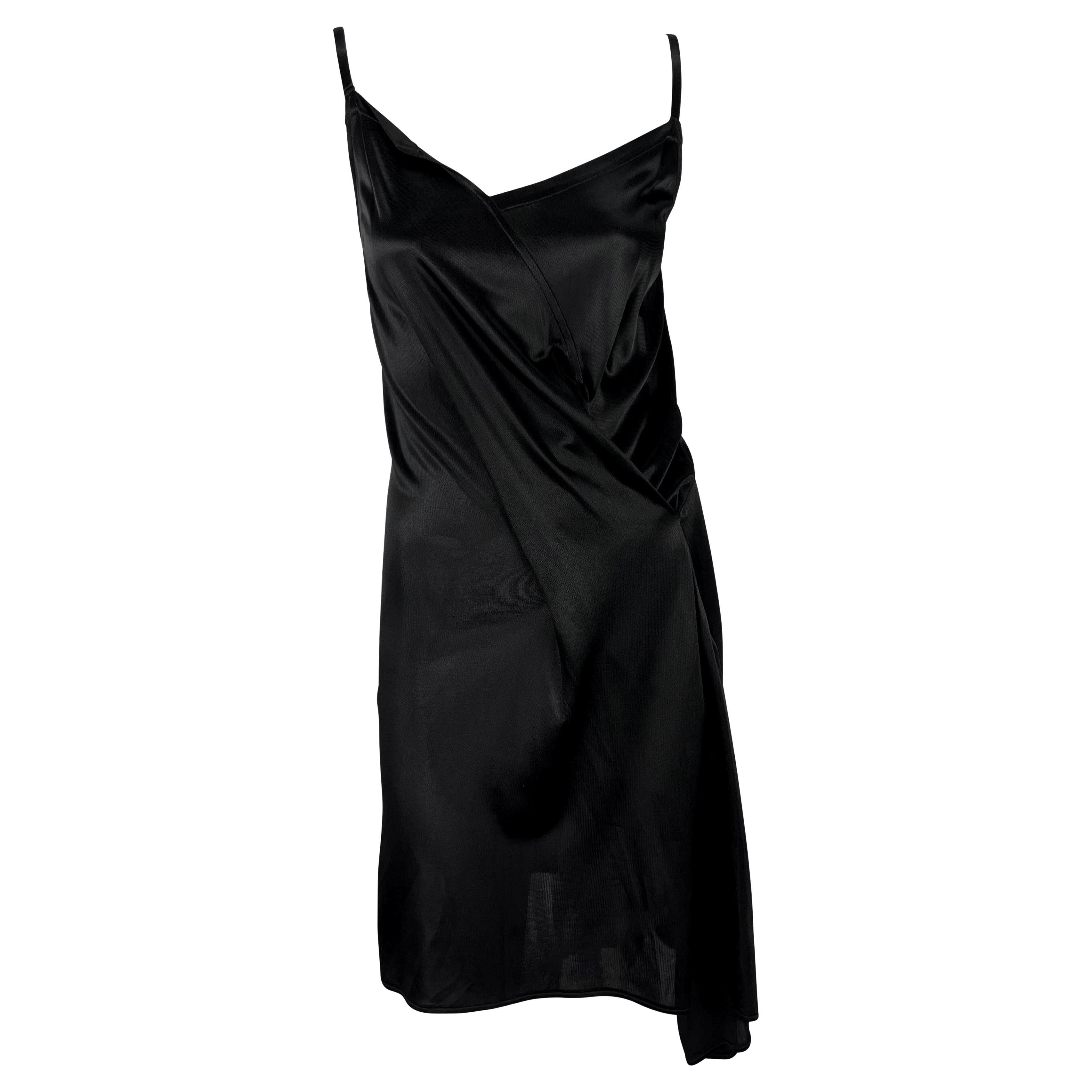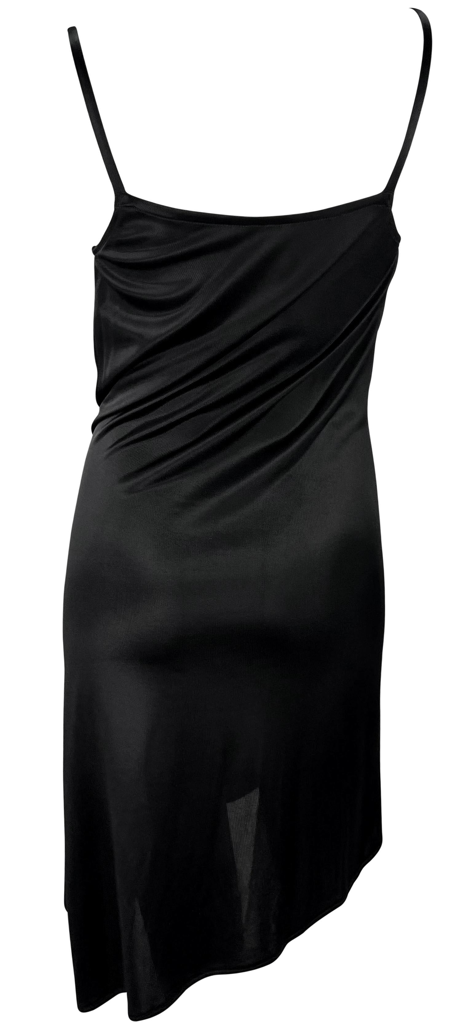 Designed by Ann Demeulemeester in the 1990s, this asymmetric wrap-style dress features an angular neckline, light gathering at the waist, and an asymmetric hem. This vintage mini dress is made complete with the original brand tags still attached. A chic little black dress from one of the Antwerp Six designers, this unique dress is a savvy choice for any collection.