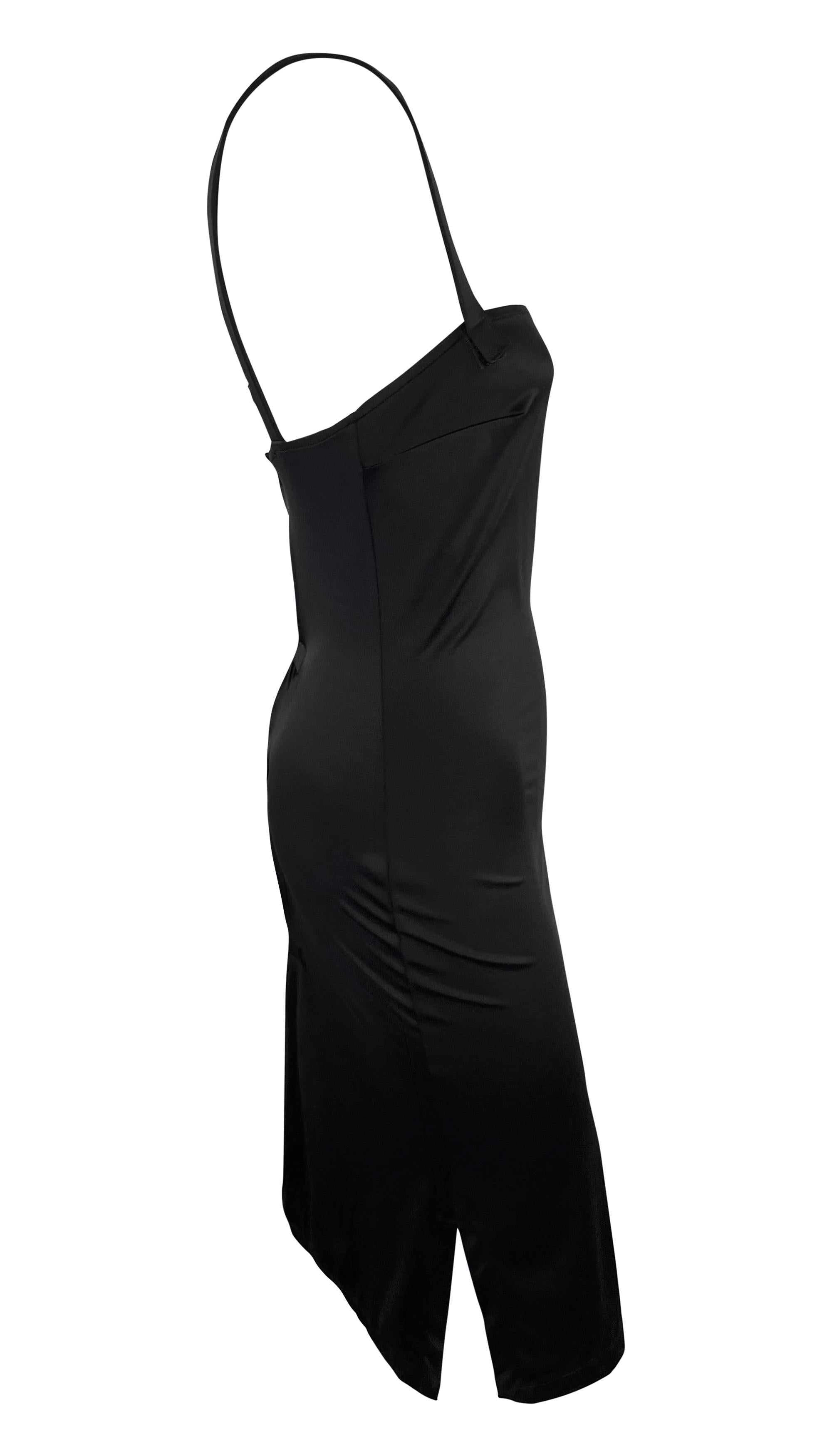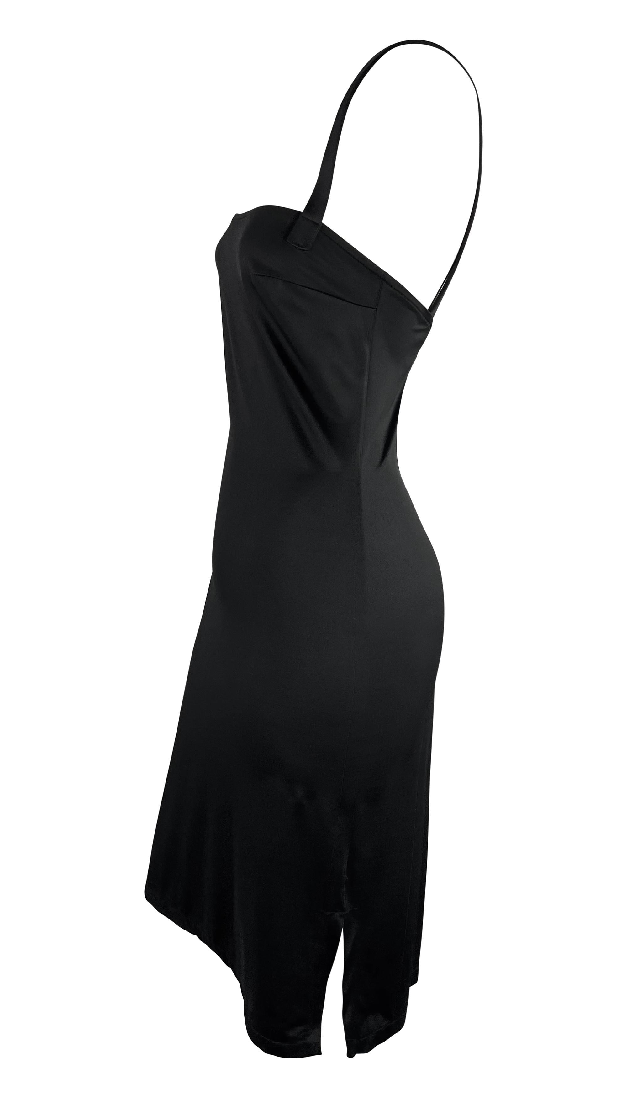 From the late 1990s, this chic black stretch Dolce & Gabbana dress features thin straps, a square neckline, and small slits on either side. This never-worn Dolce & Gabbana beach dress is complete with velcro closures down the back and the original brand tags still attached.