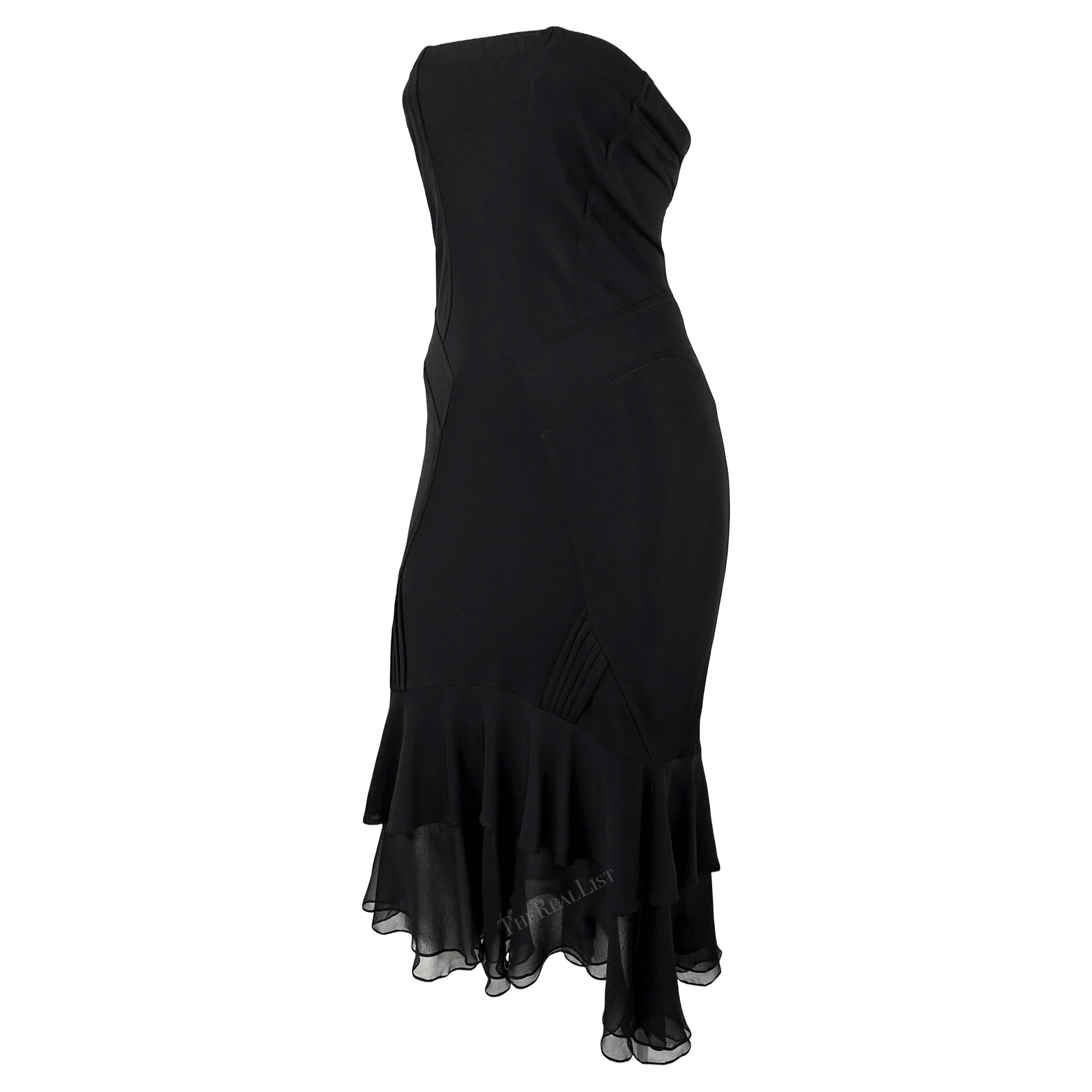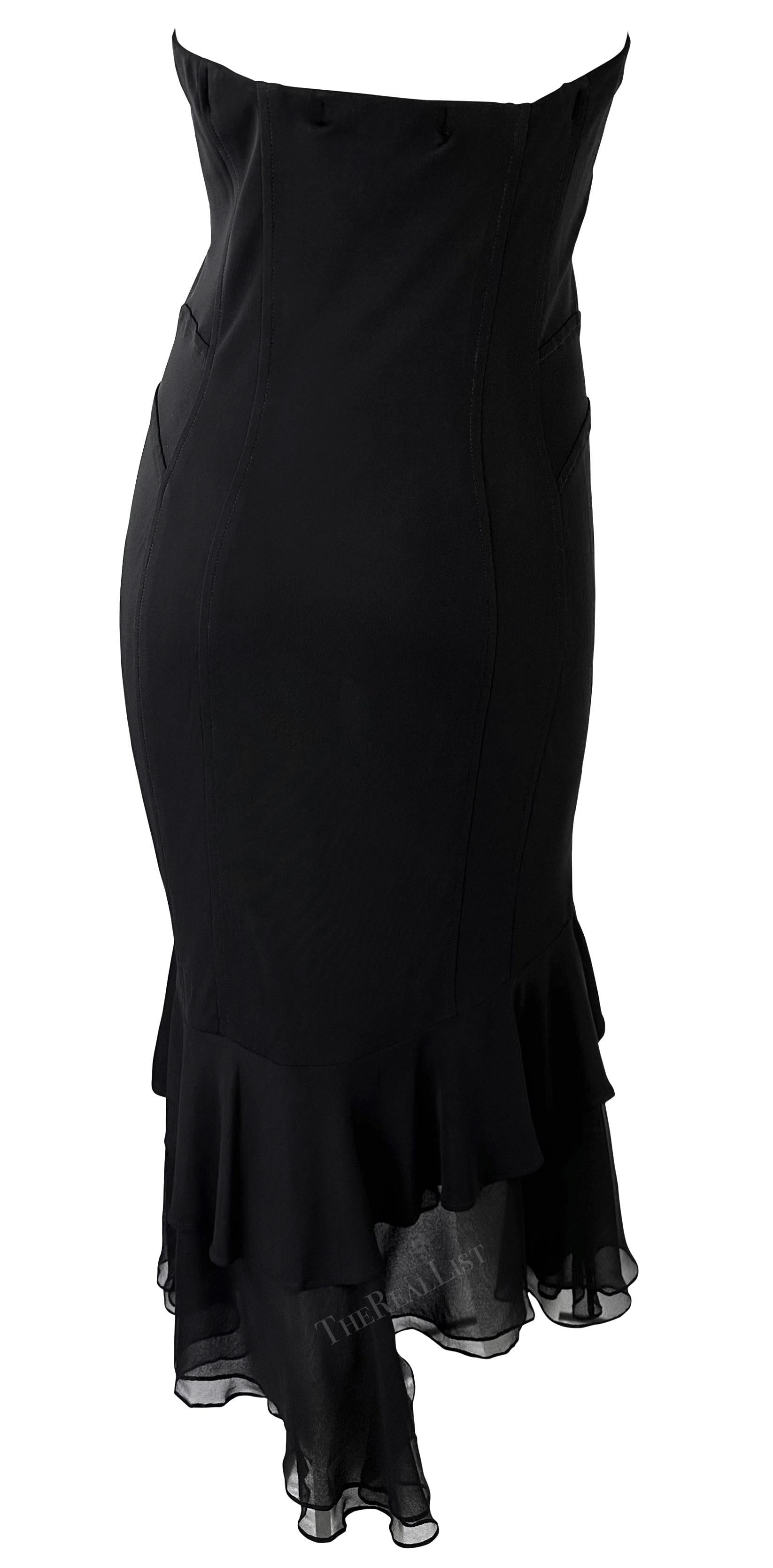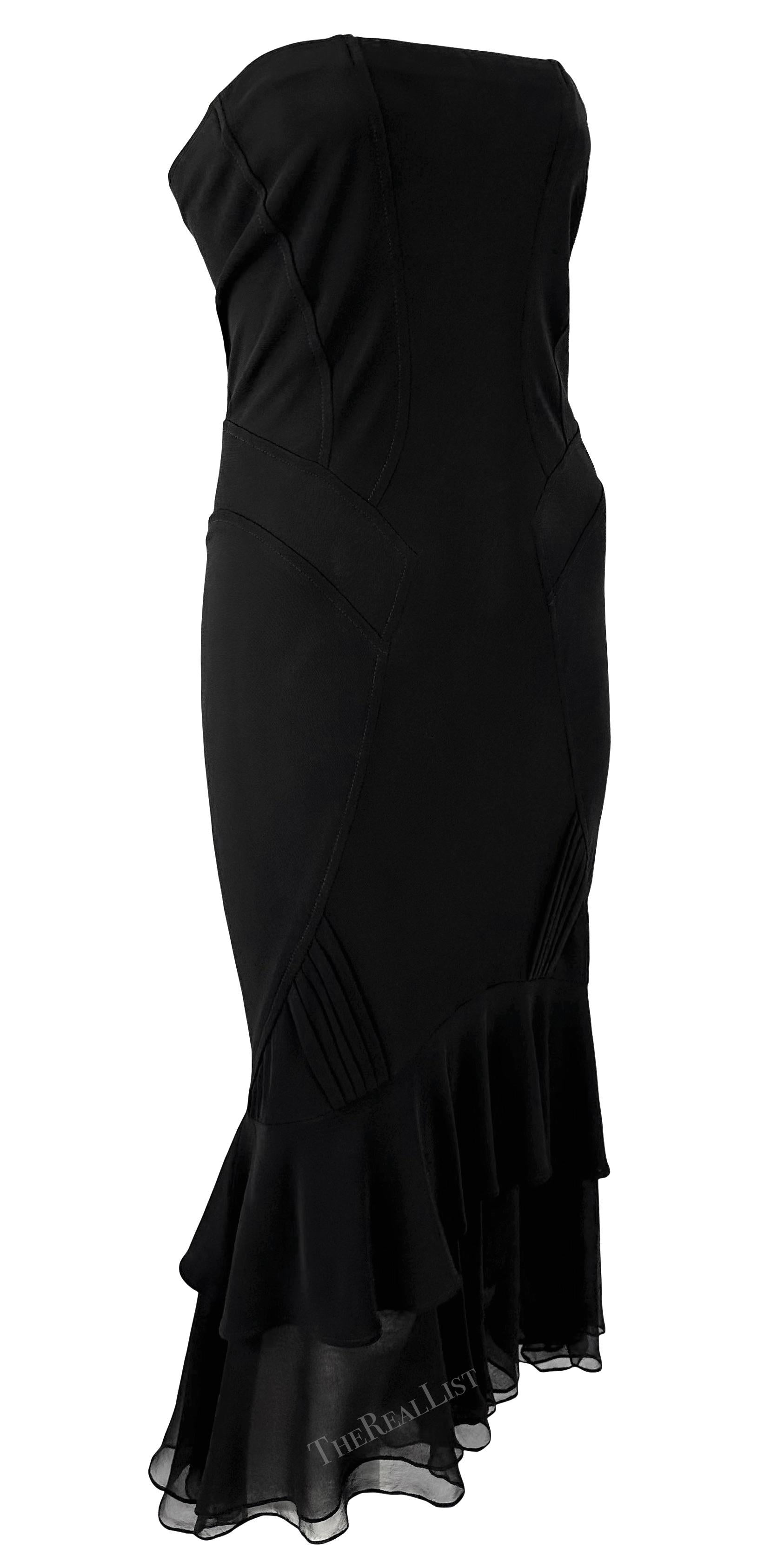 NWT Early 2000s Yigal Azrouel Sheer Black Strapless Ruffle Hem Mini Dress