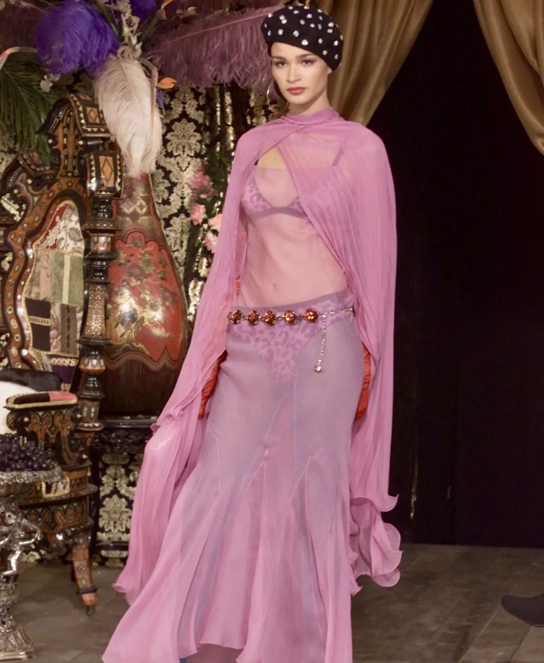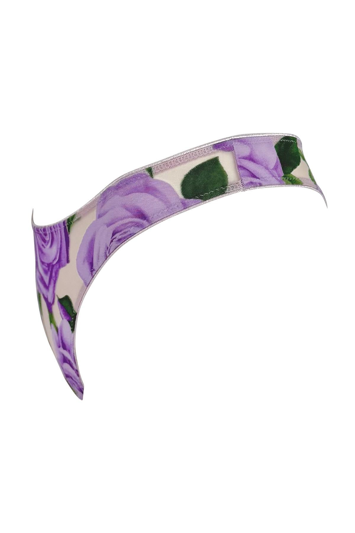 From Dolce & Gabbana’s Fall/Winter 2000 collection, this unworn sheer mesh underwear features a vivid purple rose print over a soft beige base. Cut in a classic low-rise silhouette, similar sheer lingerie pieces debuted on the season's runway runway.