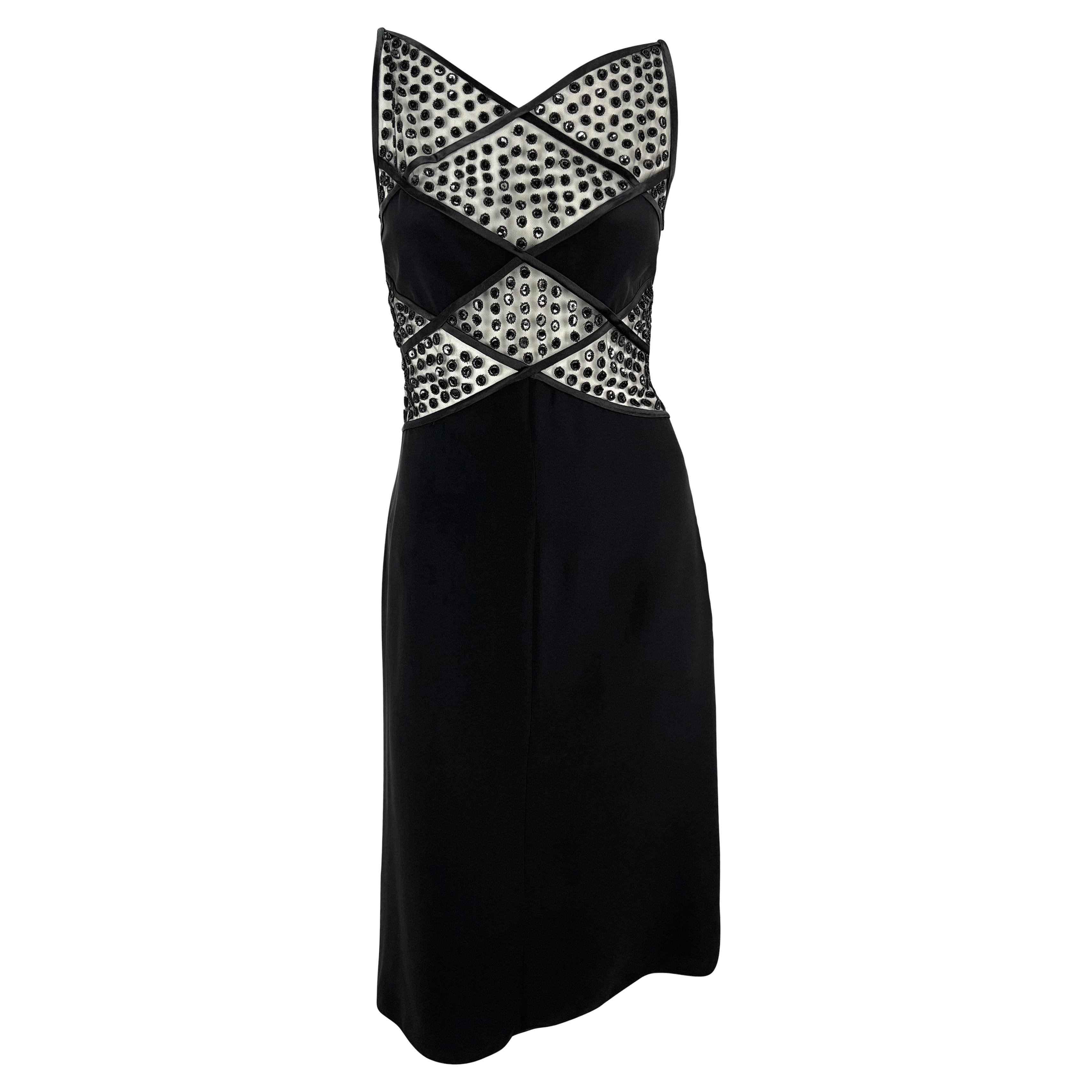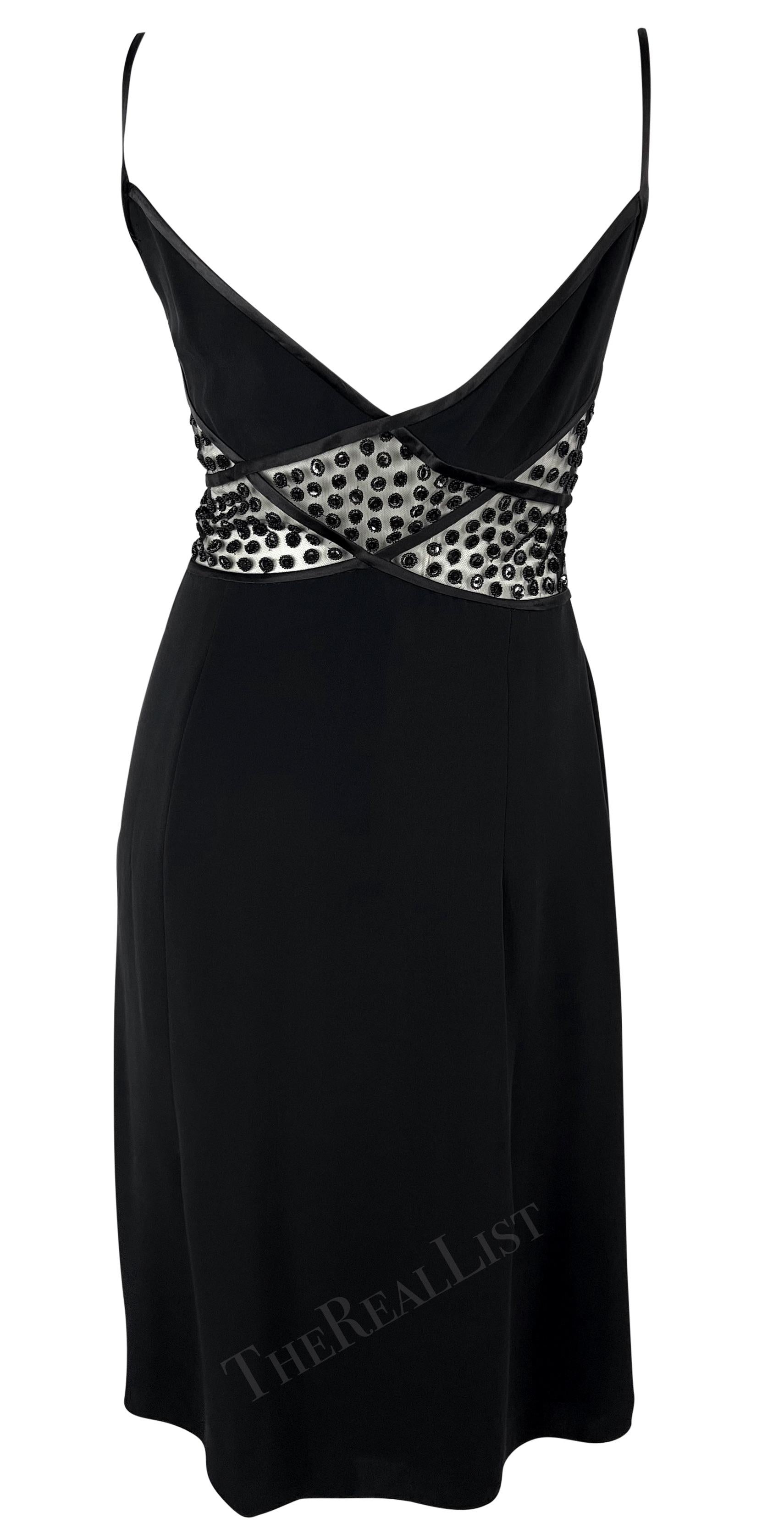 NWT F/W 2001 Valentino Garavani Sheer Black Beaded Silk Ribbon Cutout Mini Dress