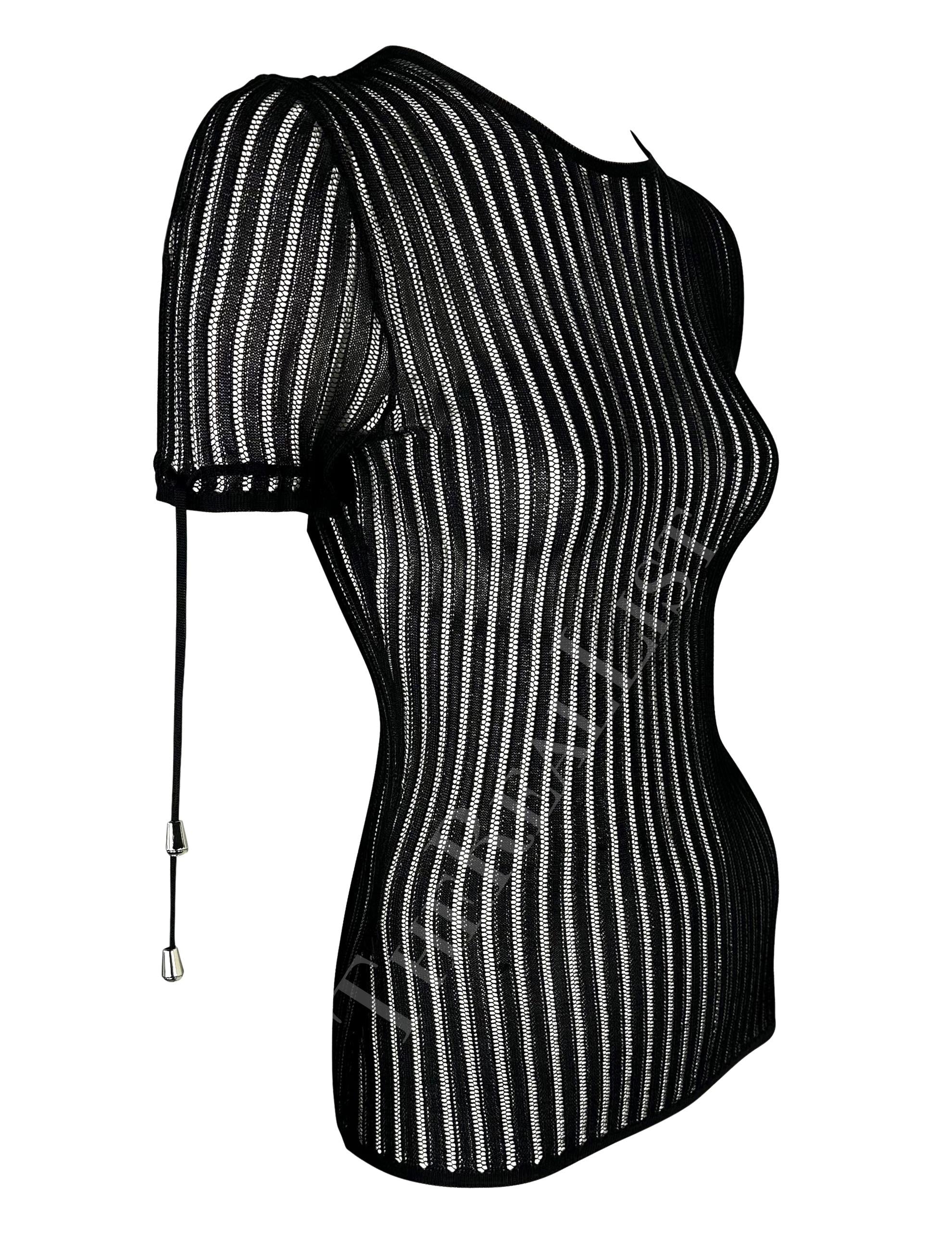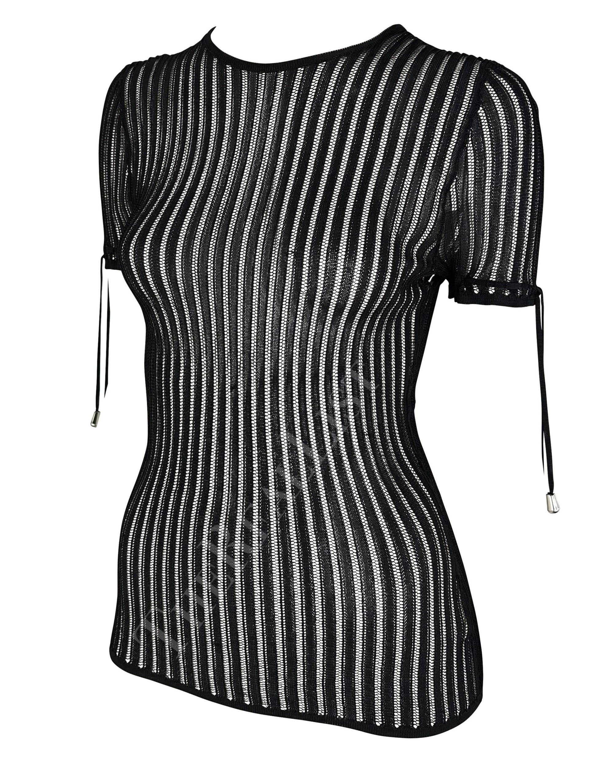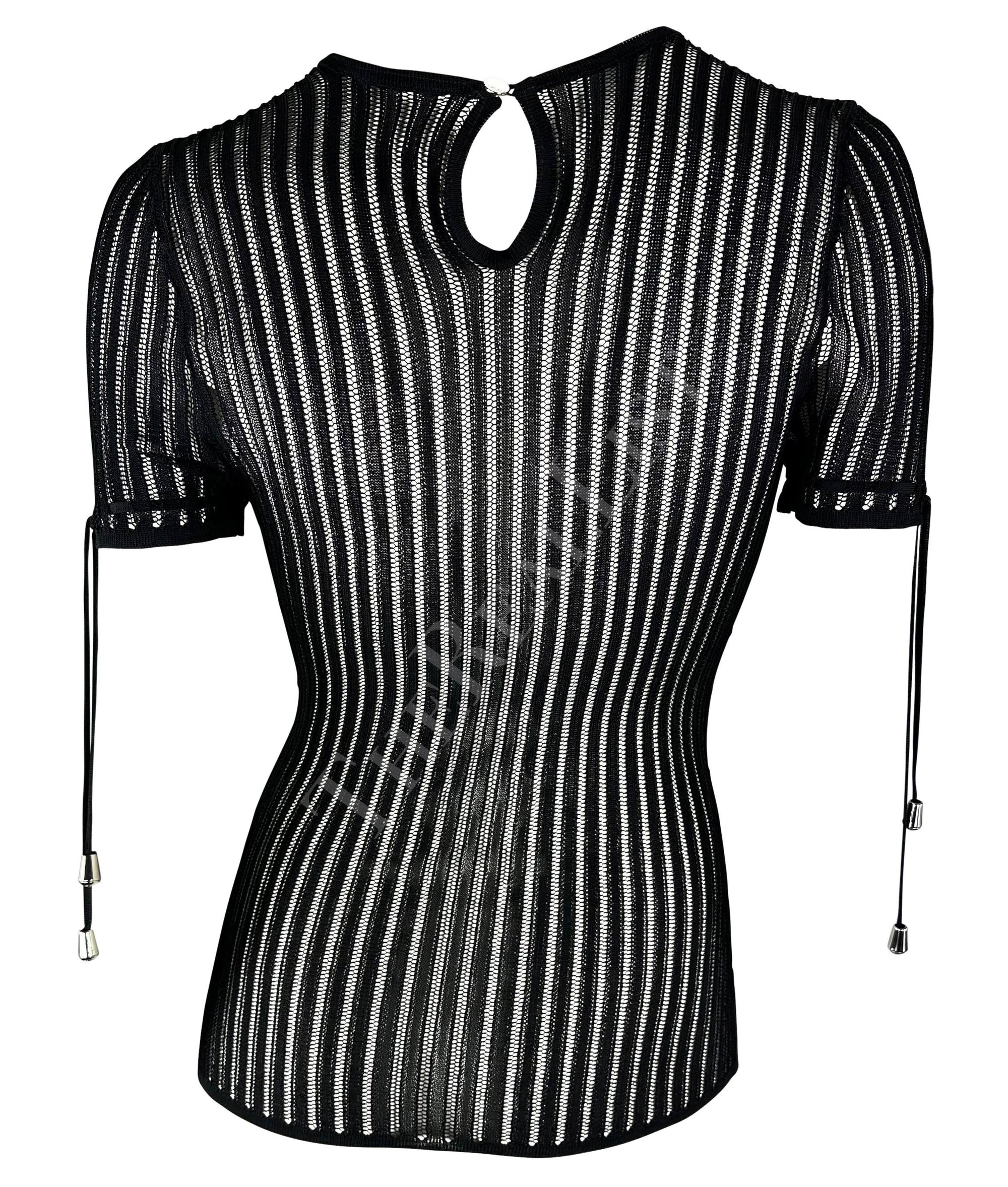 Presenting a fabulous black knit Versace short-sleeve top, designed by Donatella Versace. From the mid-2000s, this sheer knit top features lace details at the cuffs and a button closure at the neck. Never worn before, this top is made complete with the original brand tags from nearly 20 years ago!