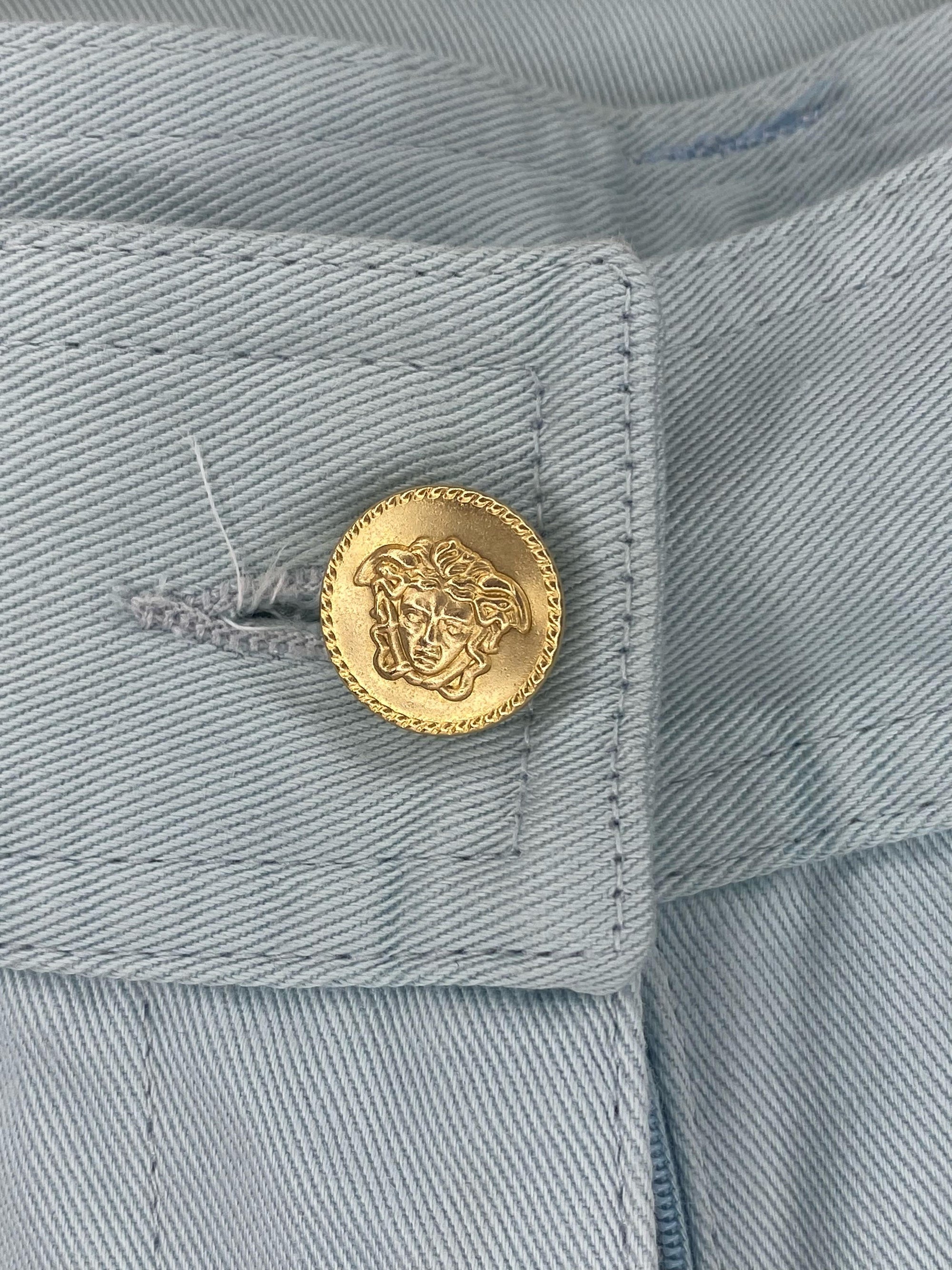 NWT S/S 1992 Gianni Versace Couture Baby Blue Cotton Medusa Jeans