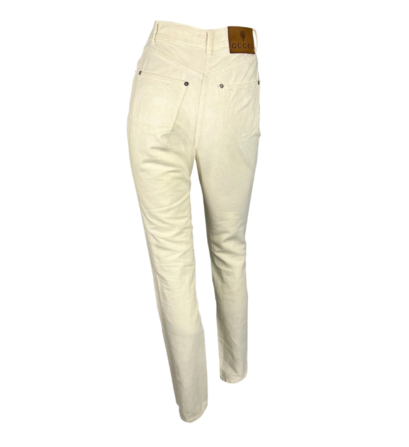 NWT S/S 1995 Gucci by Tom Ford GG Cream Cotton Linen Jeans