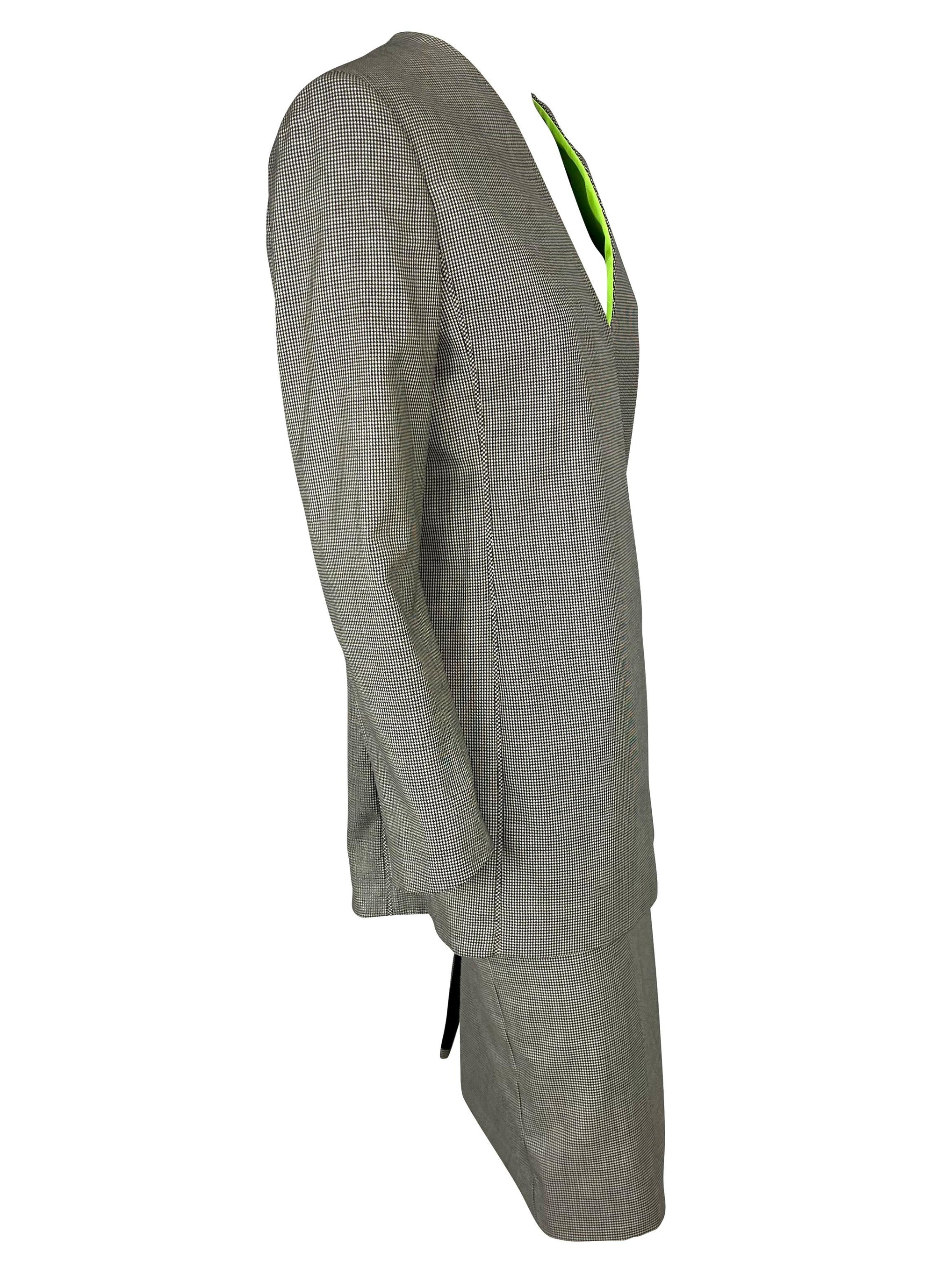 NWT S/S 1998 Gianni Versace by Donatella Houndstooth Tunic Suit Green Lining