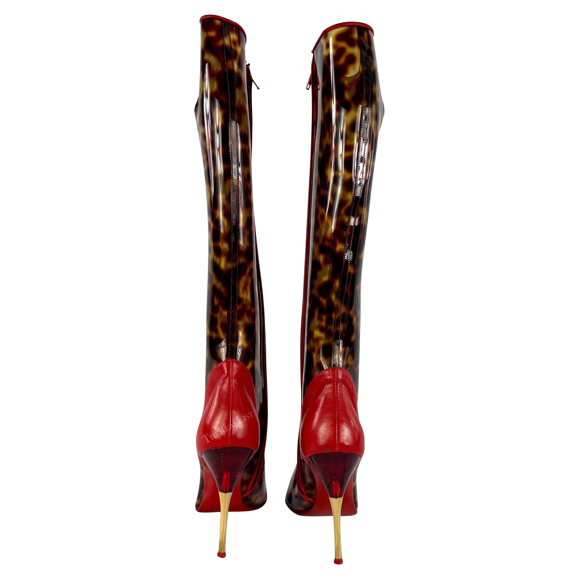 NWT S/S 2003 Roberto Cavalli Cheetah Print PVC Transparent Boots Size 39
