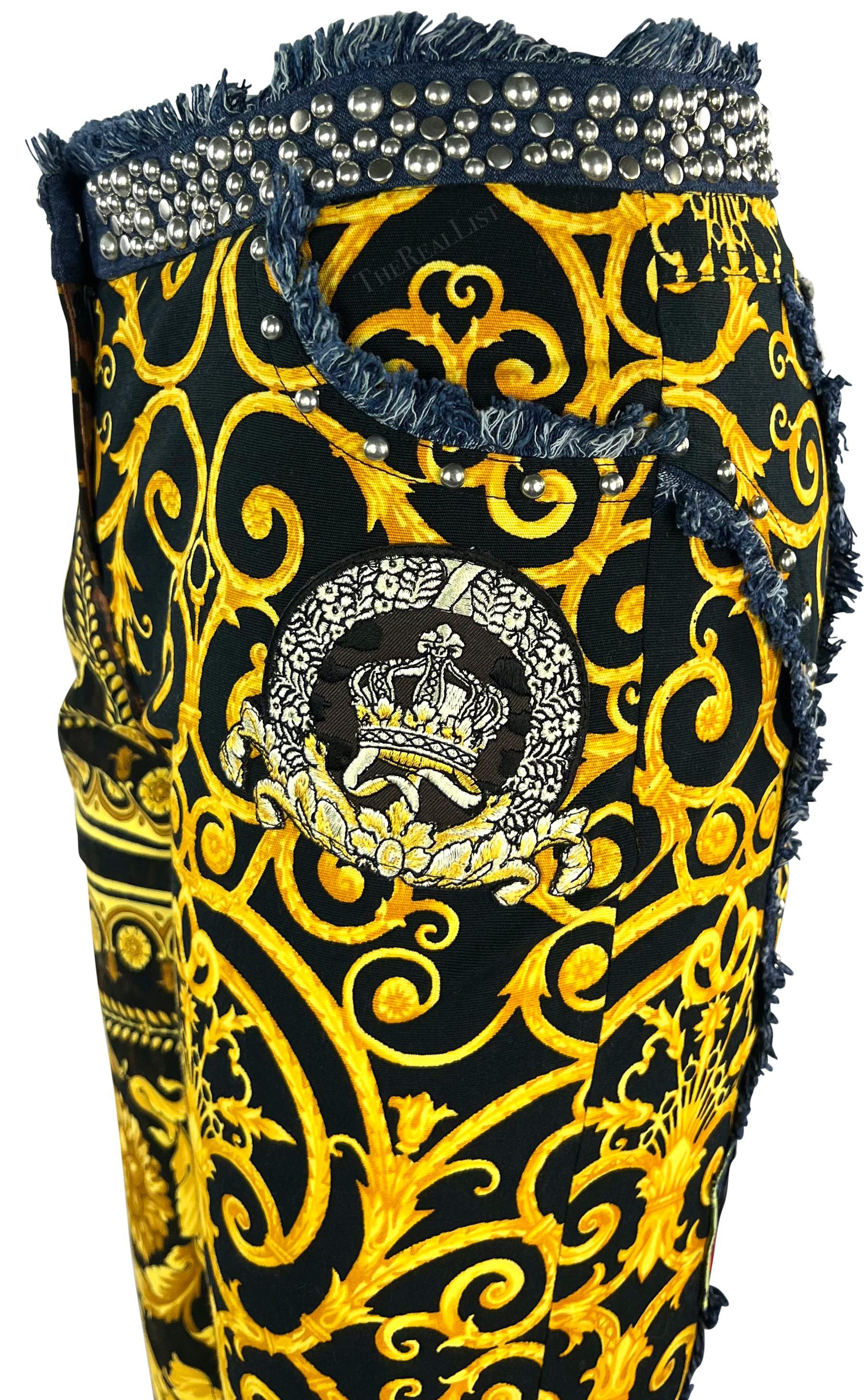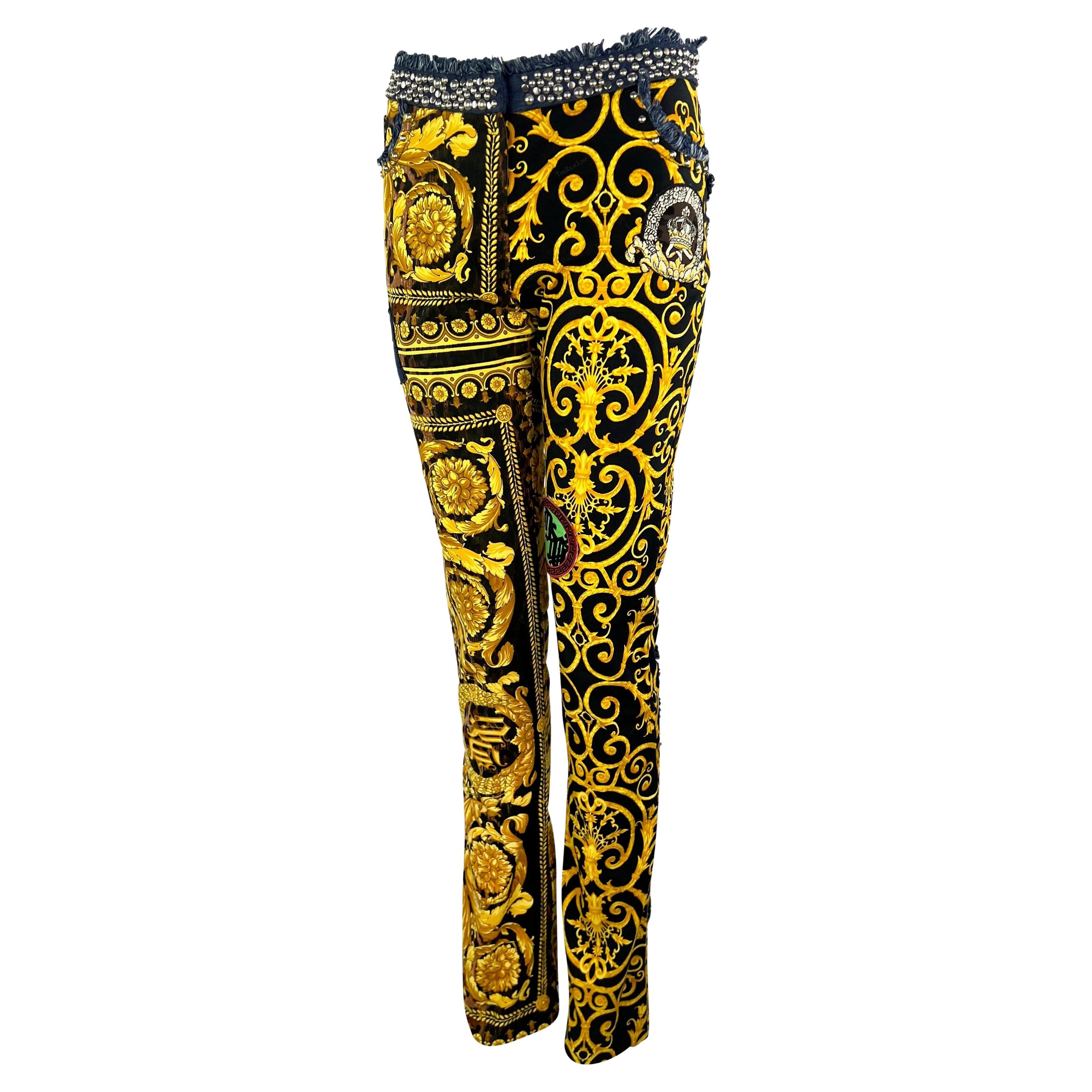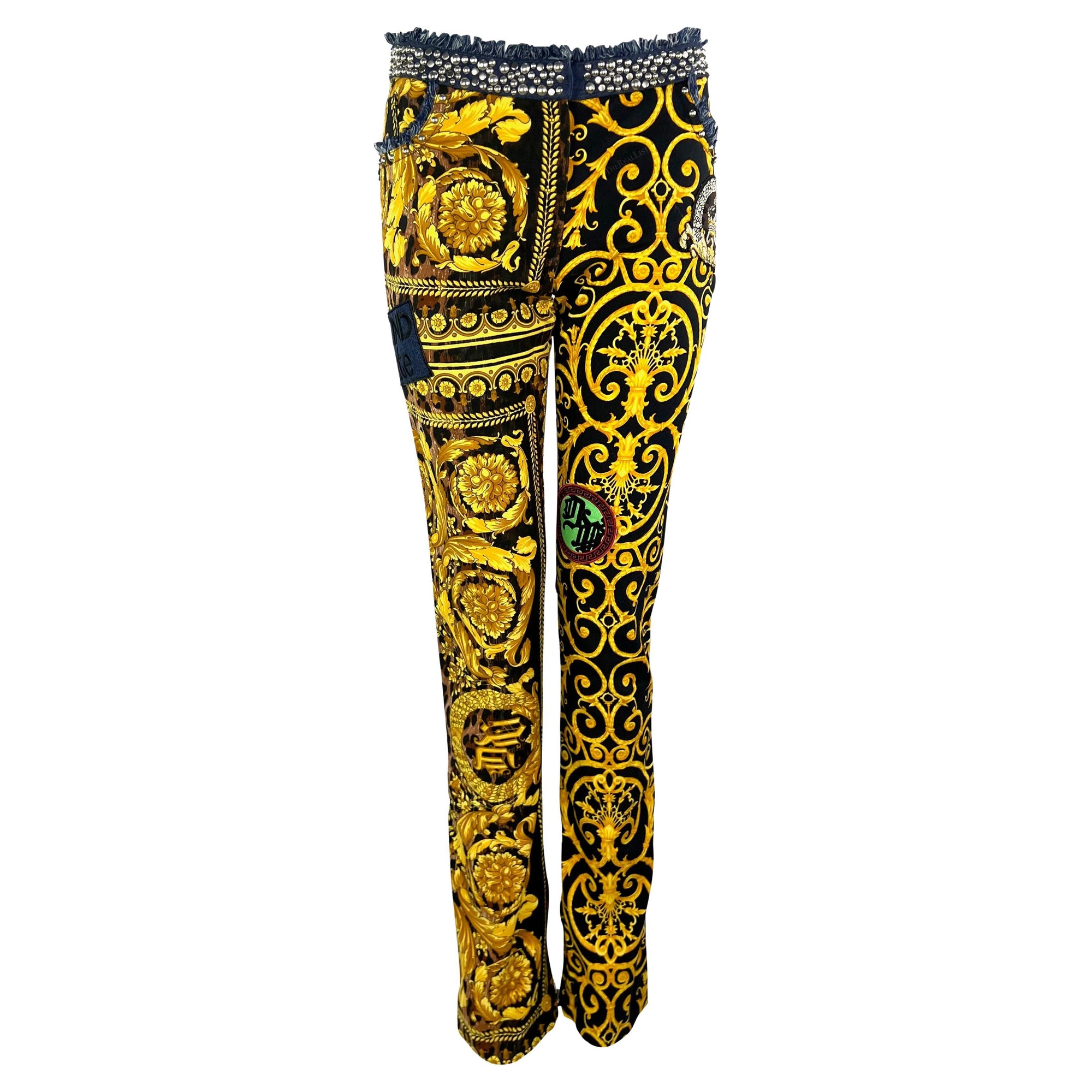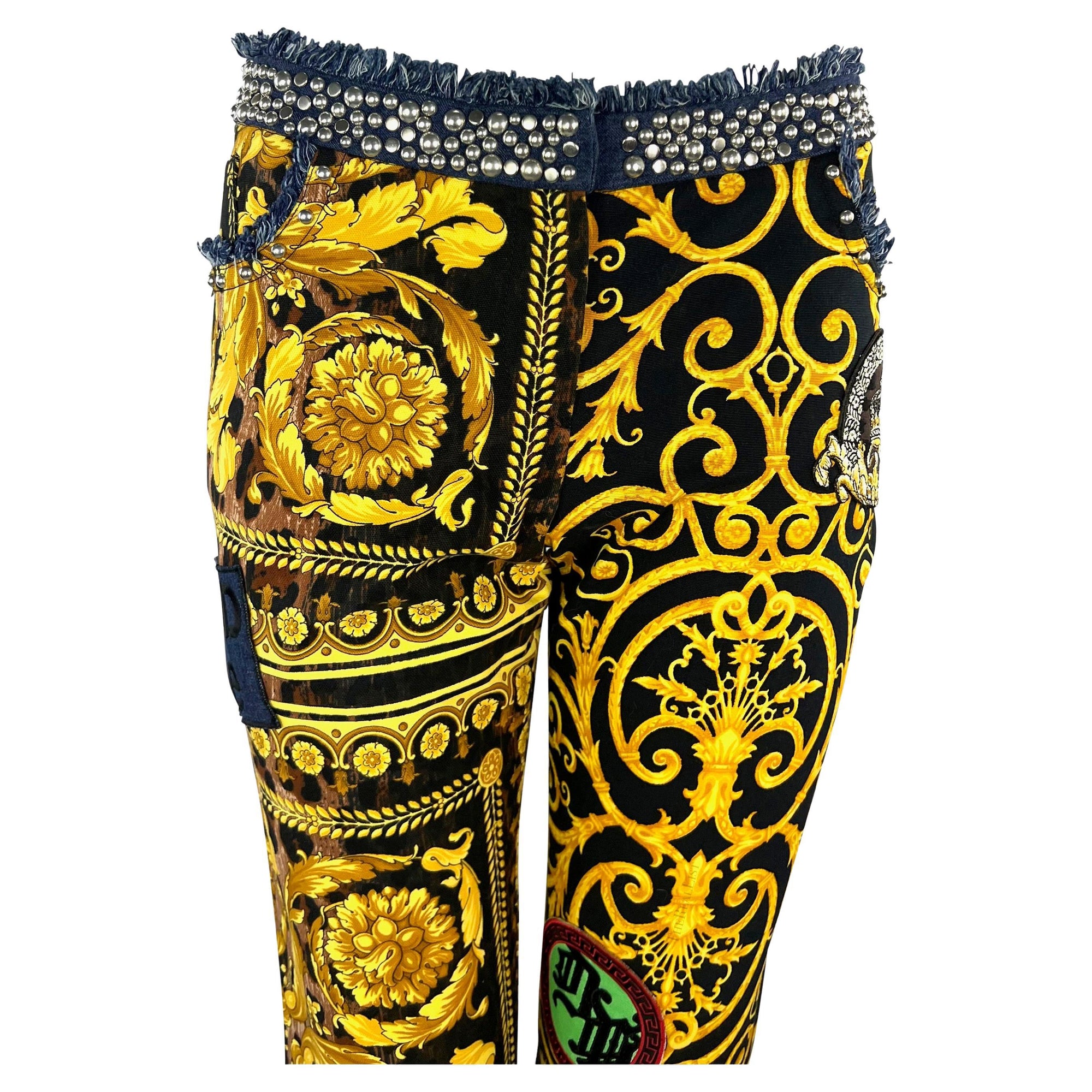 NWT S/S 2005 Versace by Donatella Baroque Print 'Chaos Couture' Studded Jeans