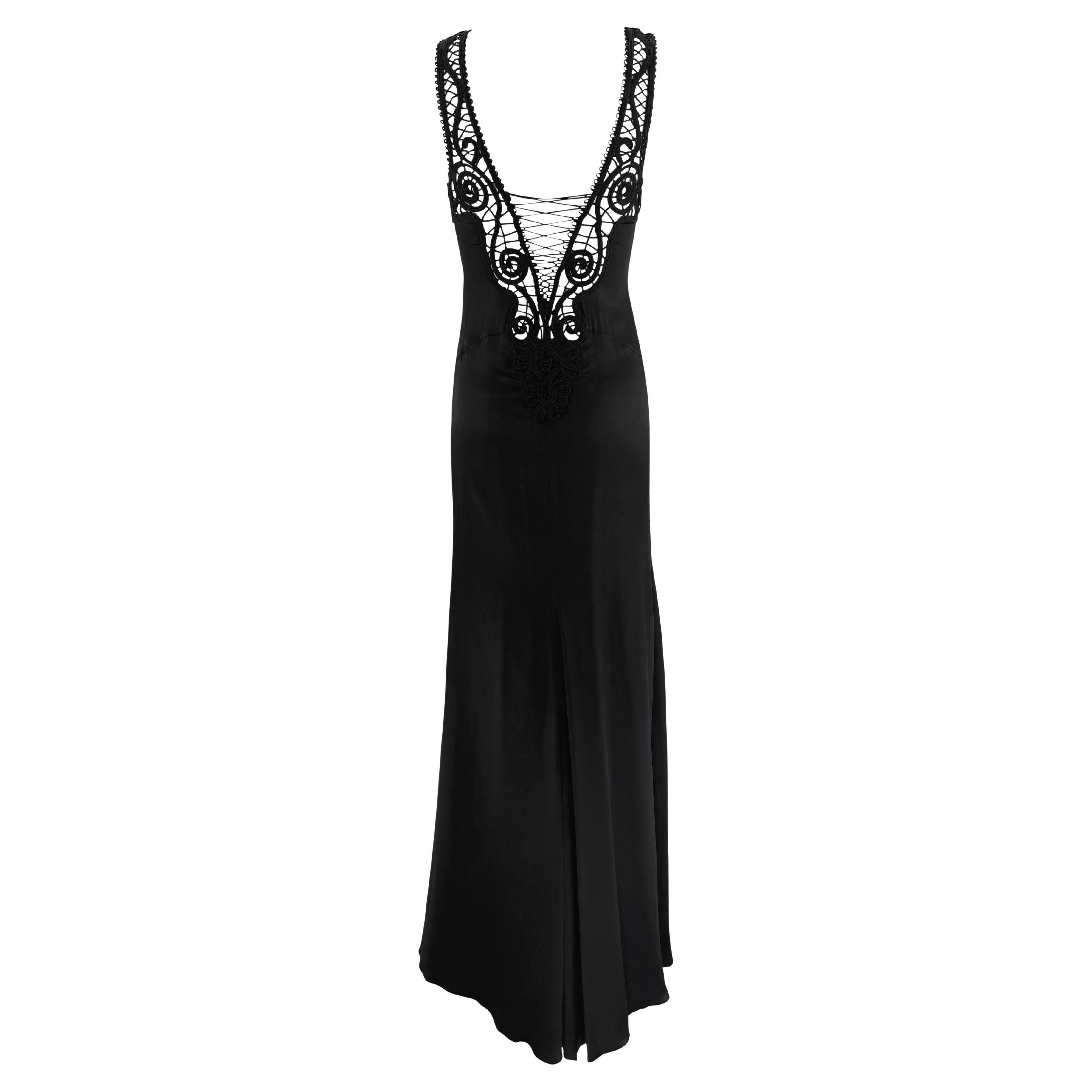 NWT S/S 2006 Versace by Donatella Sheer Plunging Backless Silk Satin Slip Gown