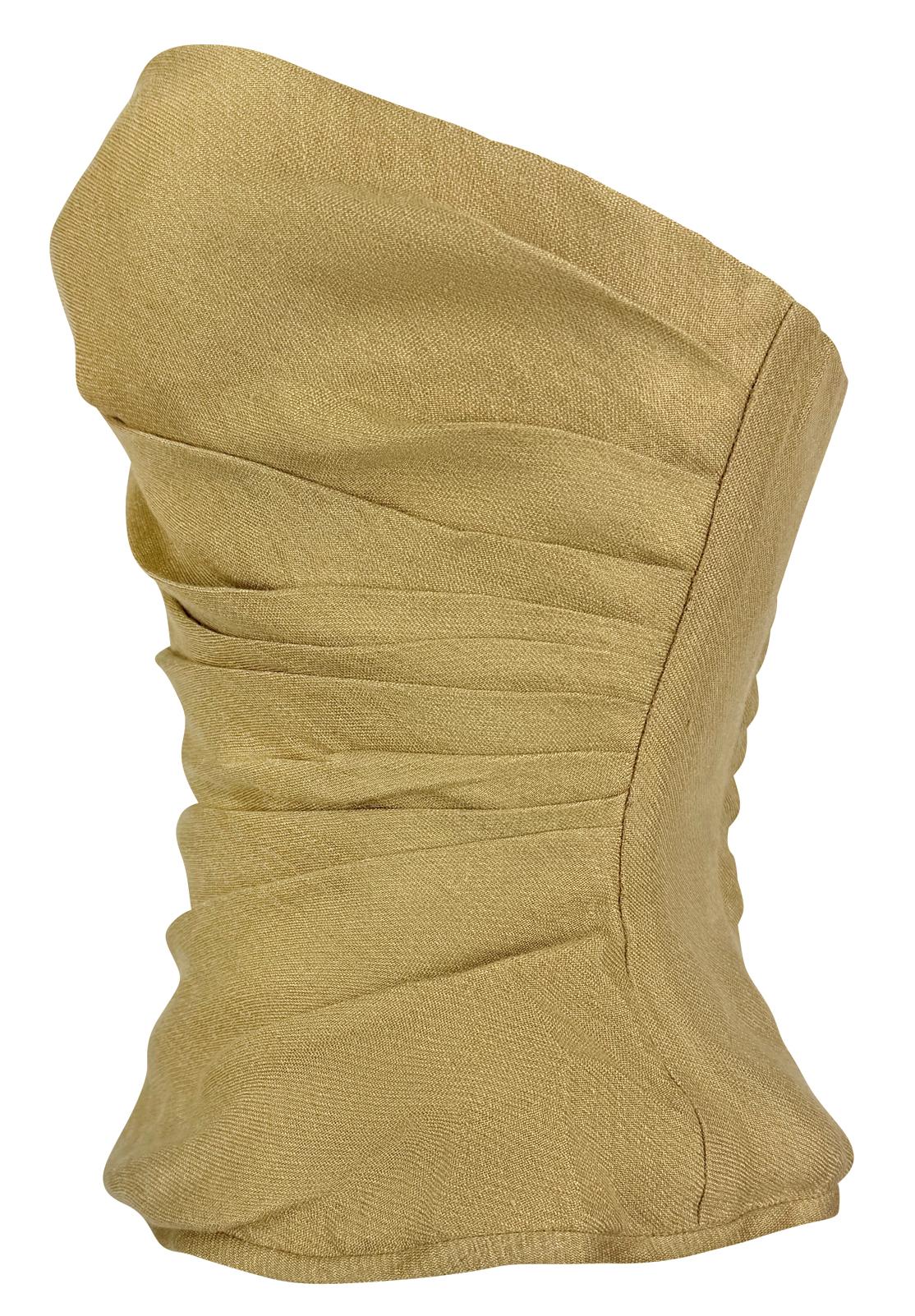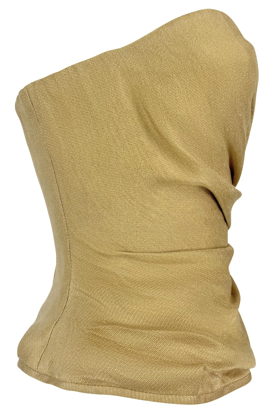 Resort 1992 Donna Karan Runway Gold Linen Lurex Metallic Strapless Bustier Top