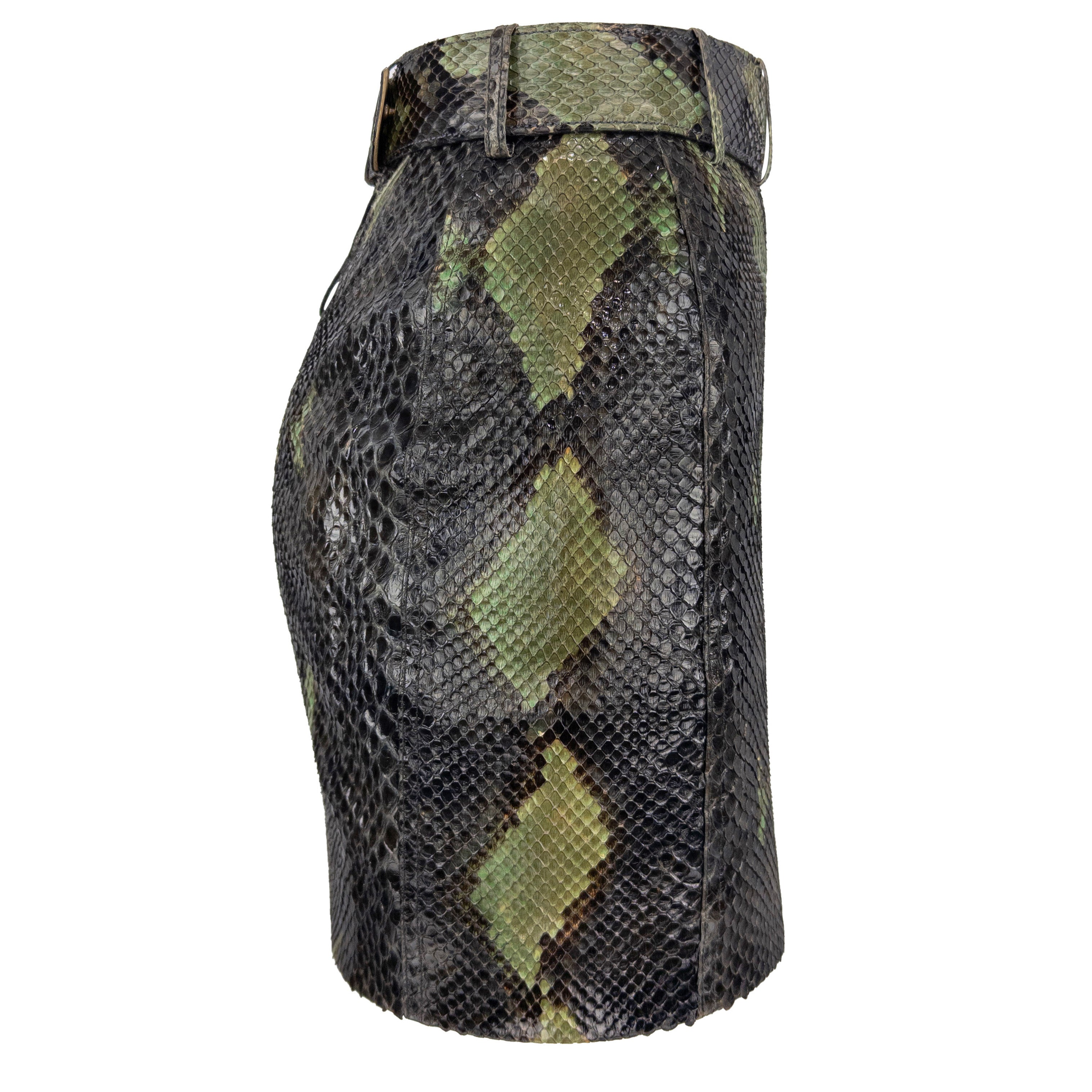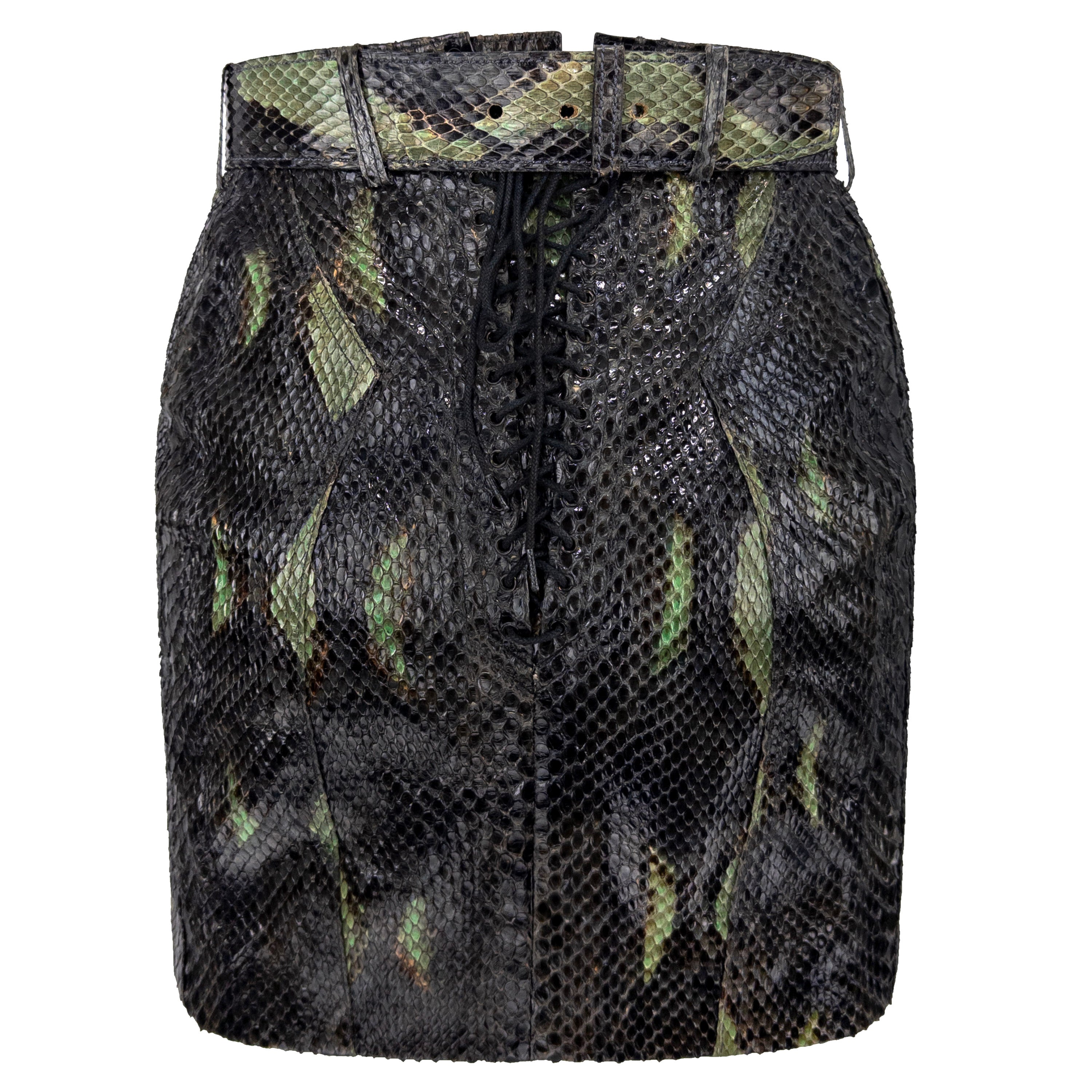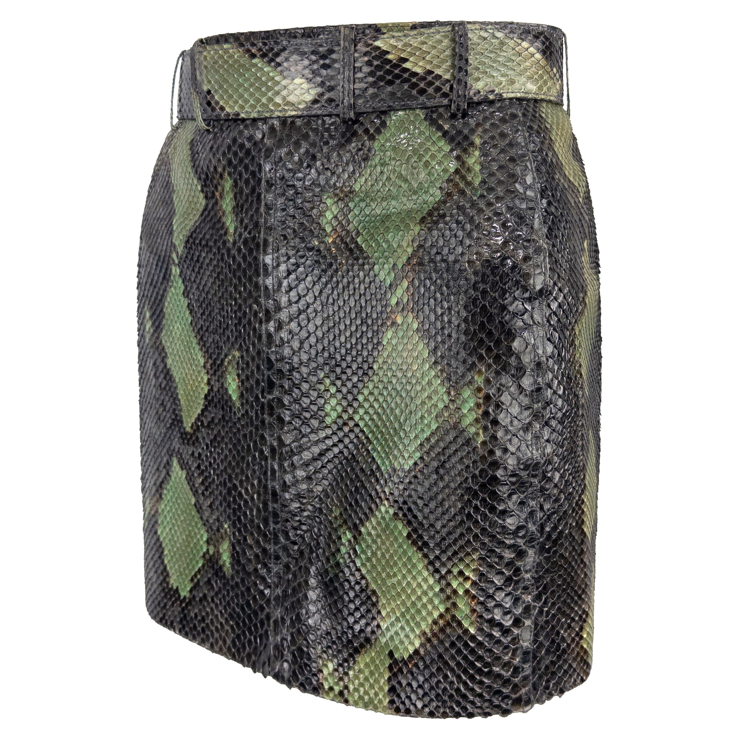 S/S 1991 Azzedine Alaïa Runway Genuine Python Leather Green Belted Mini Skirt