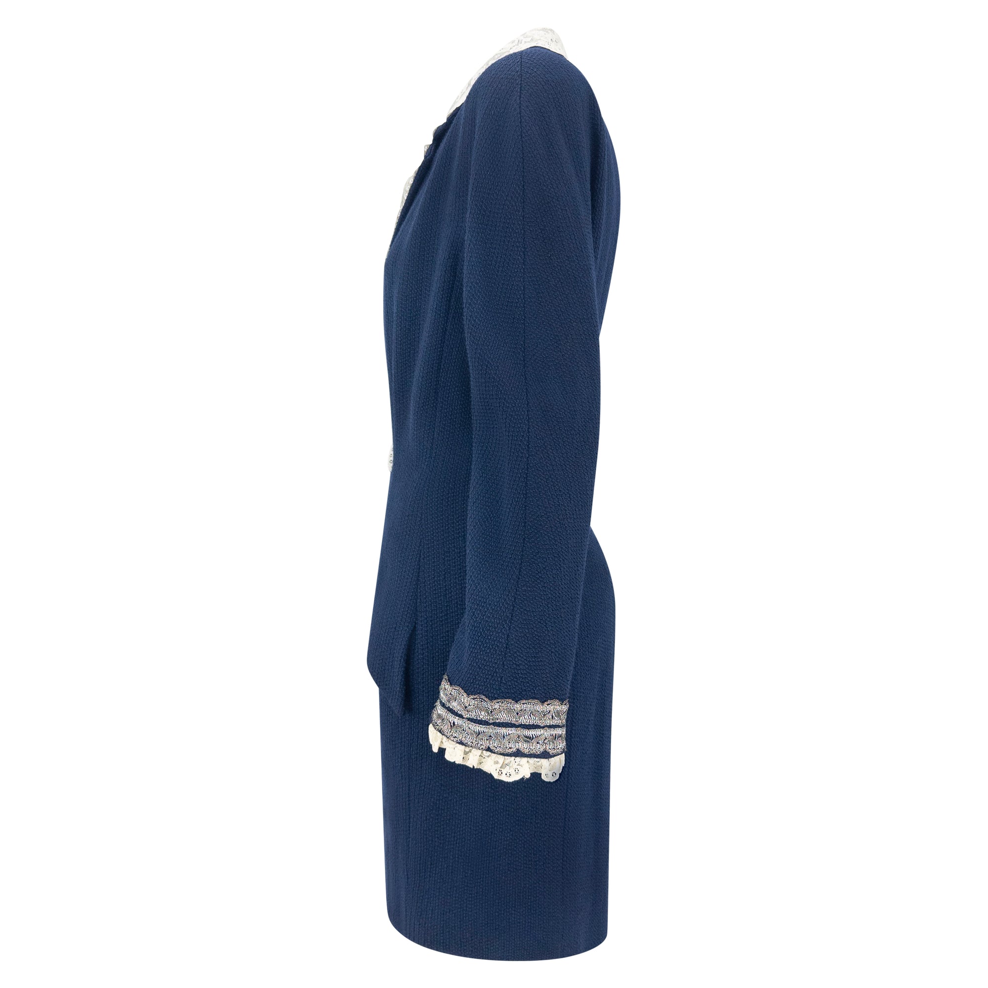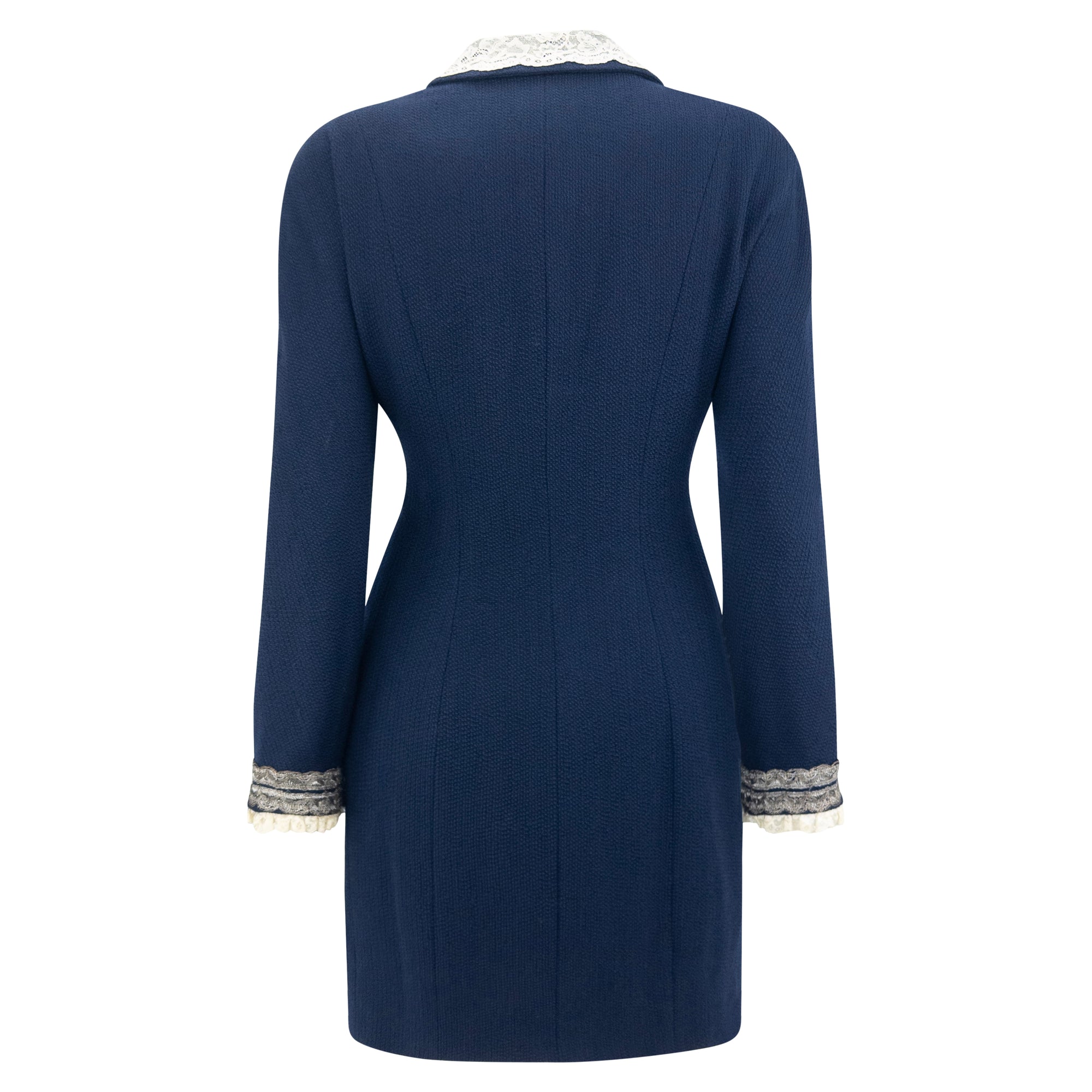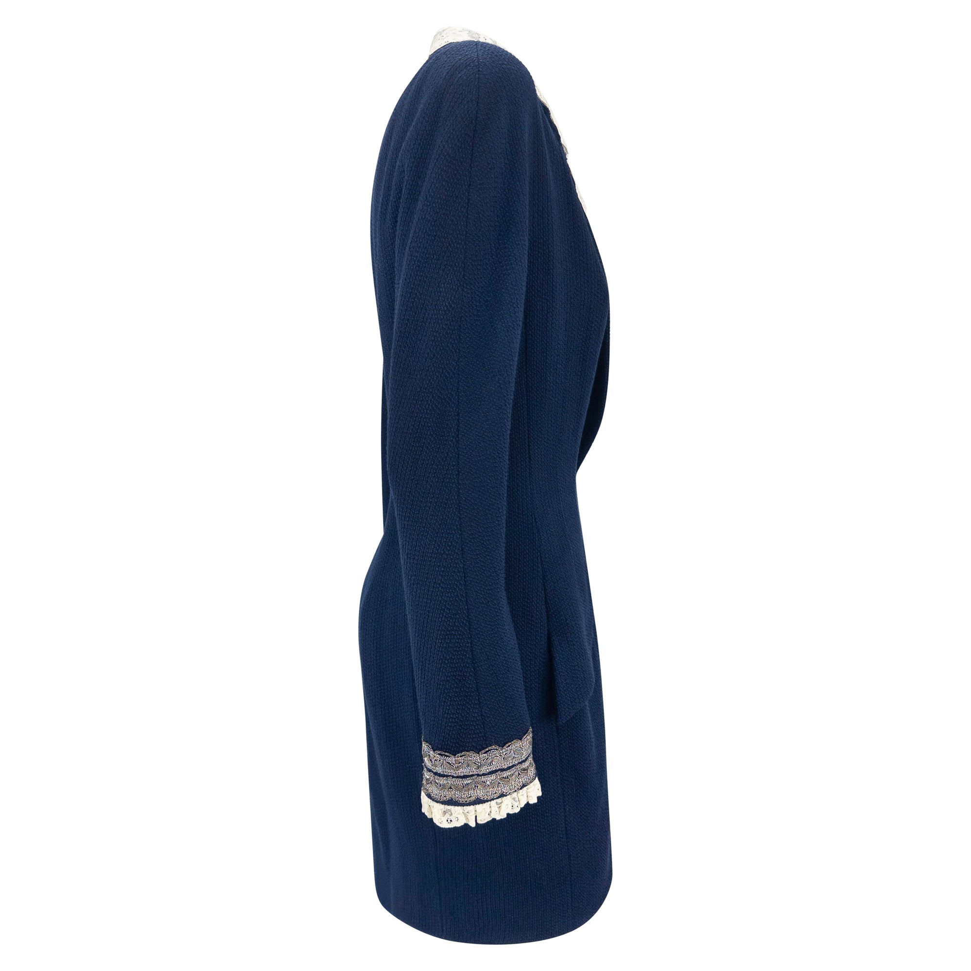 S/S 1998 Christian Dior by John Galliano Runway Lace Trim Navy Tweed Long Jacket